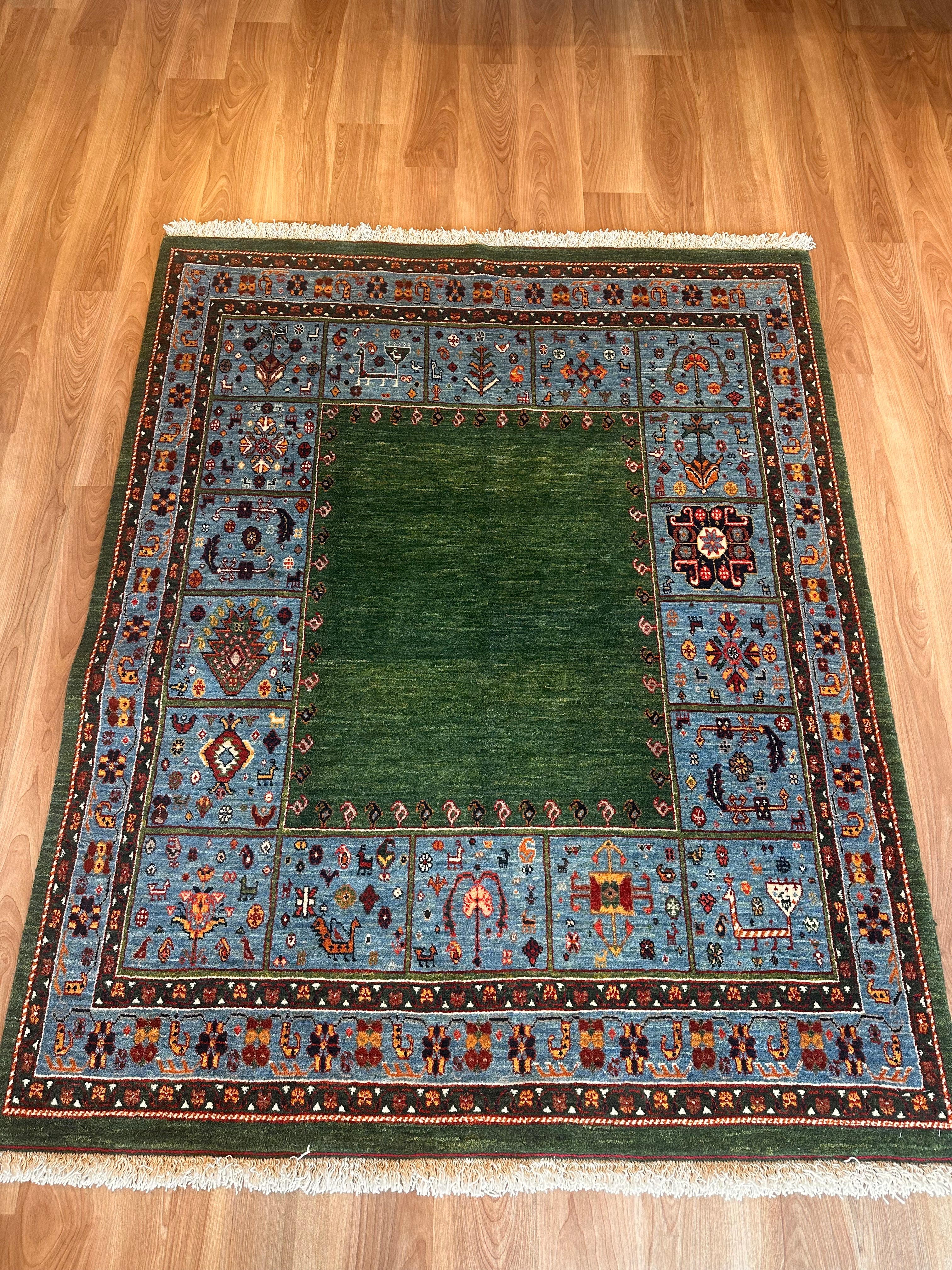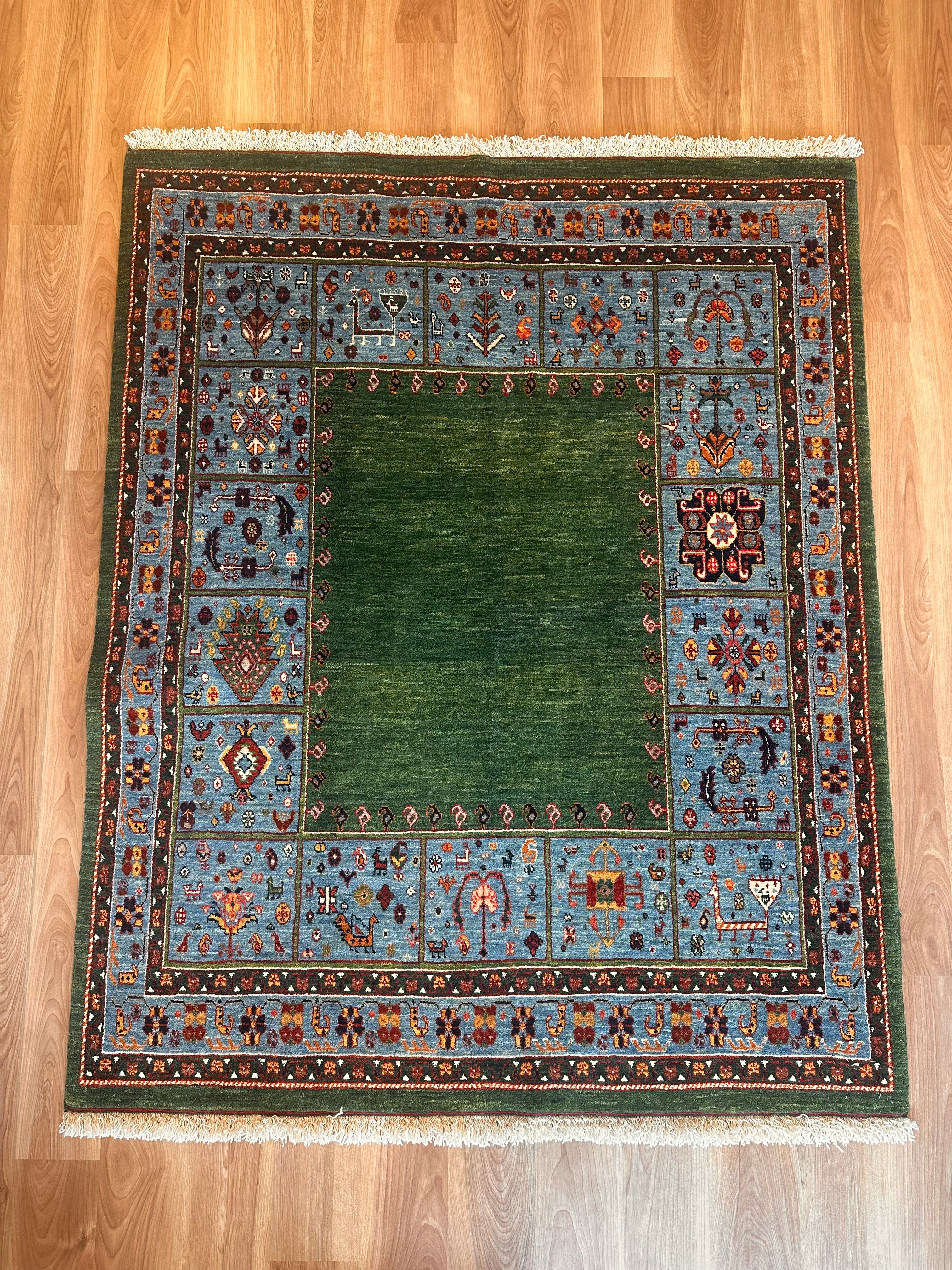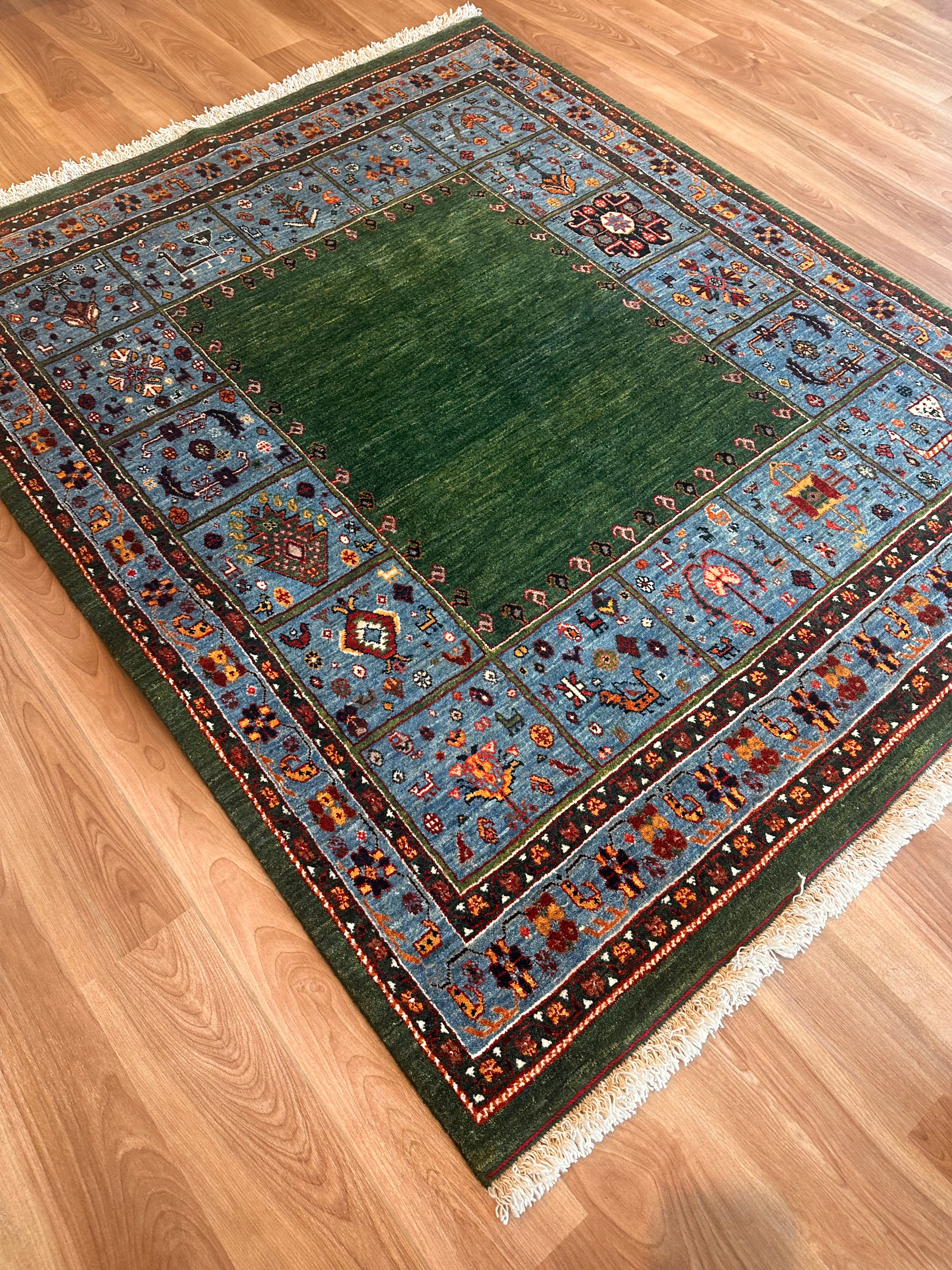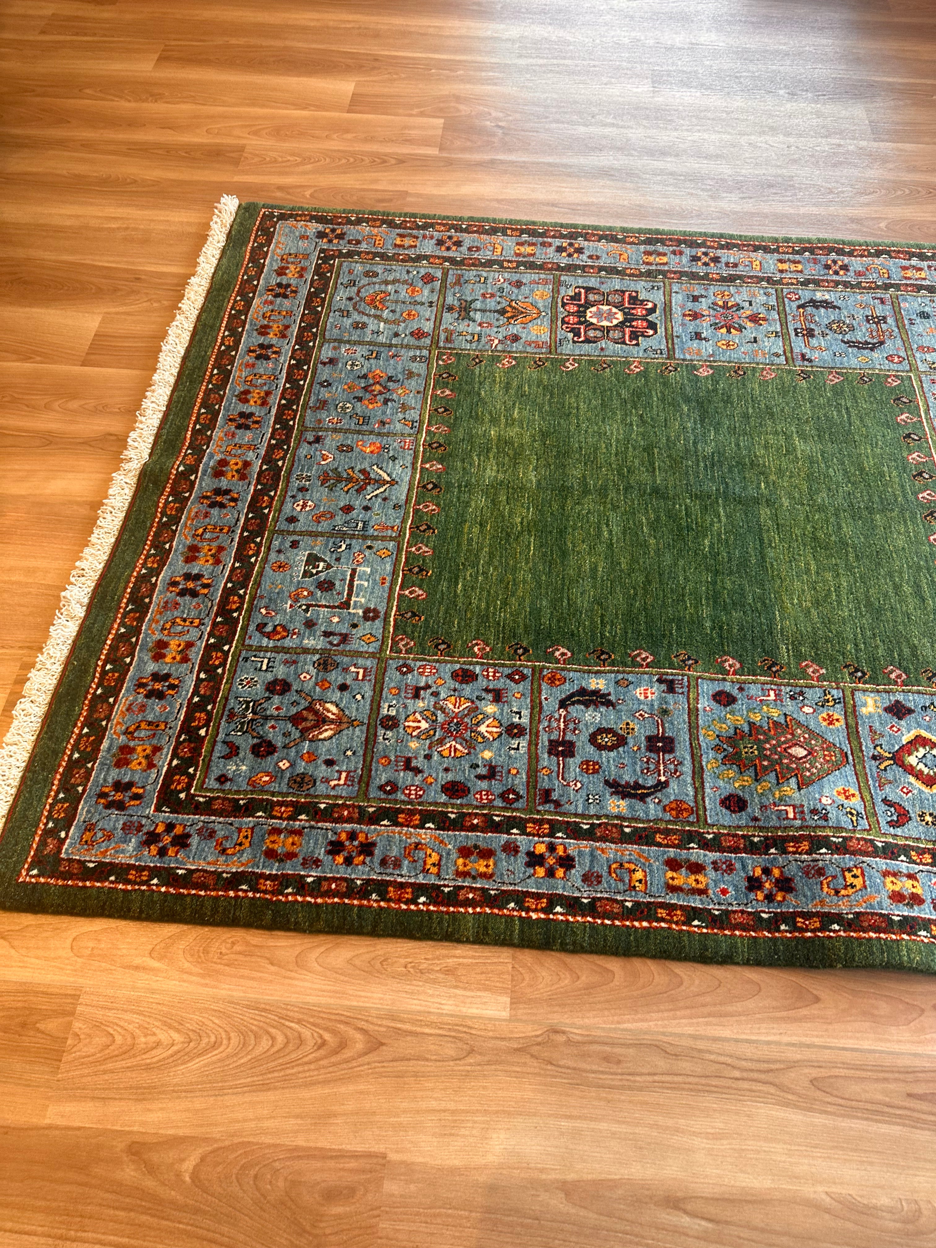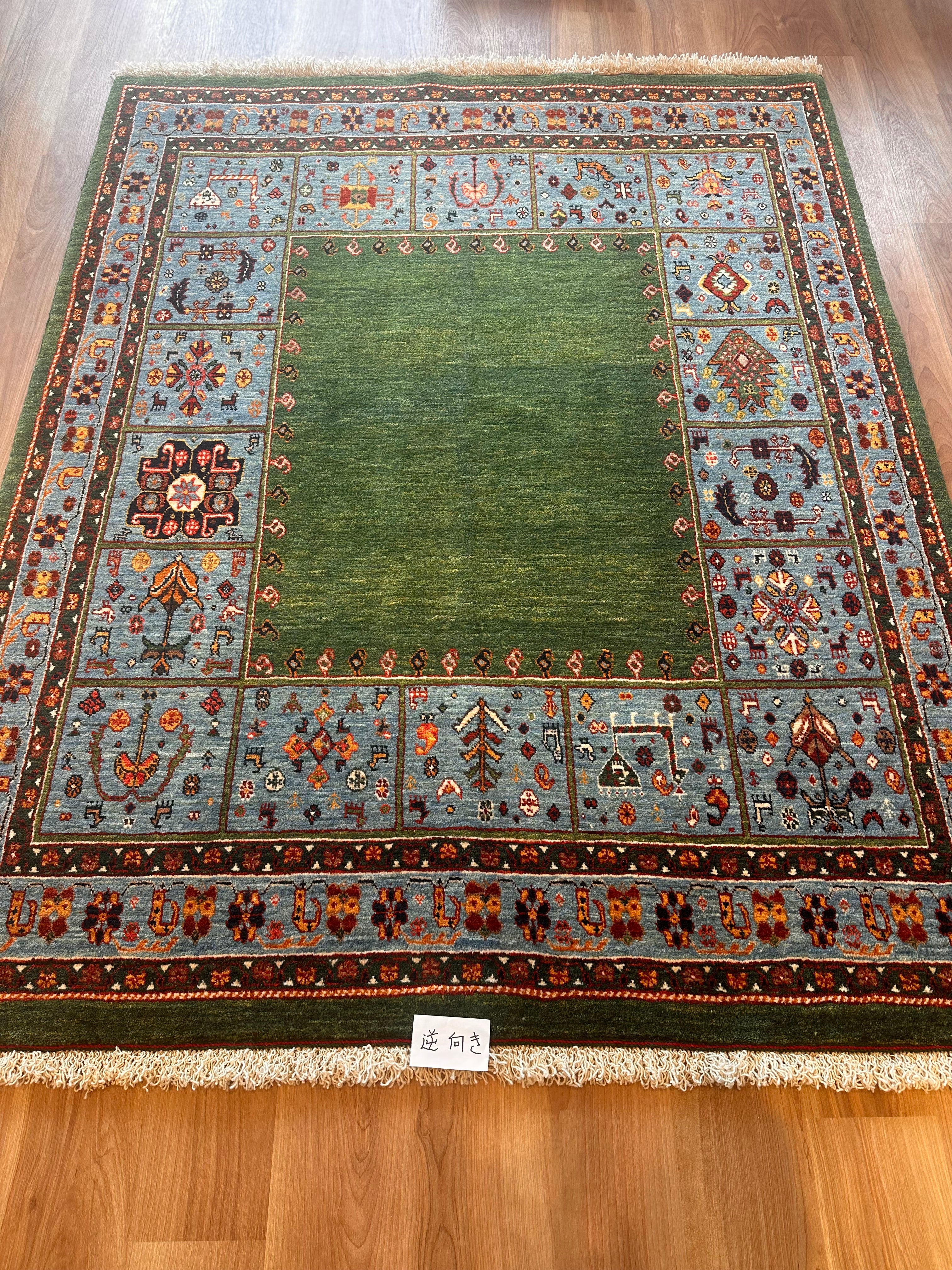 エクセレントギャッベ 183×147cm 手織り 緑(GE-0378)