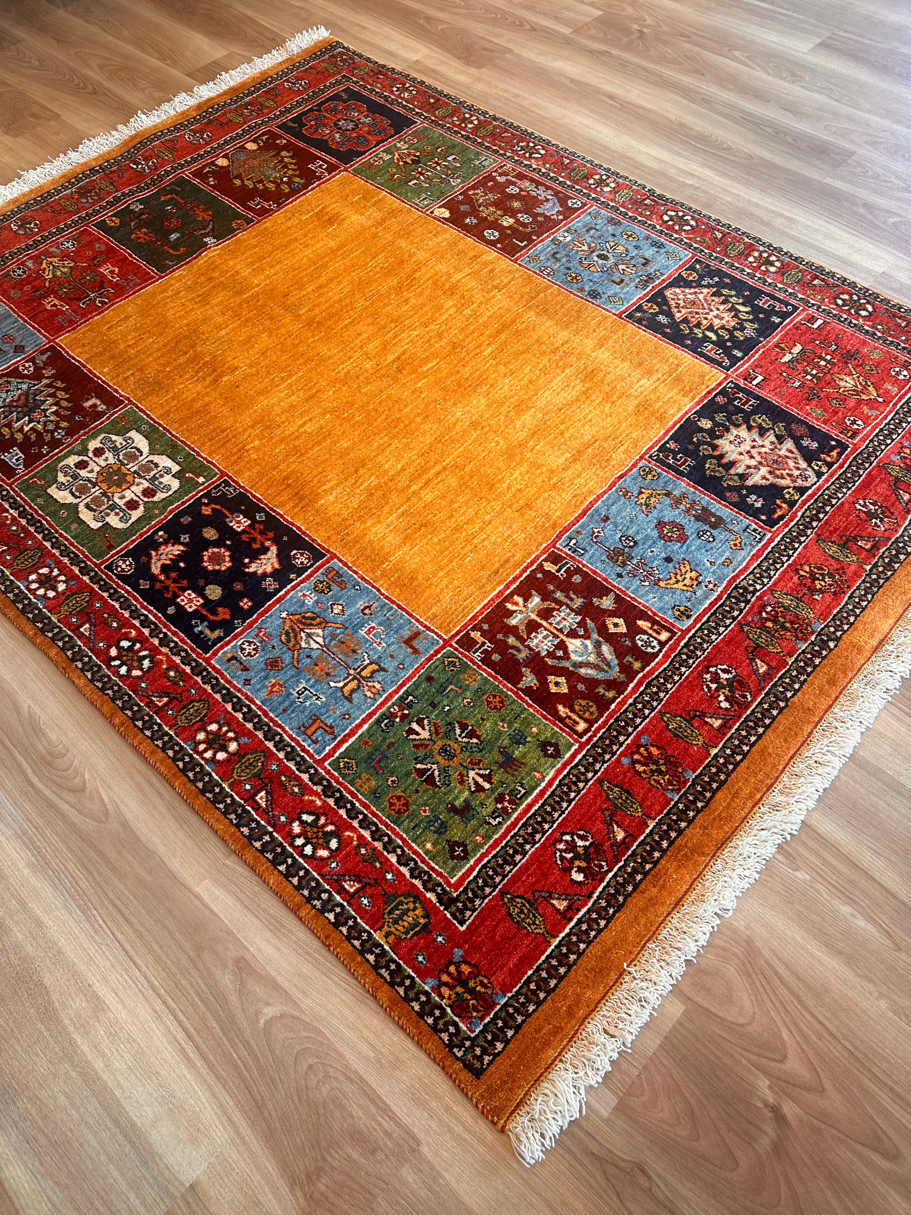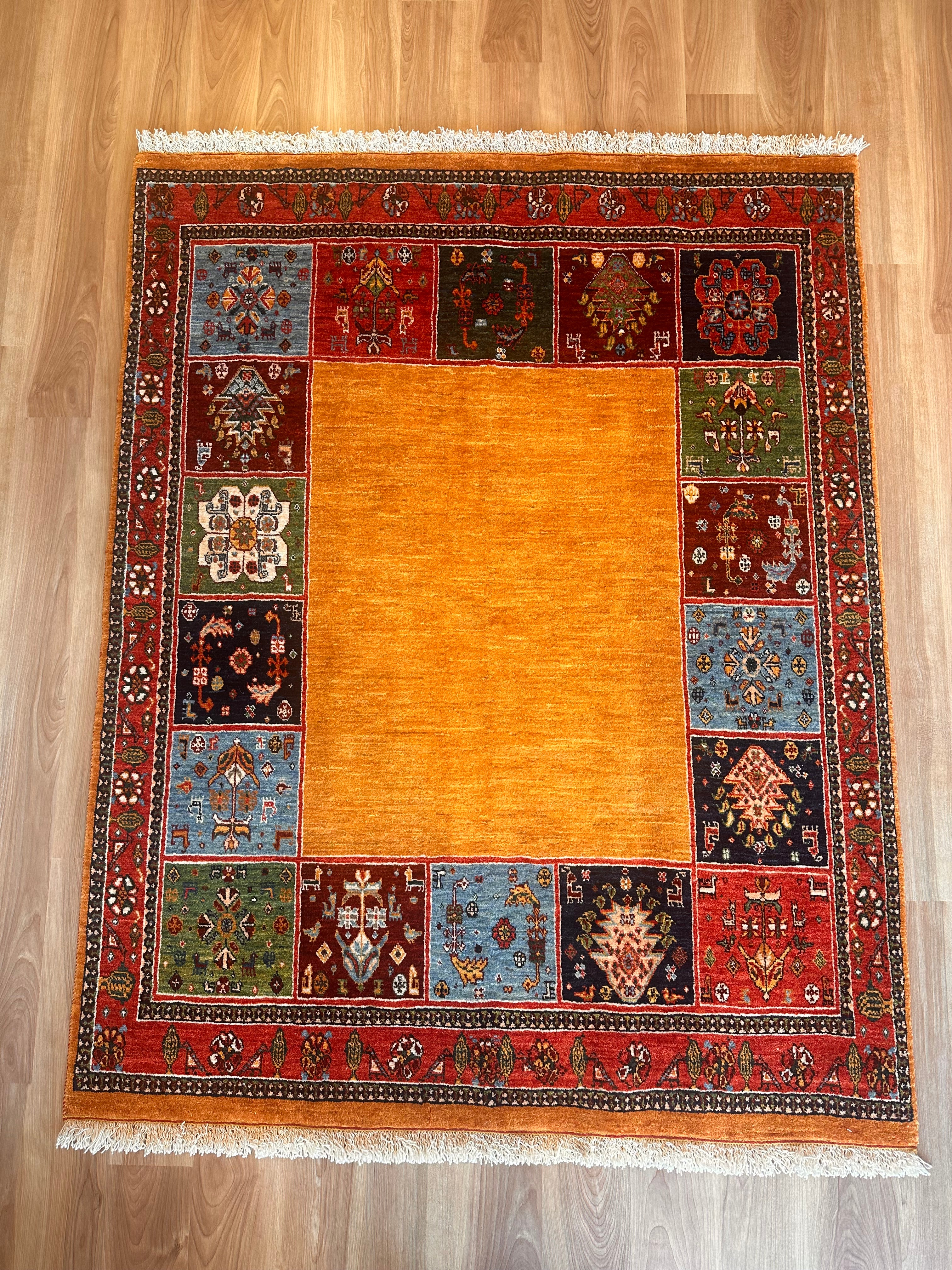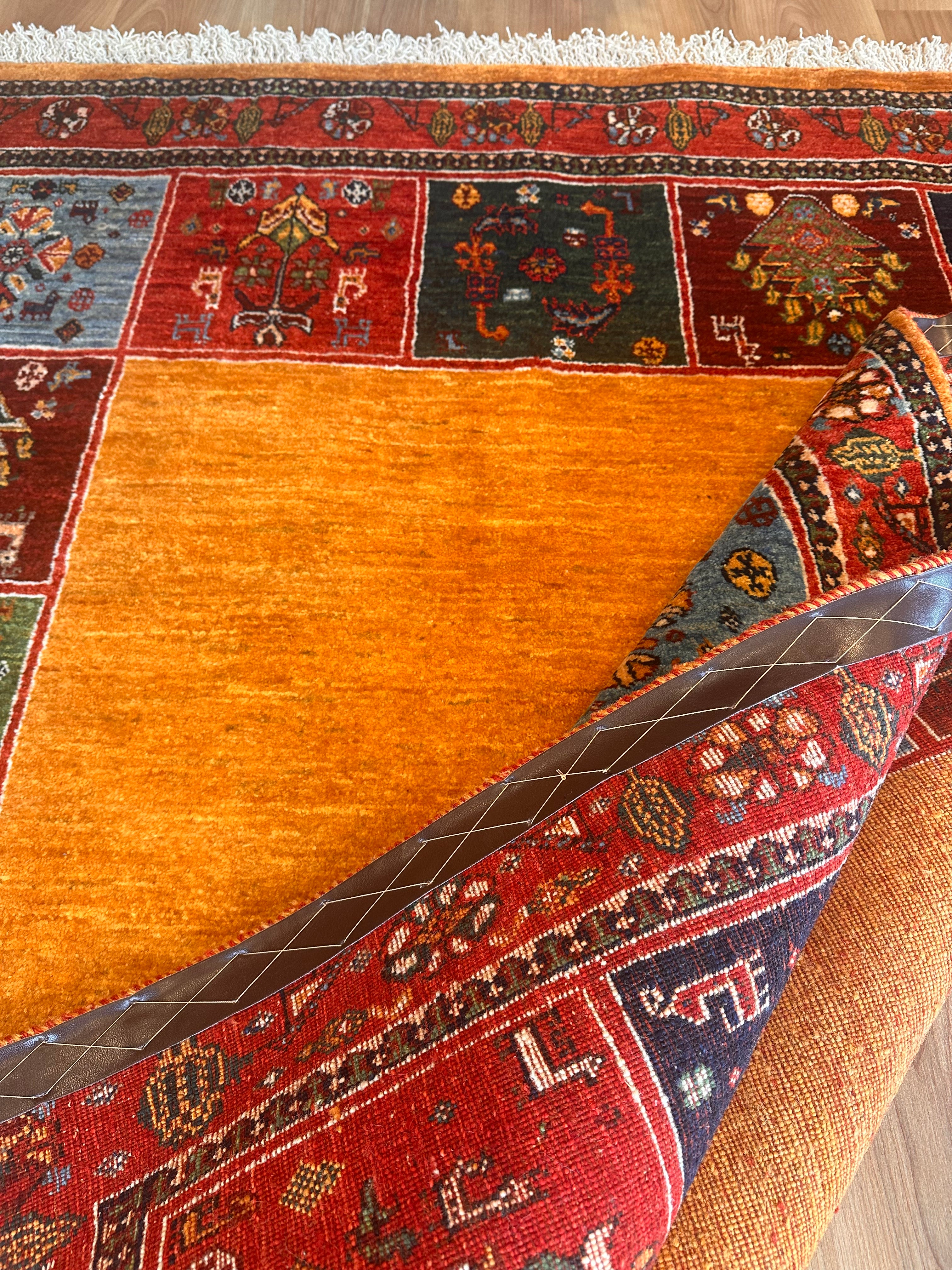 【リビング・ダイニング☆送料無料☆返品保証】(living dining room size)ペルシャ王国(現在のイラン)の遊牧民により手織りで織り上げられるギャッベ カシュガイ族という部族の女性の織り子さんが家族の幸せや豊さを願い、自然へ感謝し生きる喜び気持ちを込めてひと目ひと目、織り上げていきます