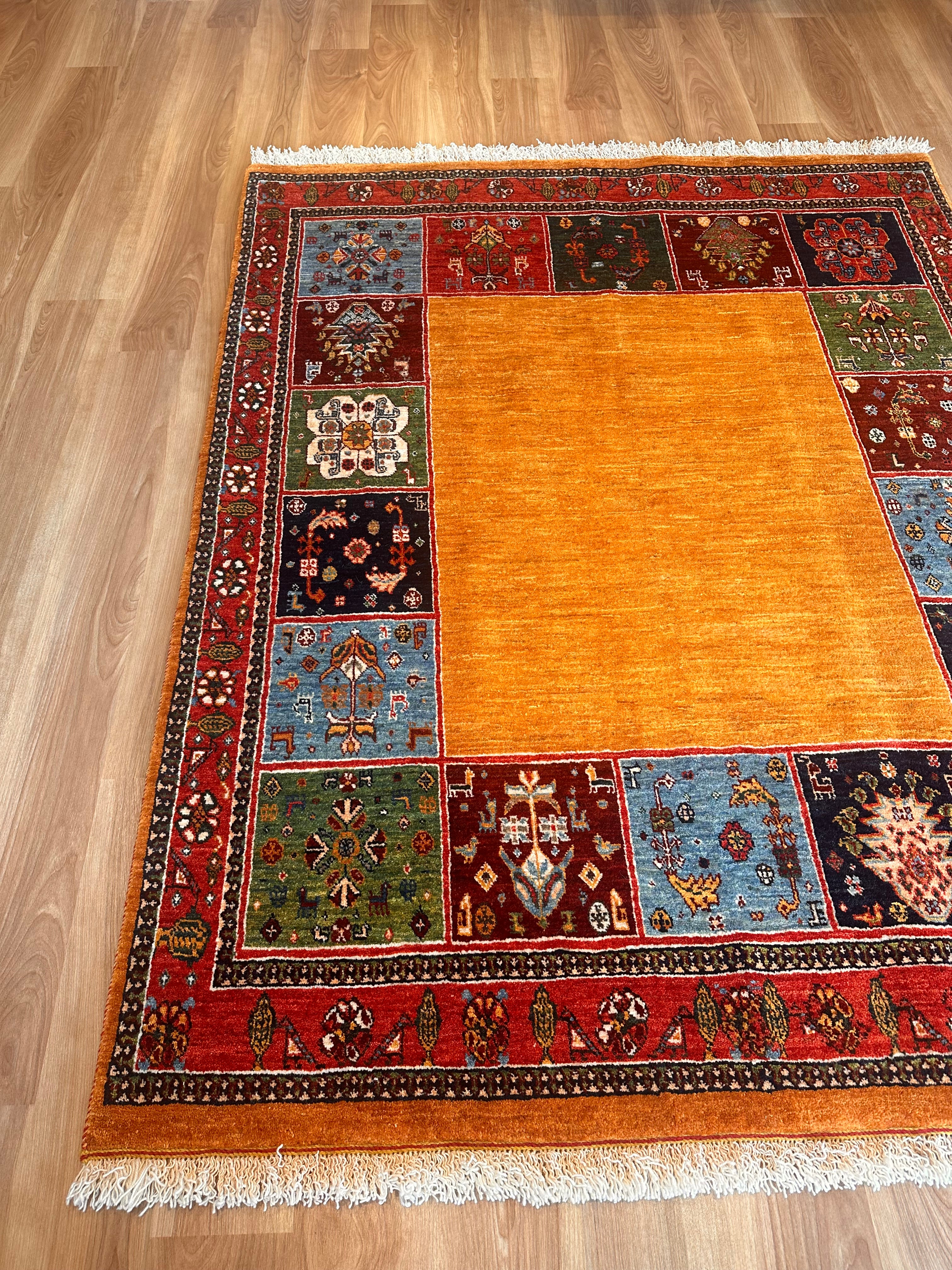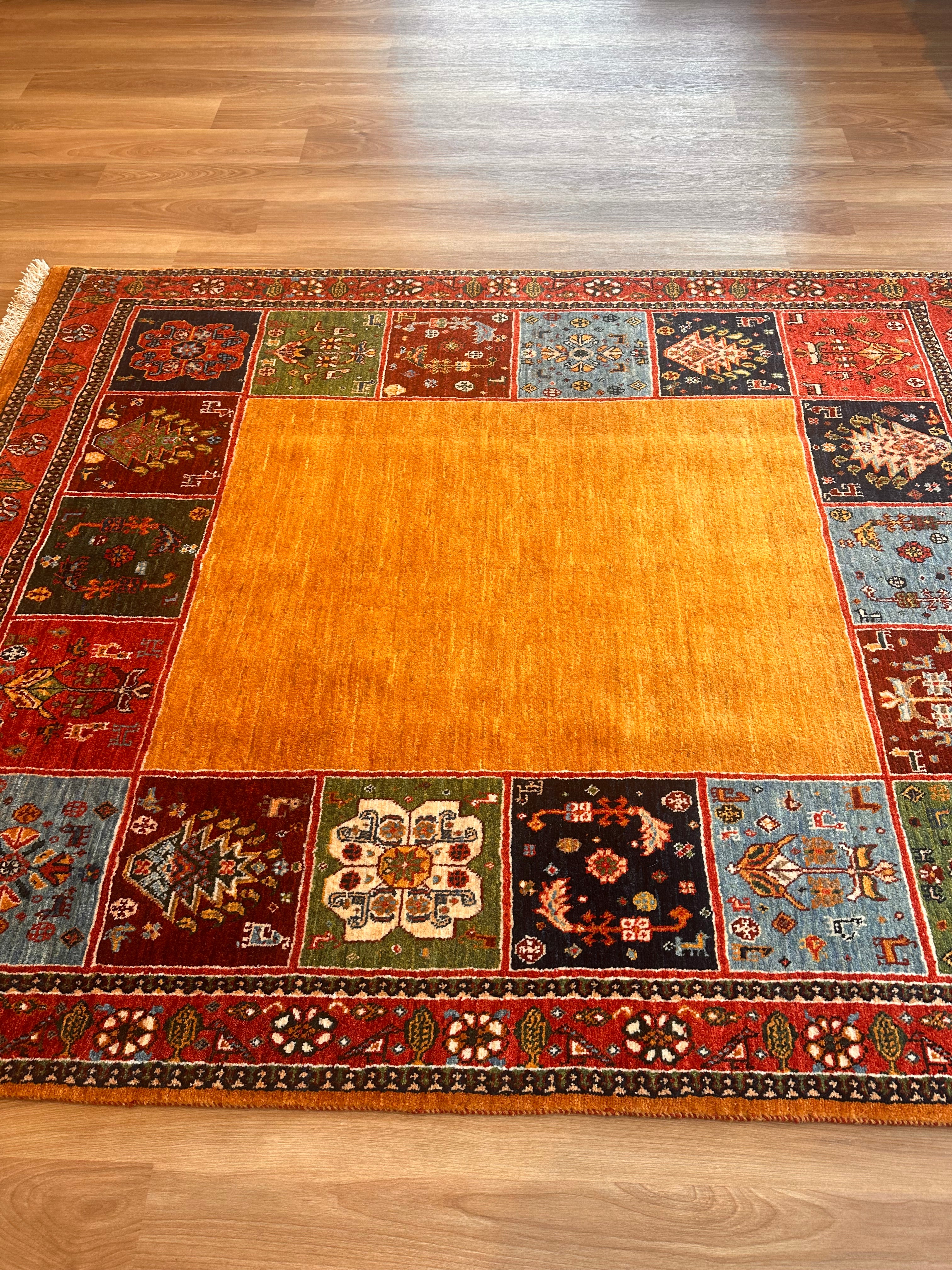 エクセレントギャッベ 190×150cm 手織り 黄色(GE-0377)