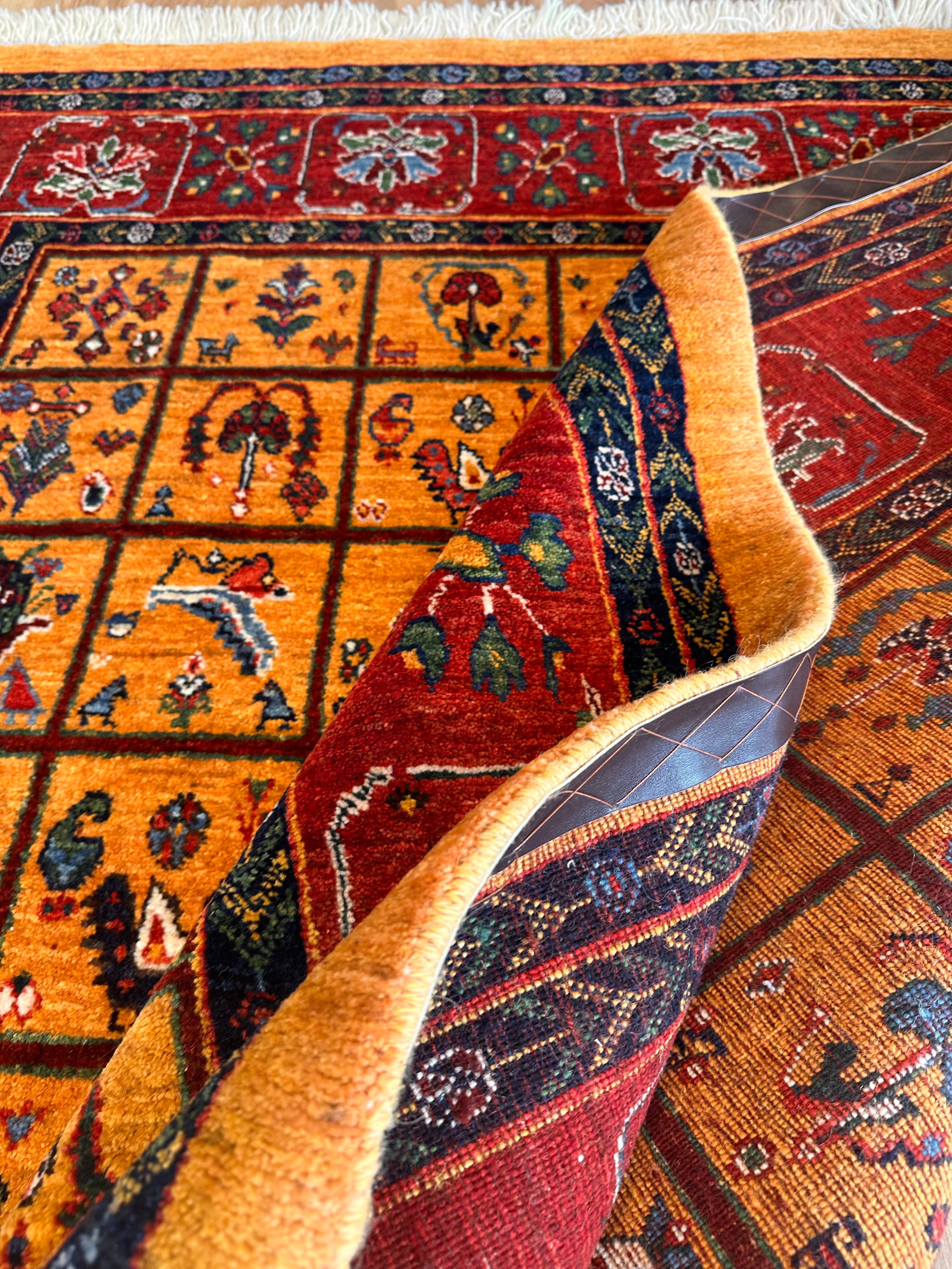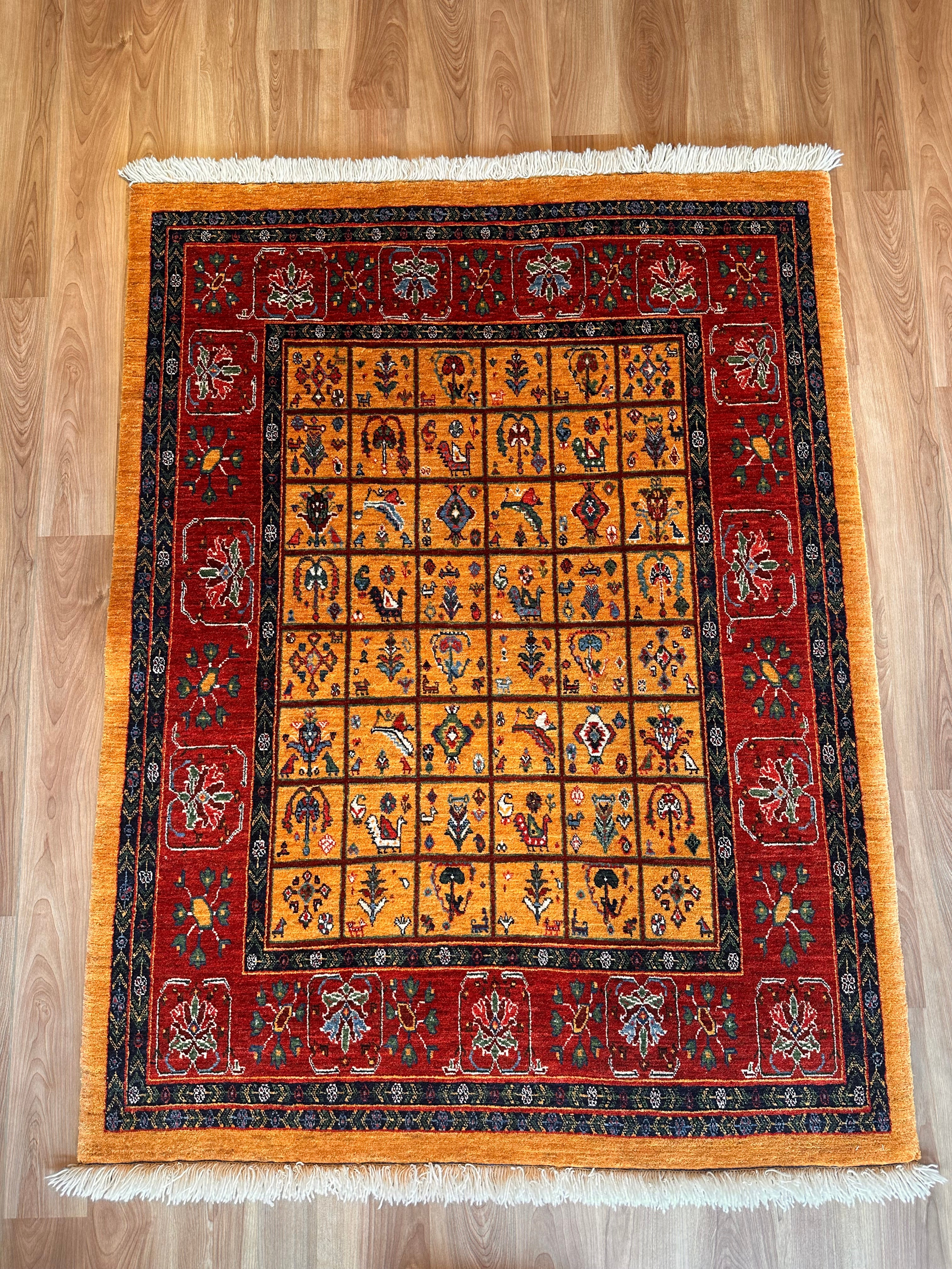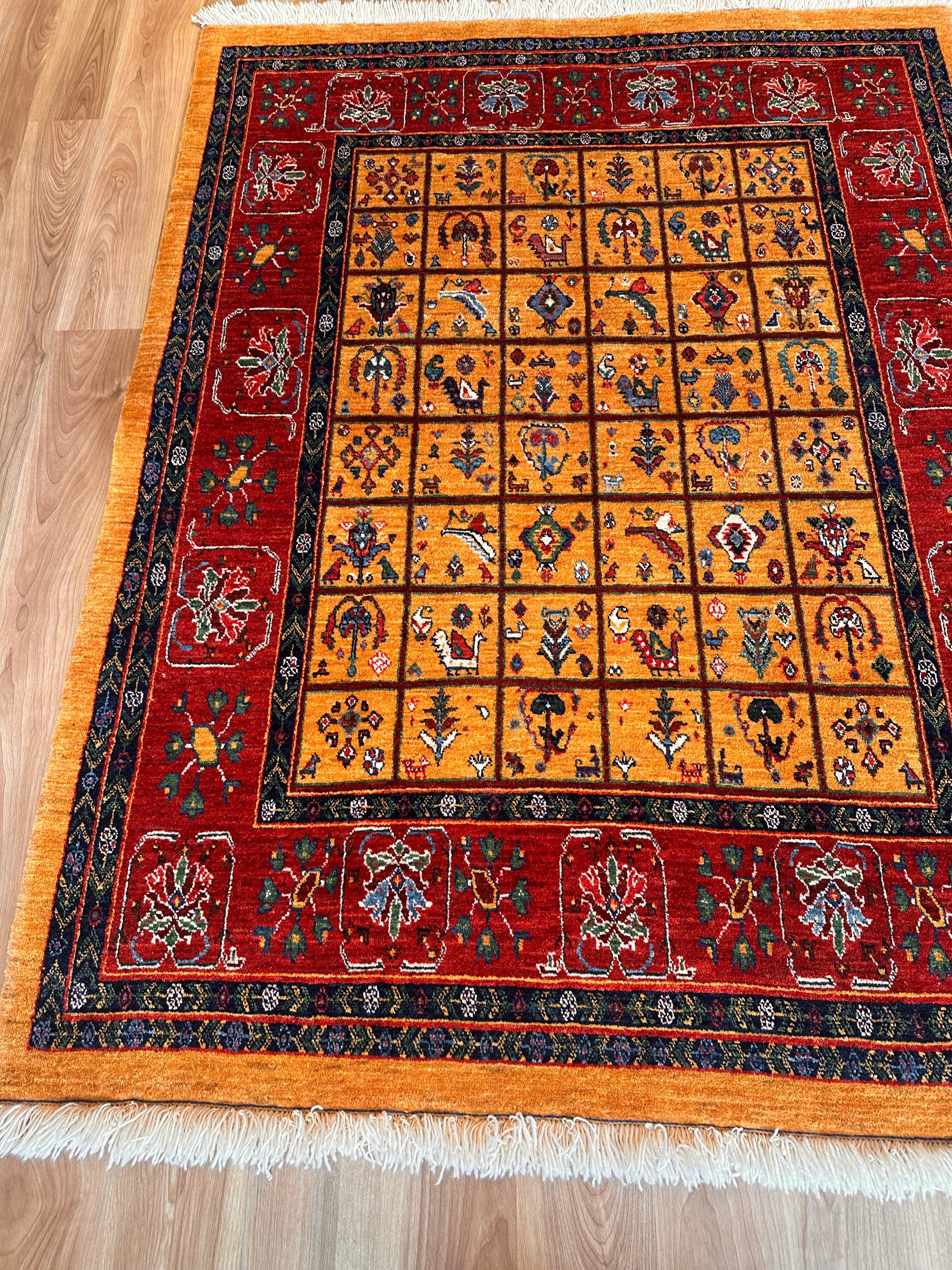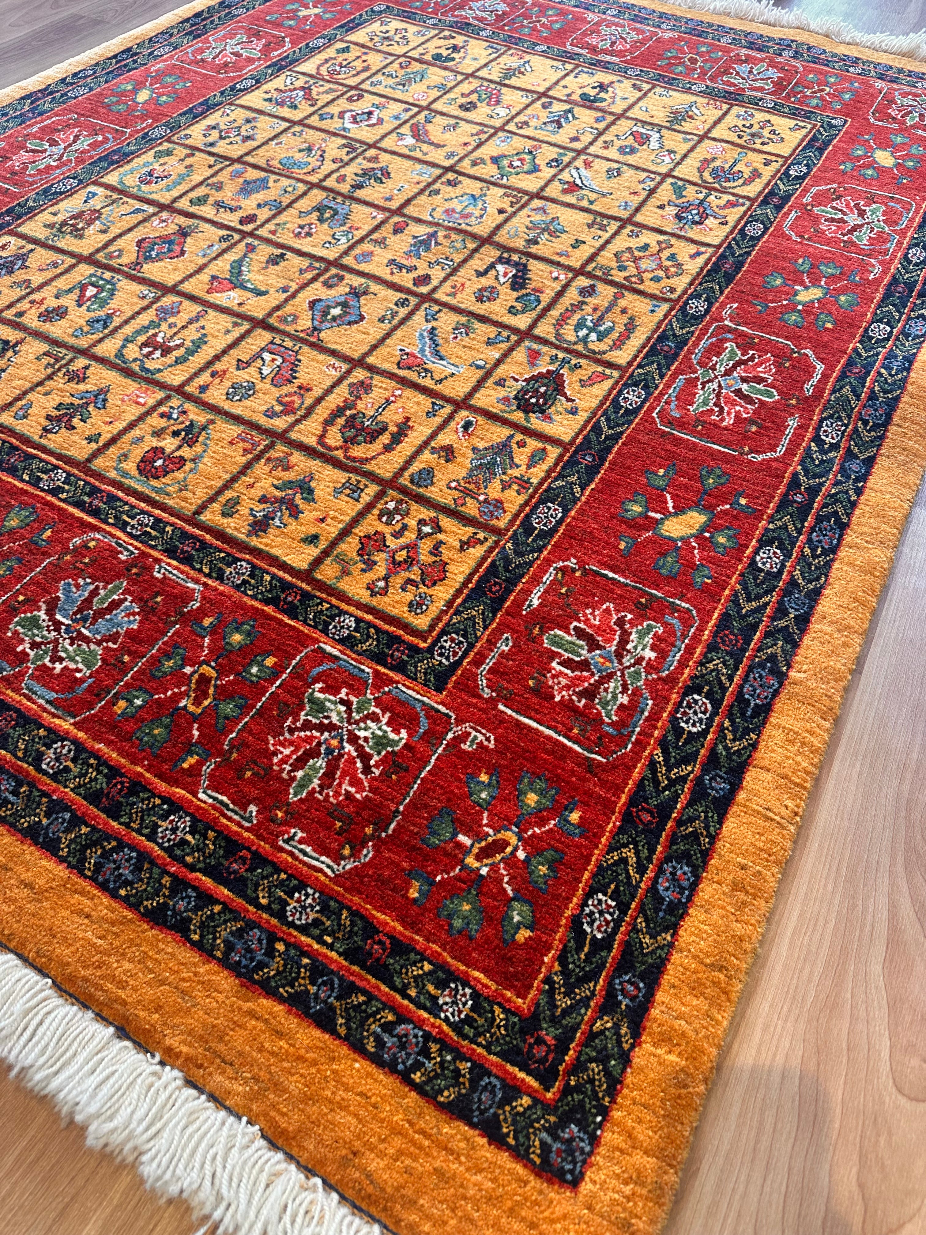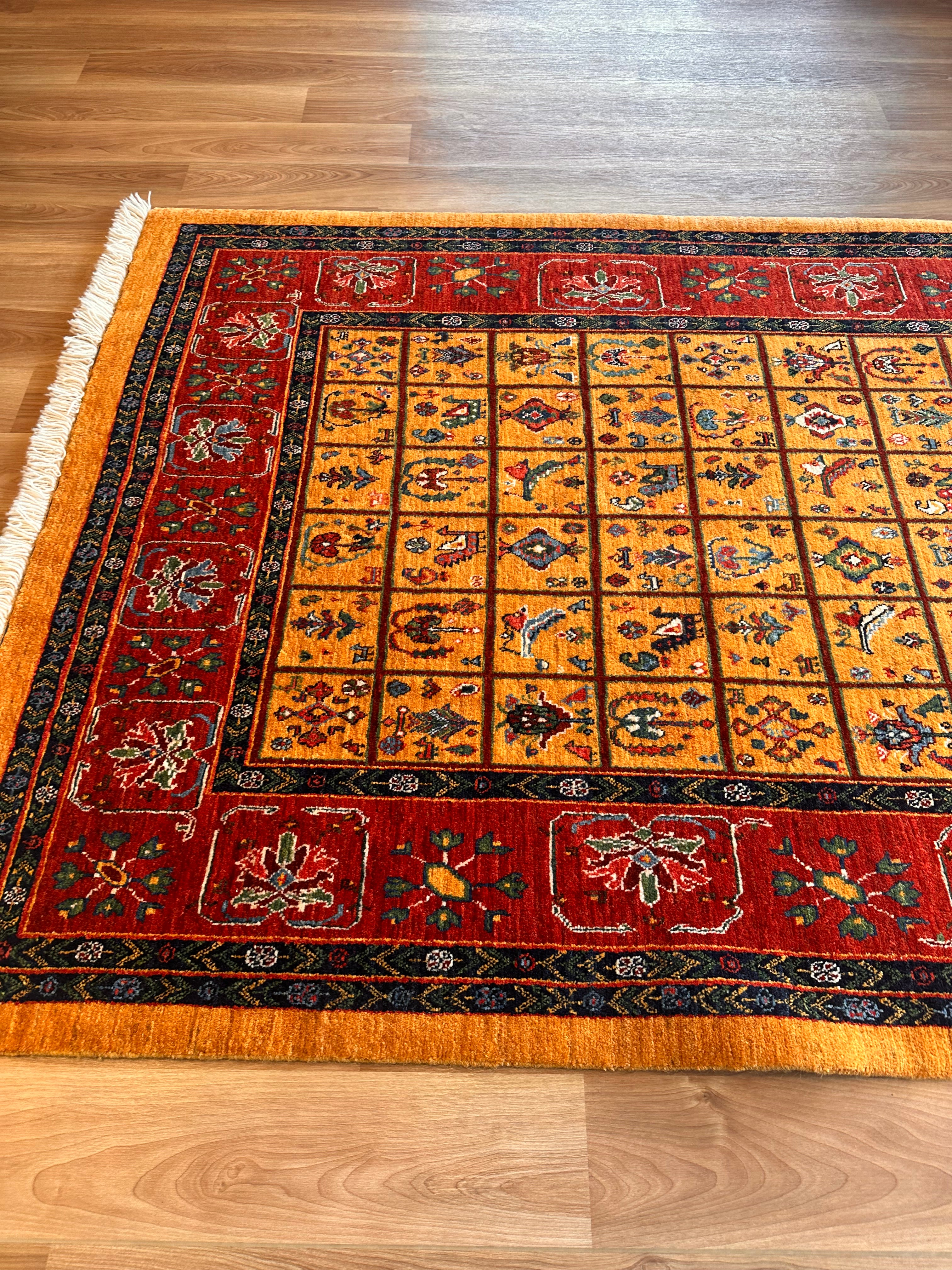 エクセレントギャッベ 195×150cm 手織り 黄 赤(GE-0372)