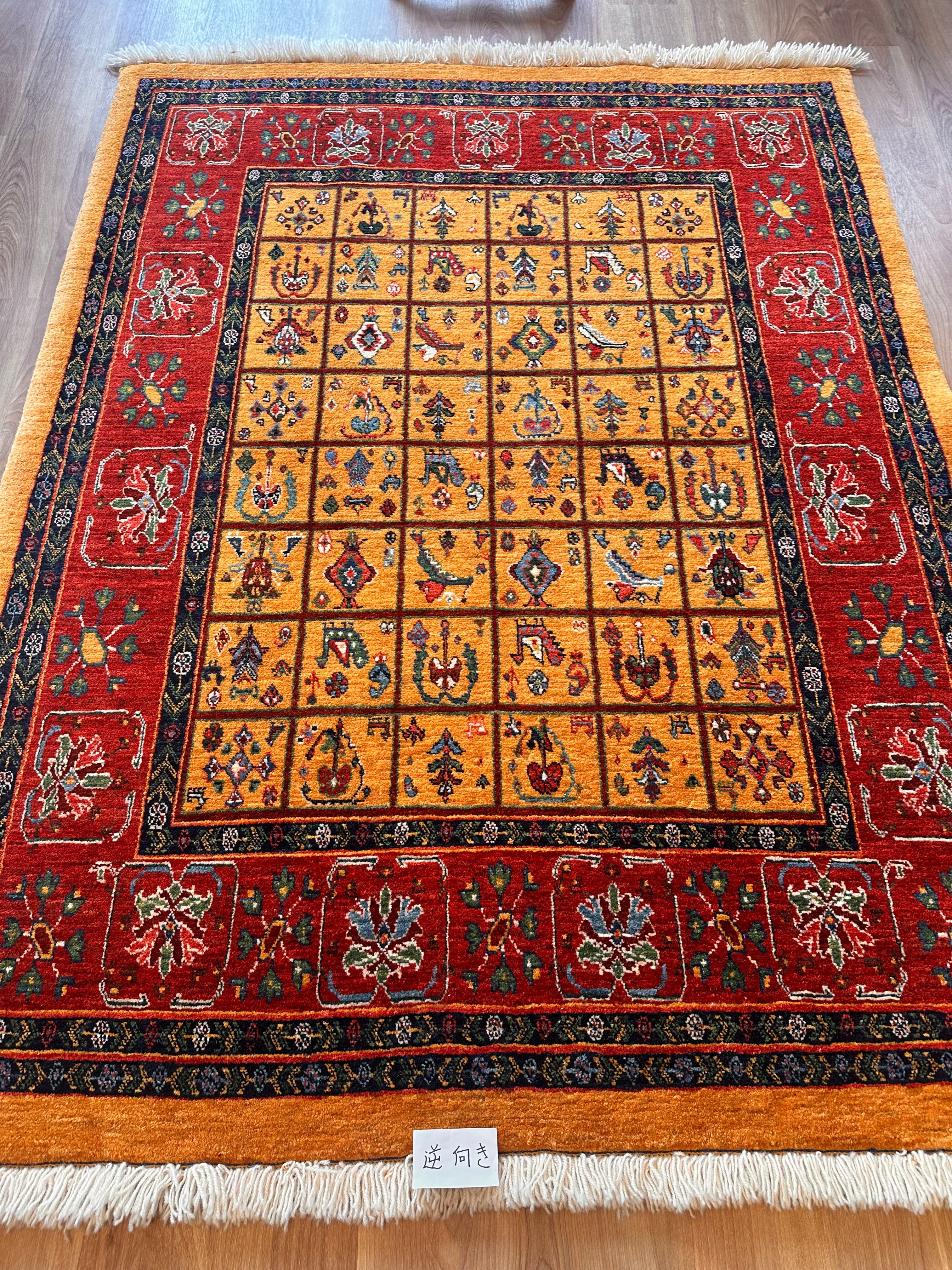【リビング・ダイニング☆送料無料☆返品保証】(living dining room size)ペルシャ王国(現在のイラン)の遊牧民により手織りで織り上げられるギャッベ カシュガイ族という部族の女性の織り子さんが家族の幸せや豊さを願い、自然へ感謝し生きる喜び気持ちを込めてひと目ひと目、織り上げていきます