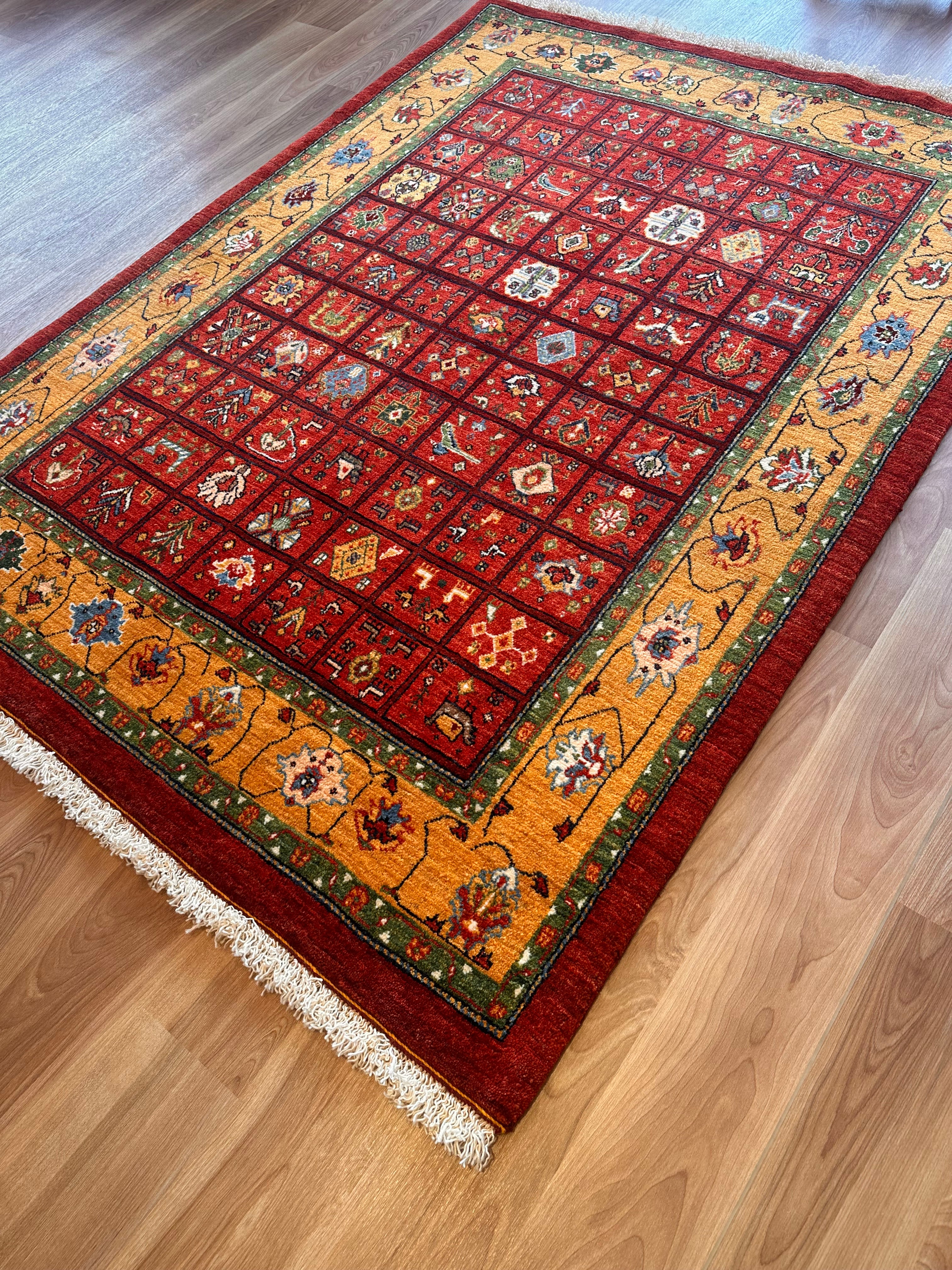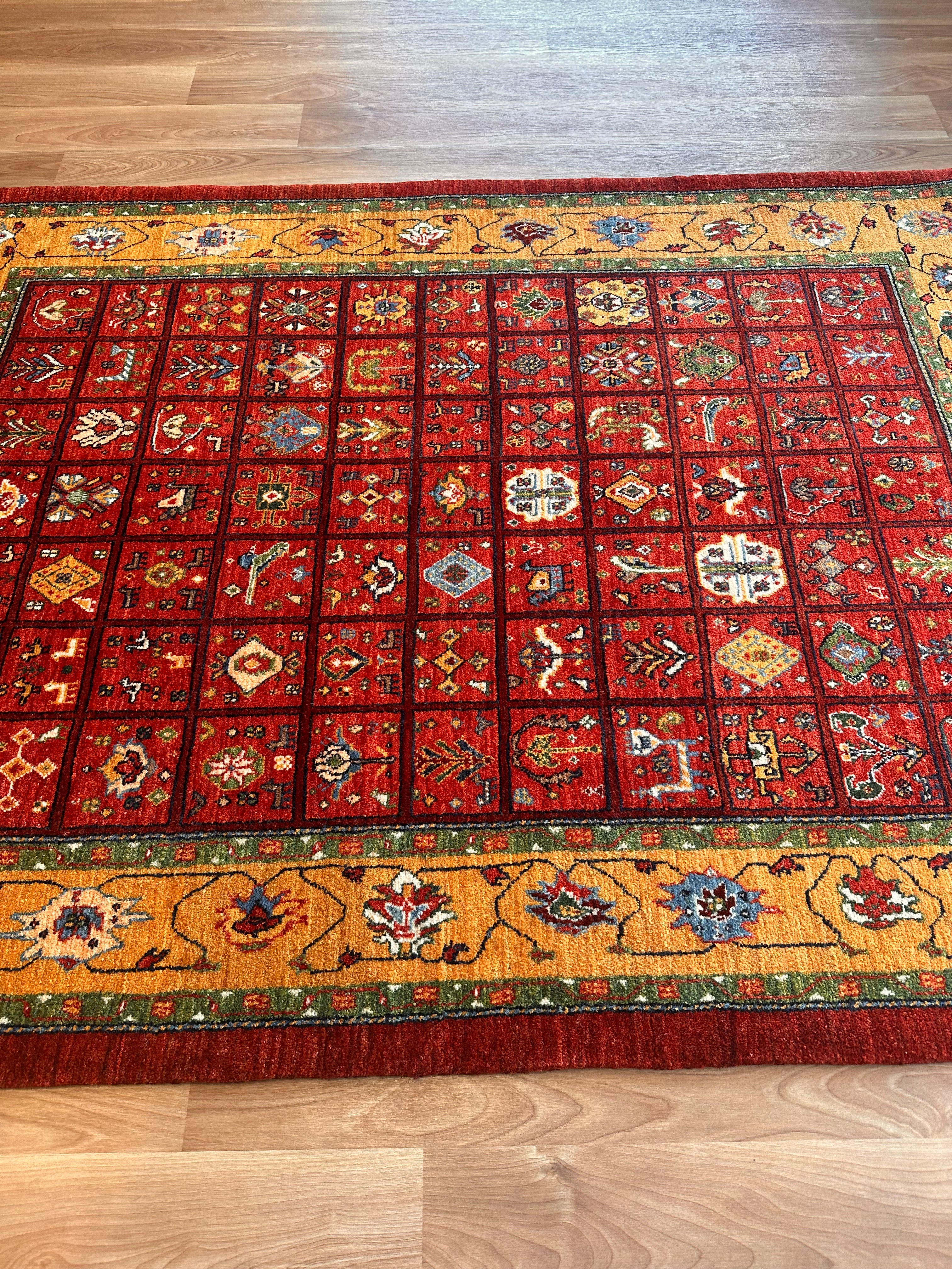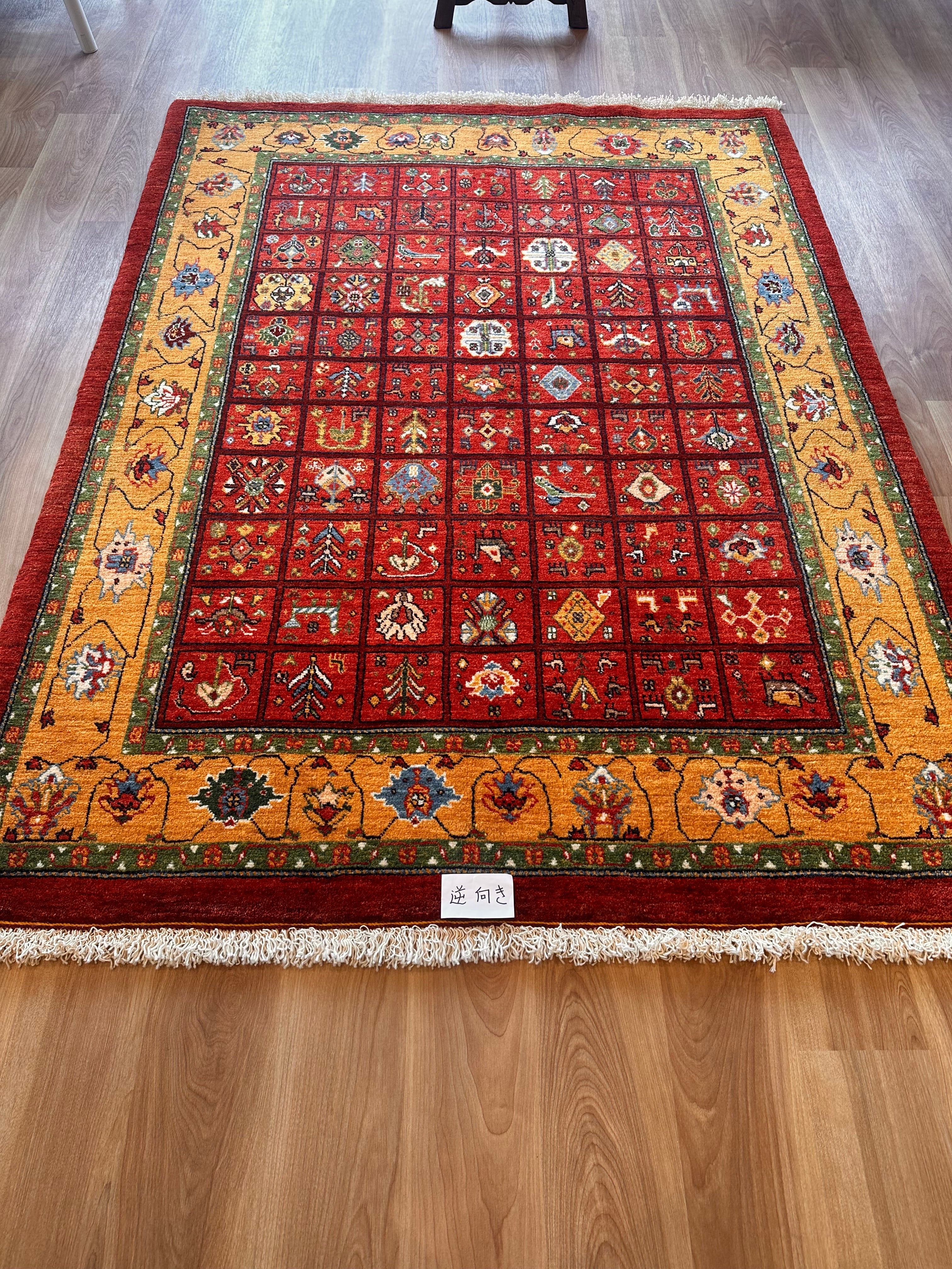 エクセレントギャッベ 197×148cm 手織り赤 黄(GE-0370)