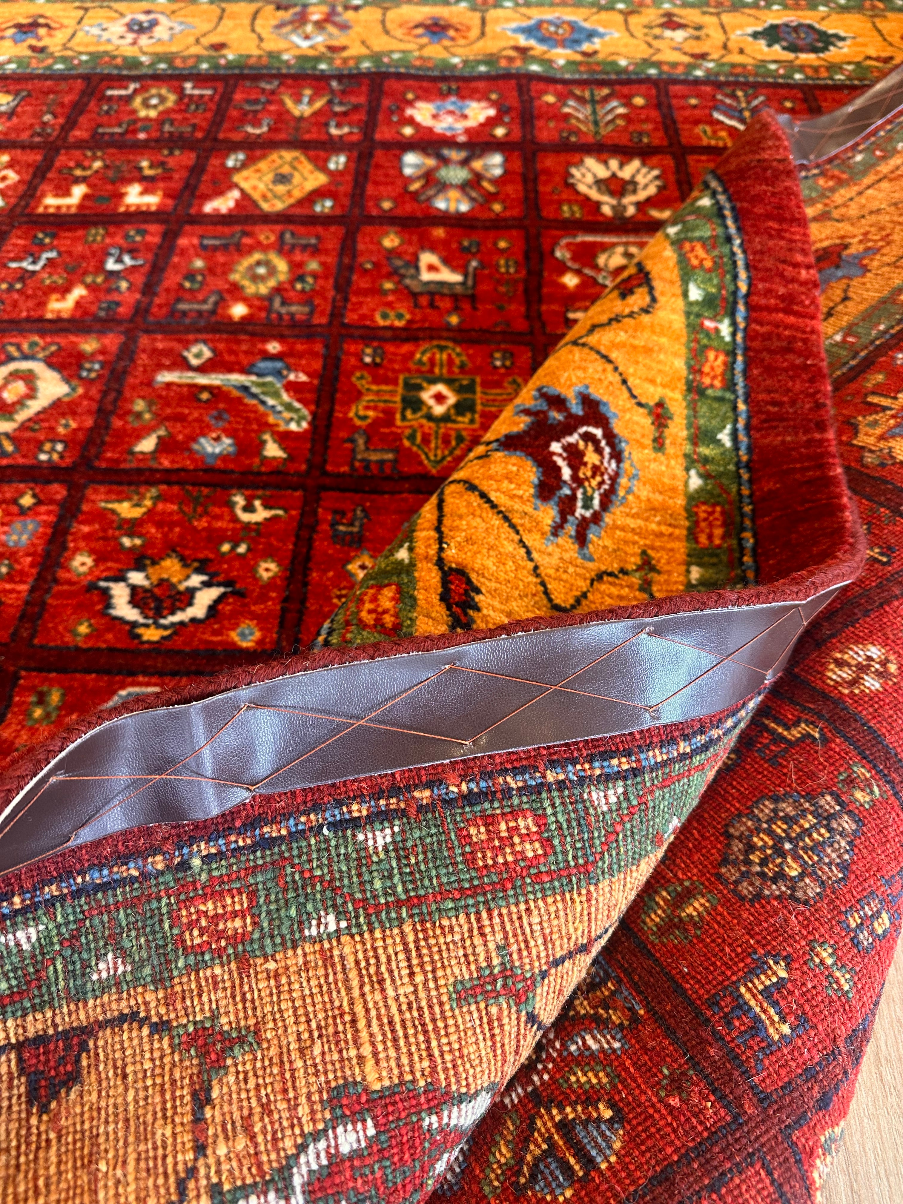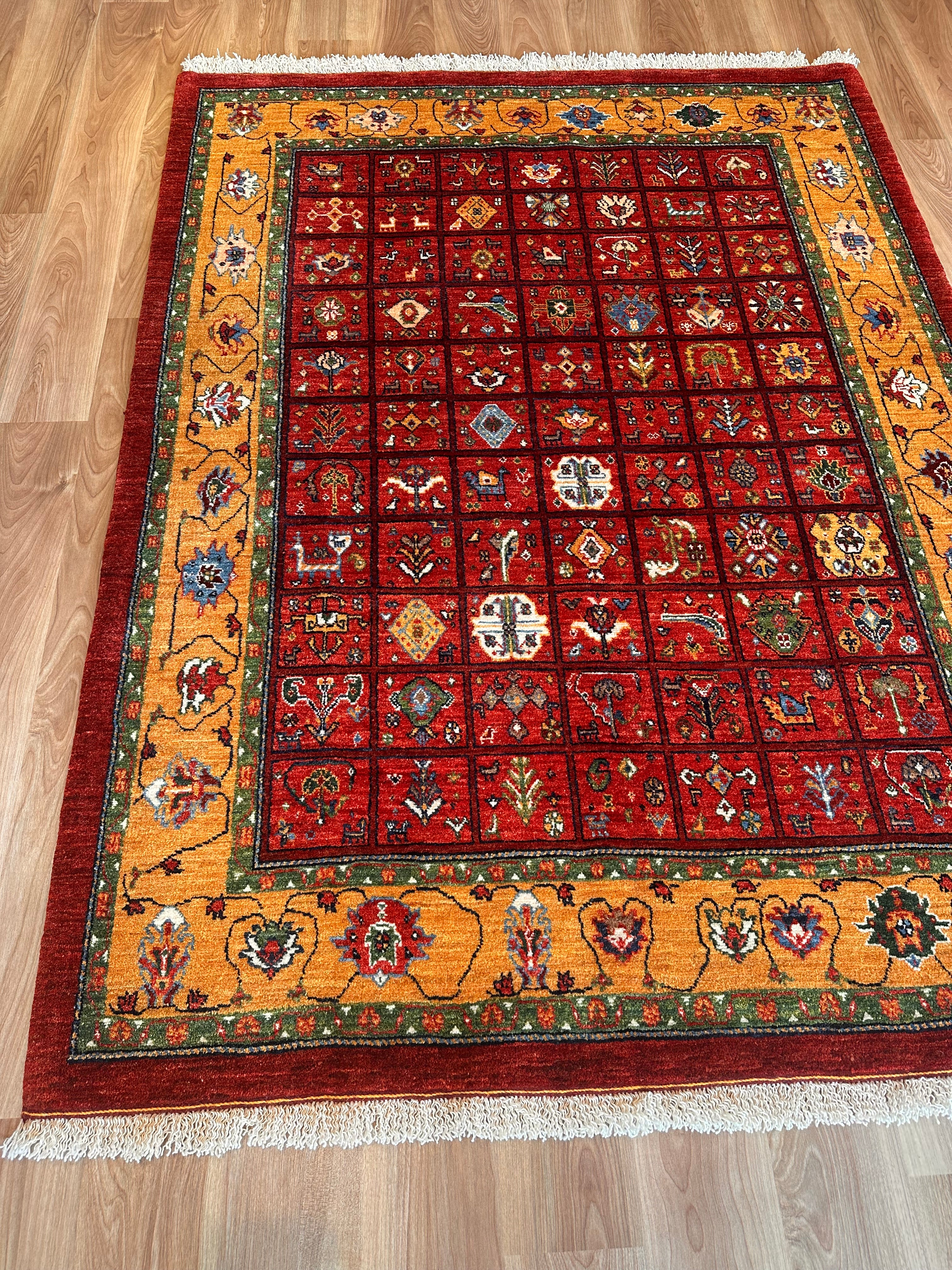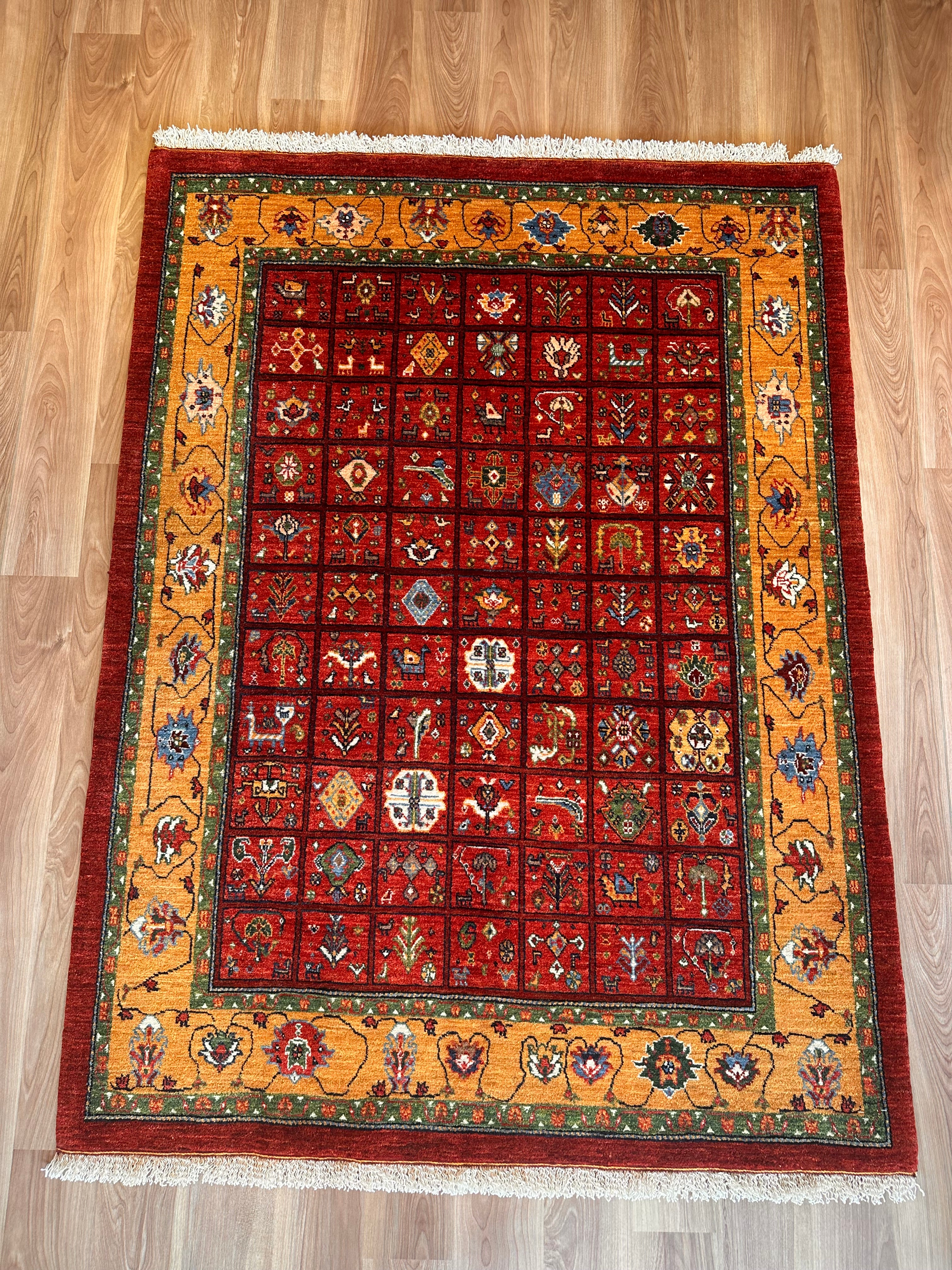 エクセレントギャッベ 197×148cm 手織り赤 黄(GE-0370)