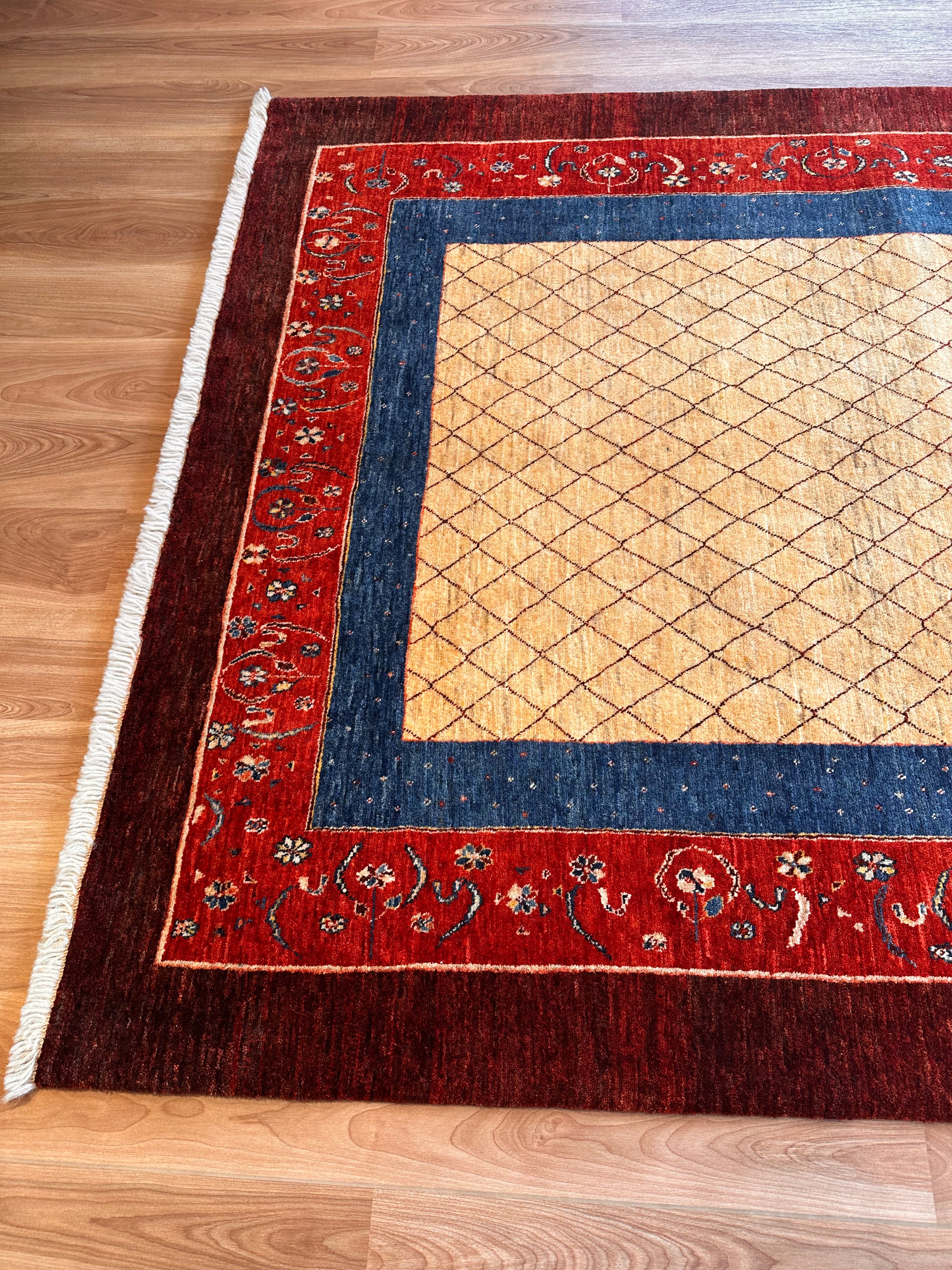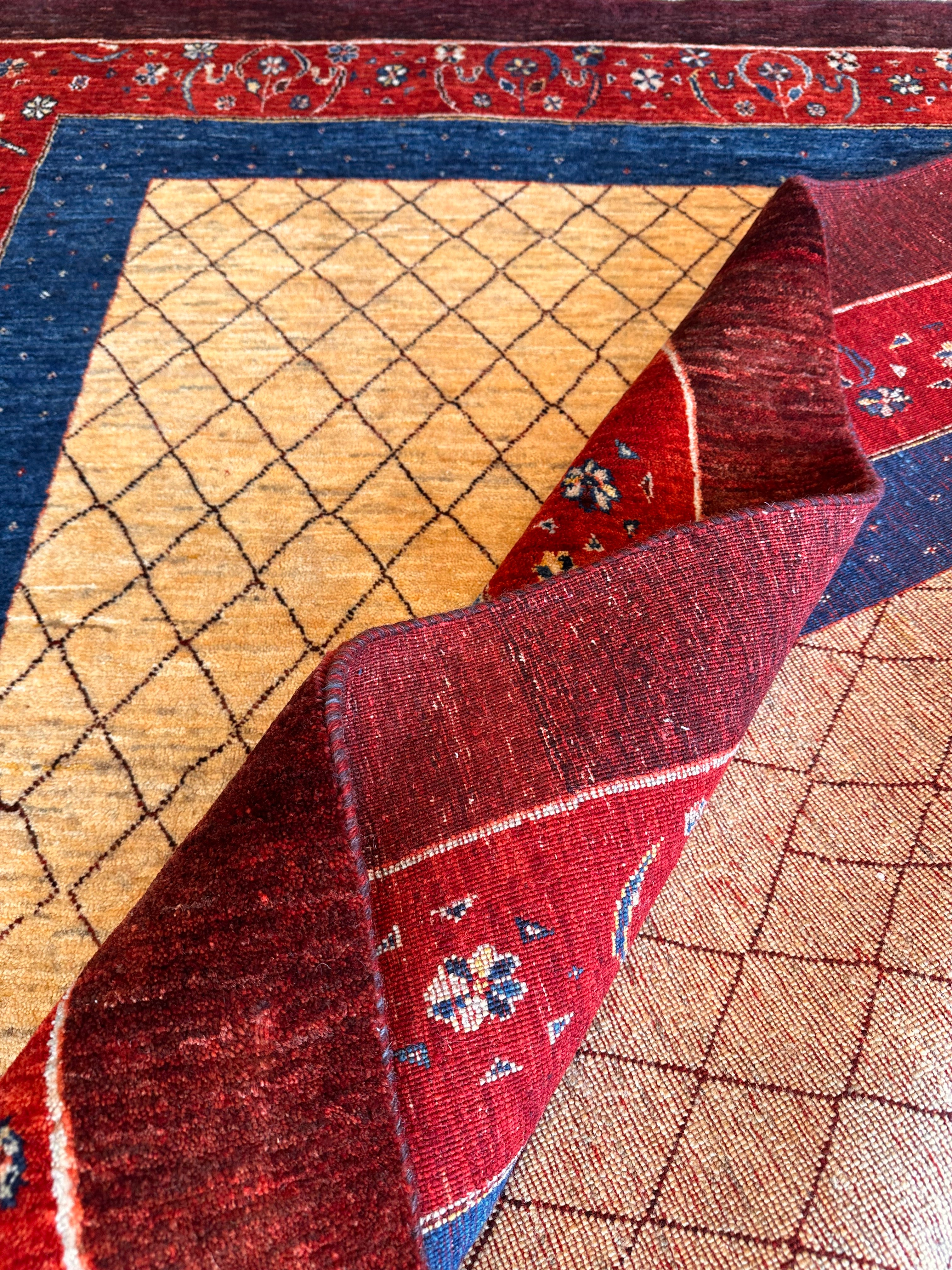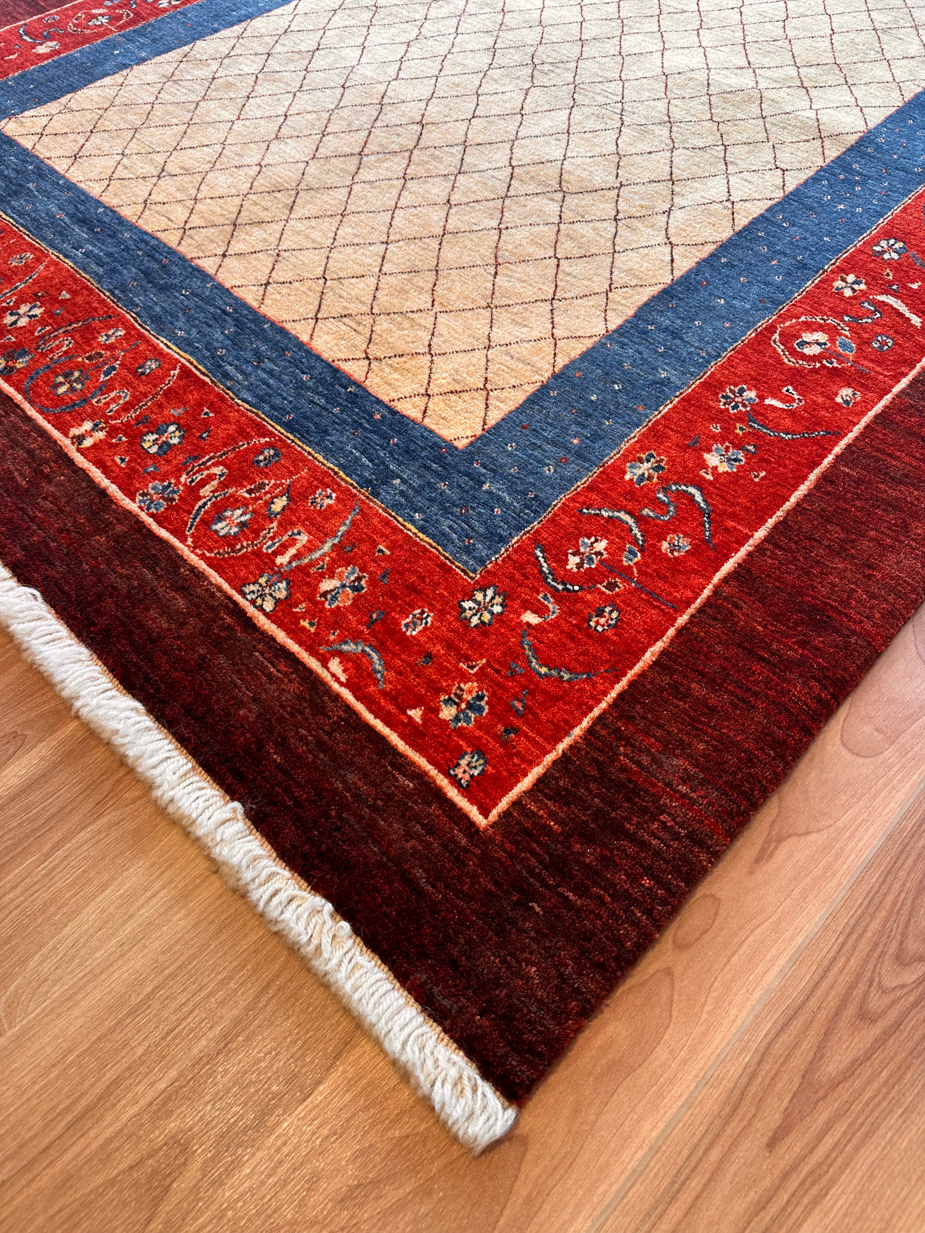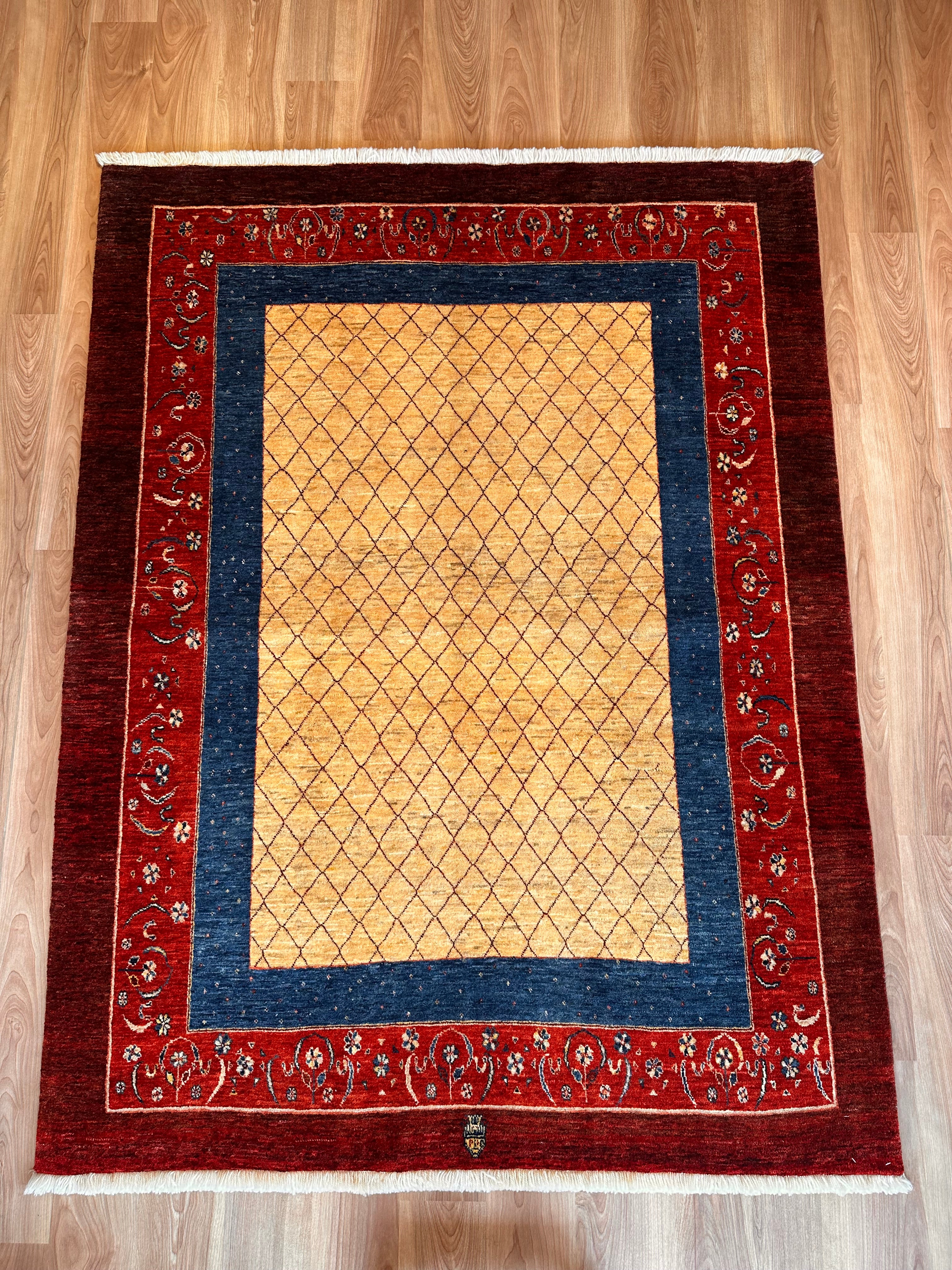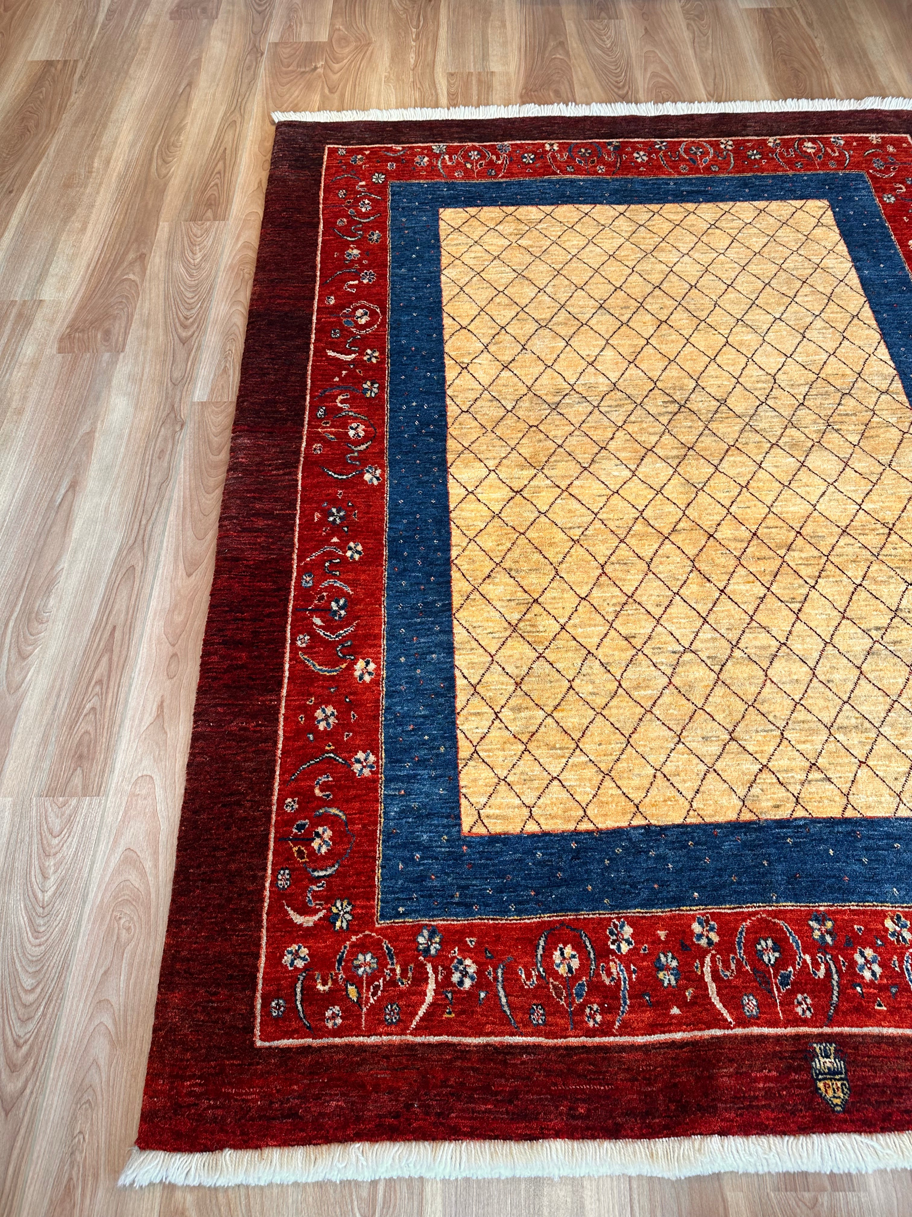 【リビング・ダイニング☆送料無料☆返品保証】(living dining room size)ペルシャ王国(現在のイラン)の遊牧民により手織りで織り上げられるギャッベ カシュガイ族という部族の女性の織り子さんが家族の幸せや豊さを願い、自然へ感謝し生きる喜び気持ちを込めてひと目ひと目、織り上げていきます
