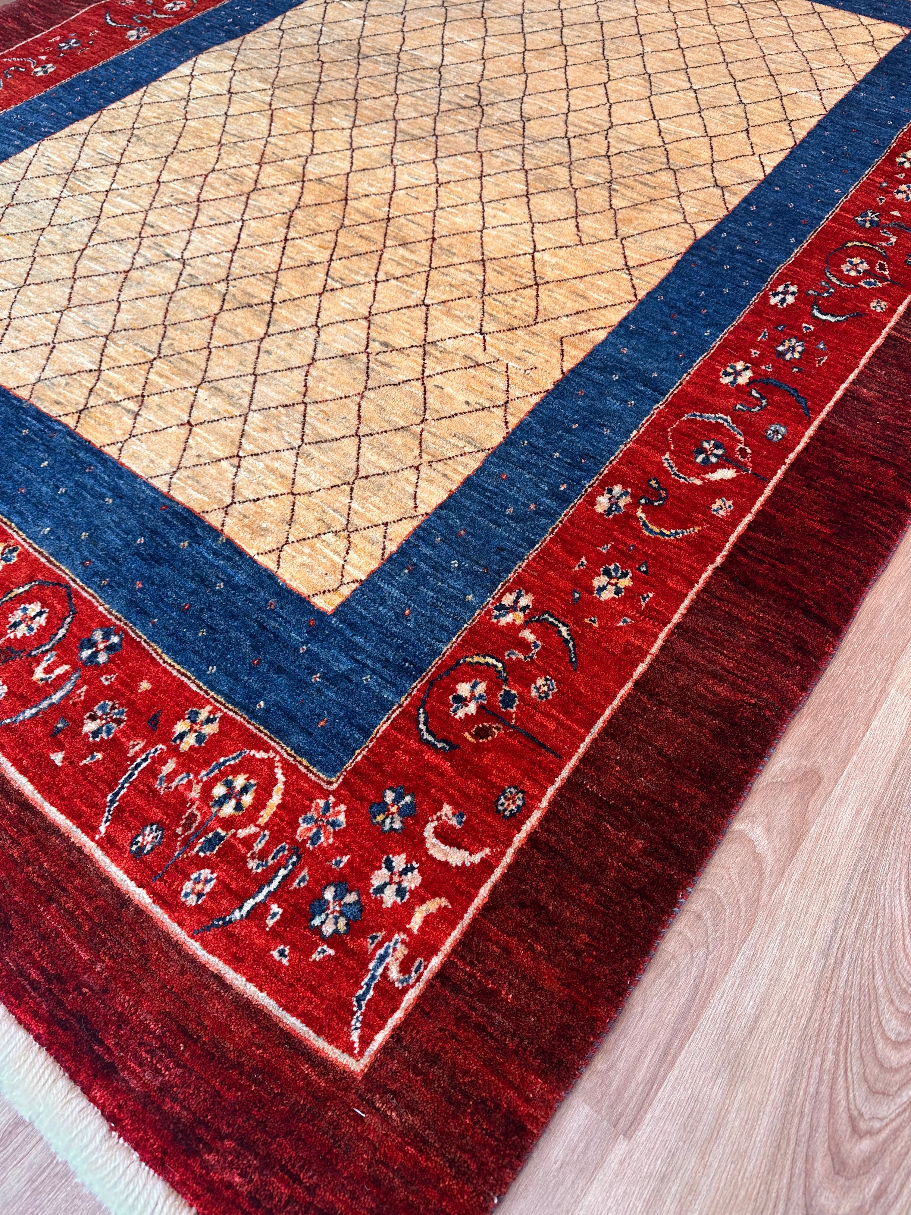 最高級ランクのカシュクリ族が織るカシュクリ・ギャッべ(KashkuliGabbeh)ノーマルなギャッベと比べて、上質な羊毛を使用し織密度が細かく厚みと重厚感がありモダンな印象が特徴です。
