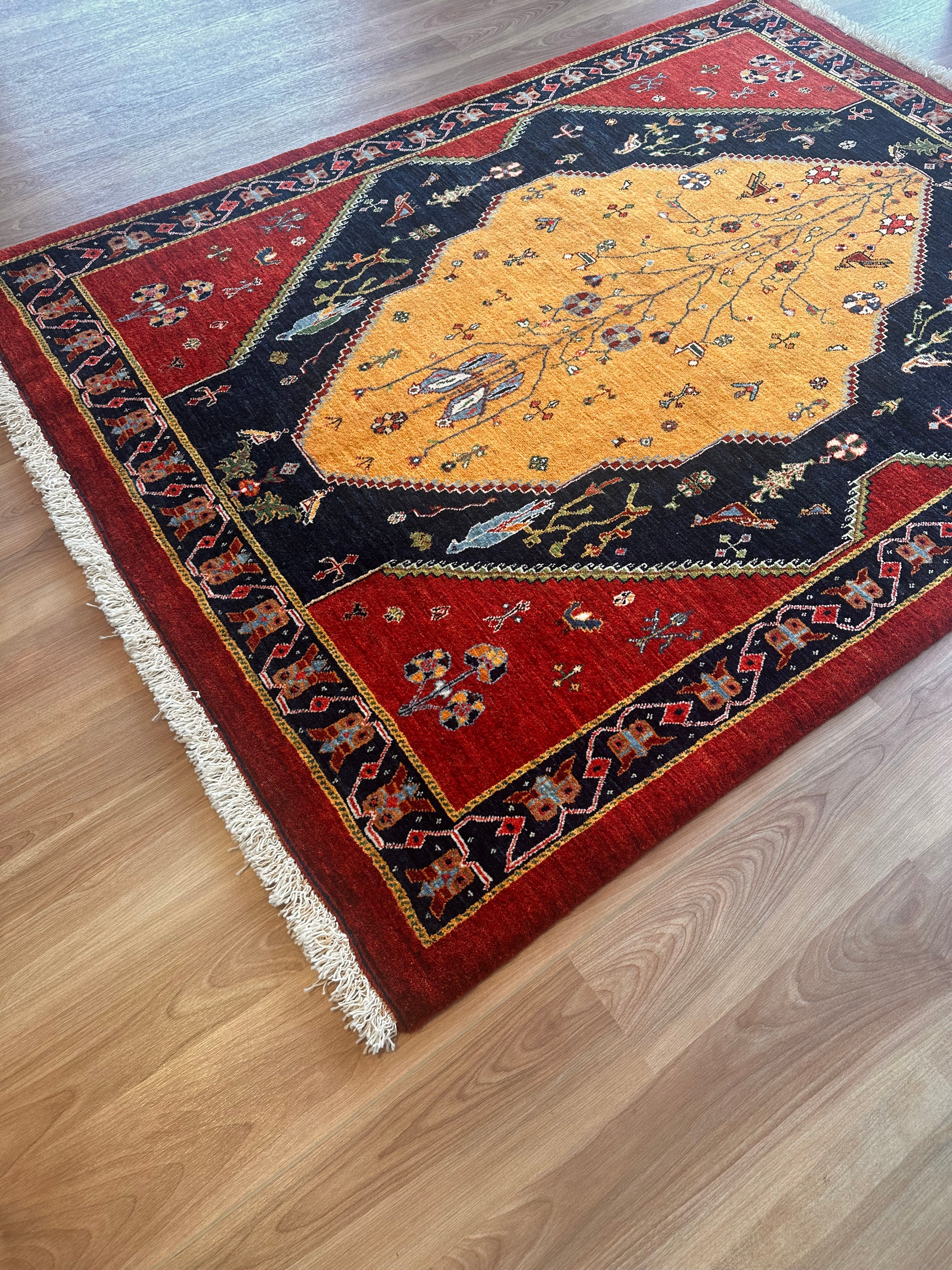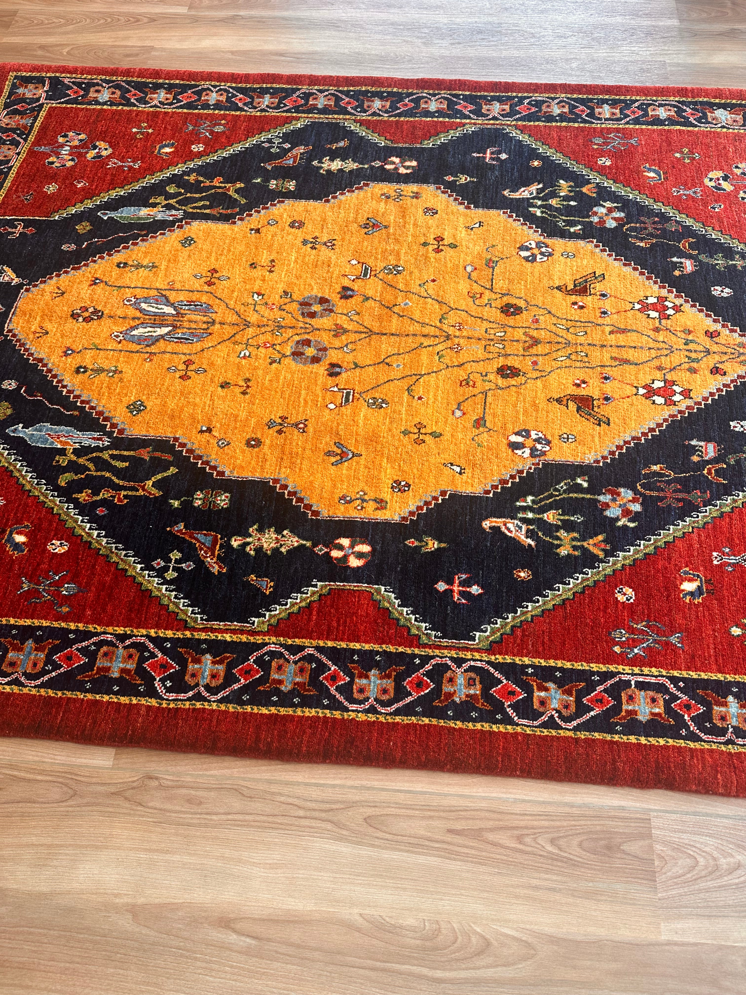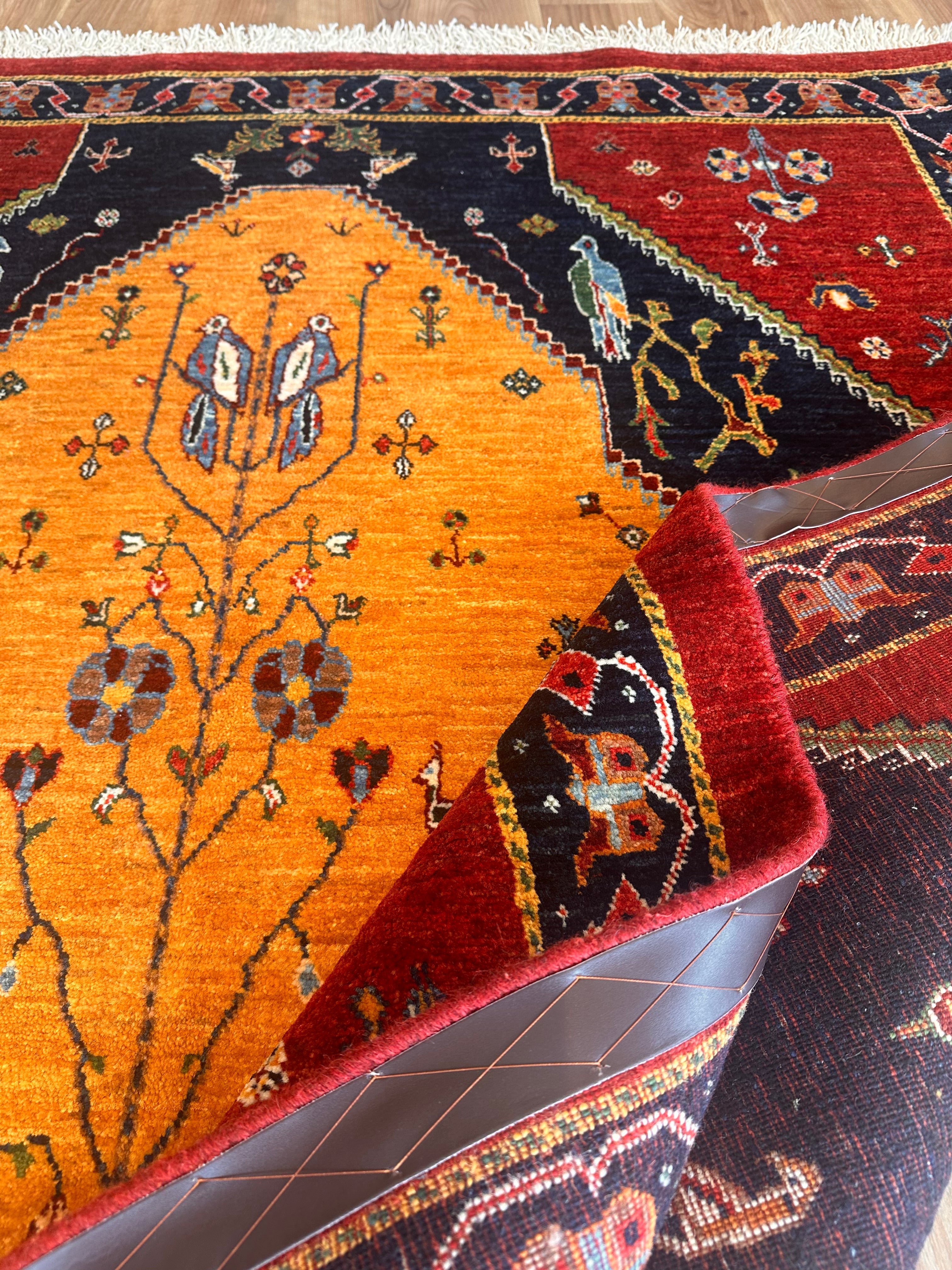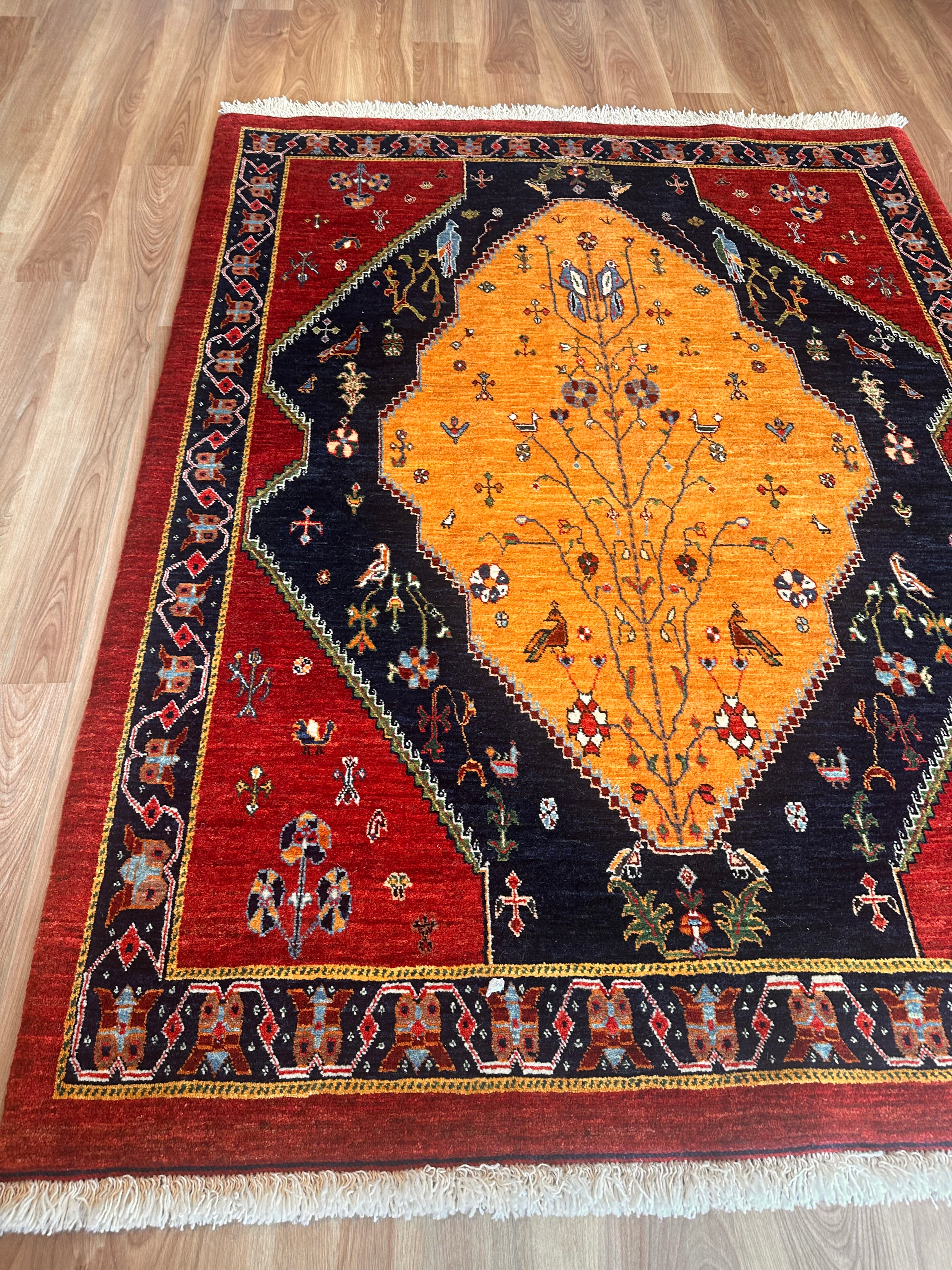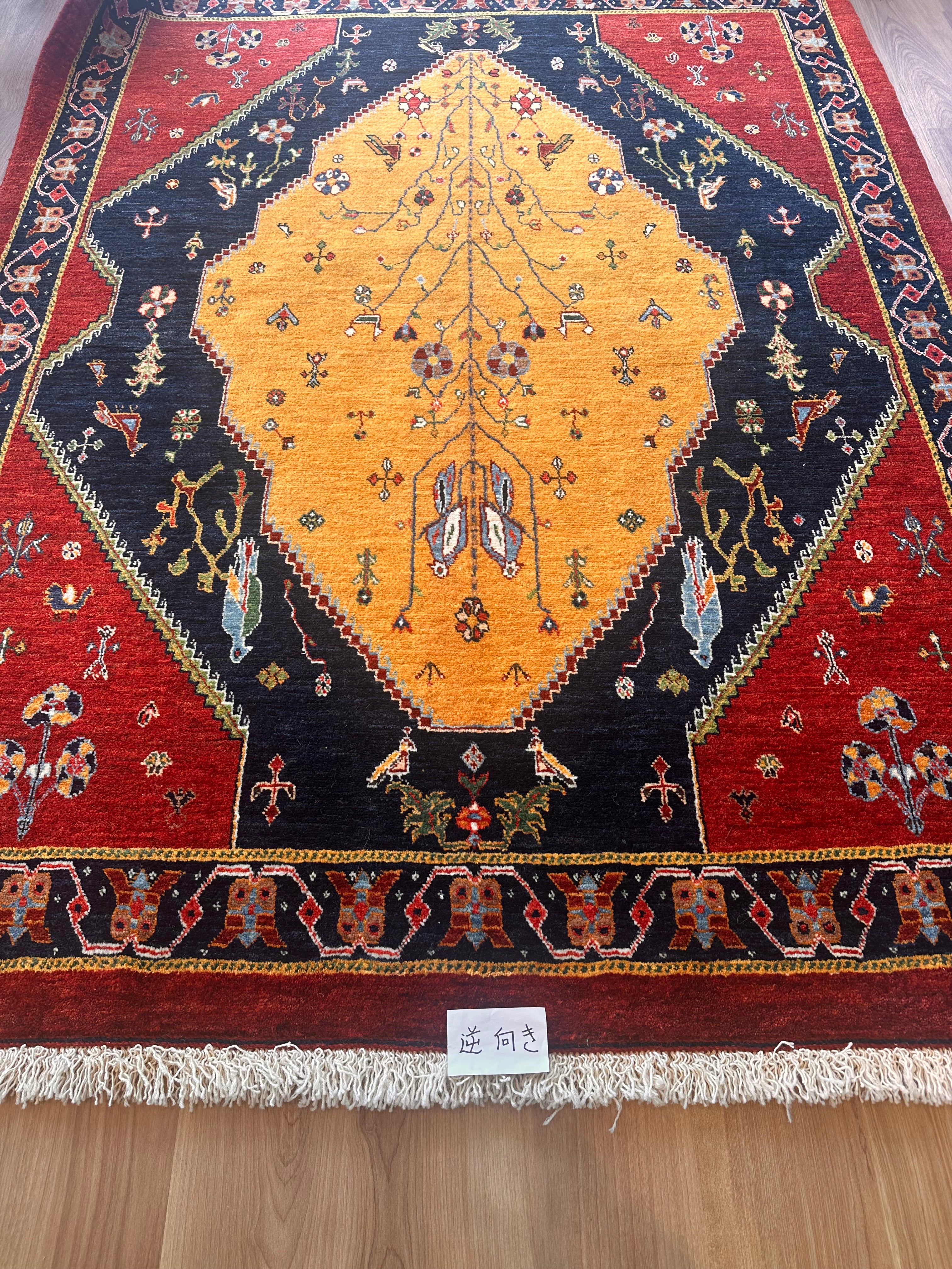 【リビング・ダイニング☆送料無料☆返品保証】(living dining room size)ペルシャ王国(現在のイラン)の遊牧民により手織りで織り上げられるギャッベ カシュガイ族という部族の女性の織り子さんが家族の幸せや豊さを願い、自然へ感謝し生きる喜び気持ちを込めてひと目ひと目、織り上げていきます