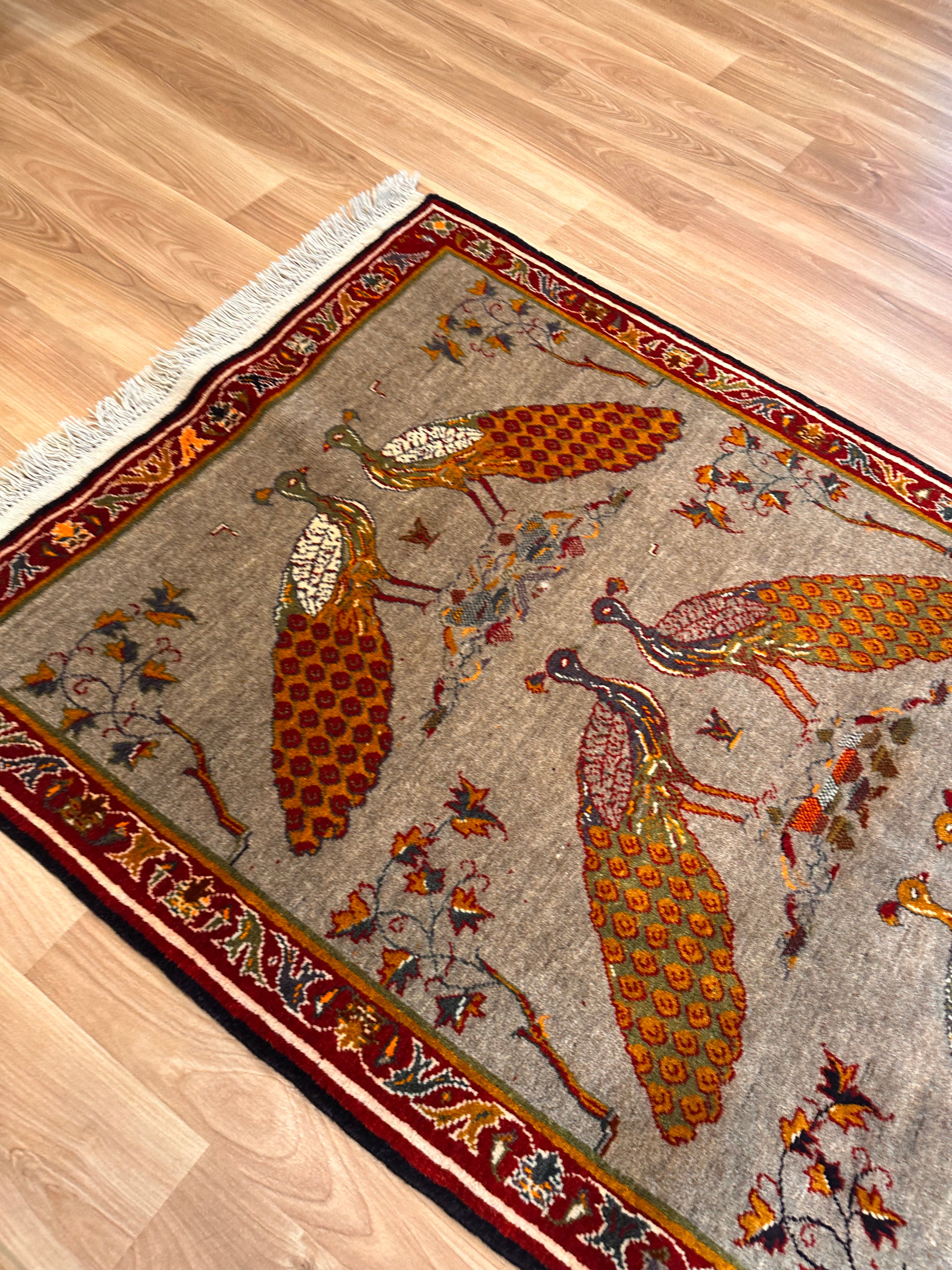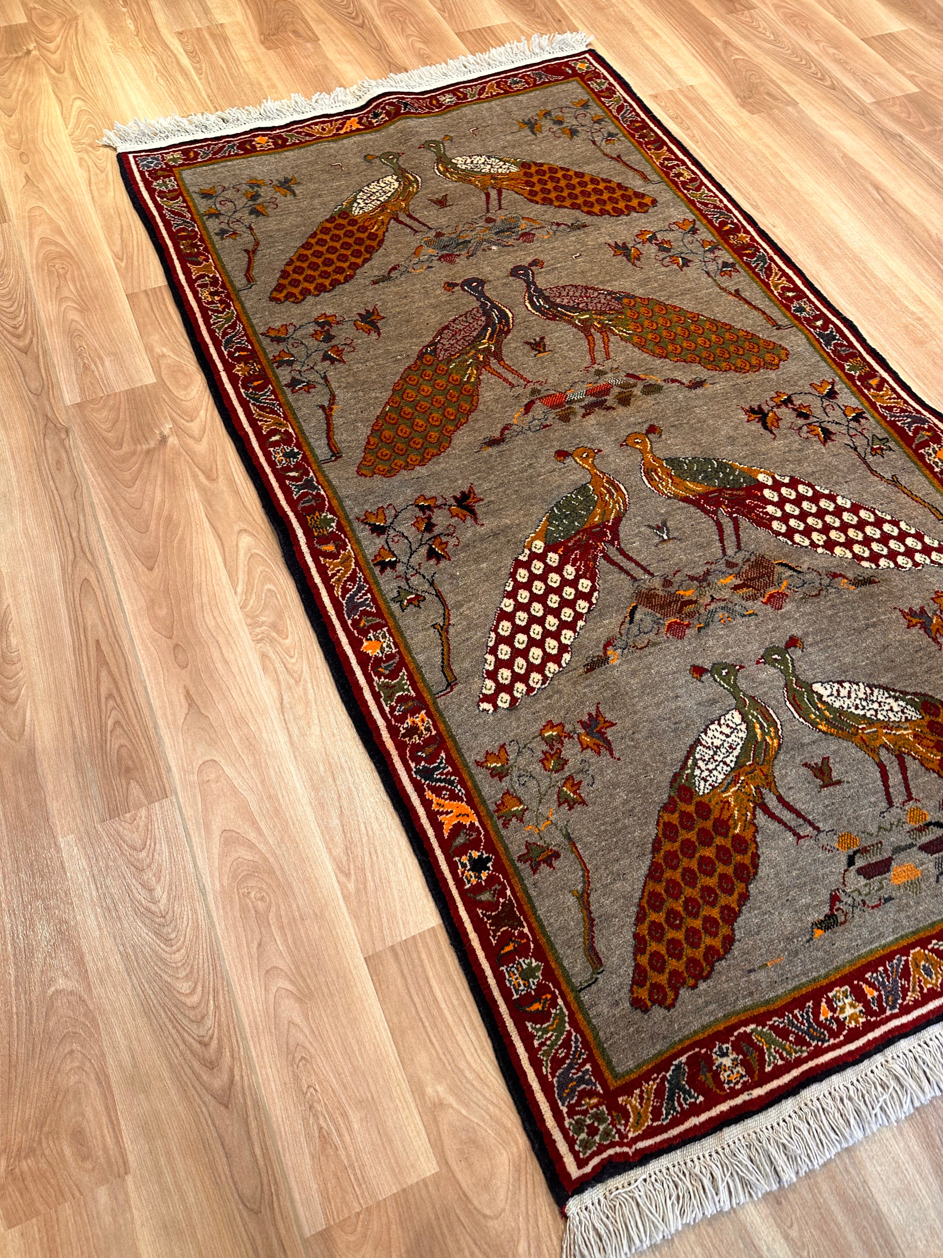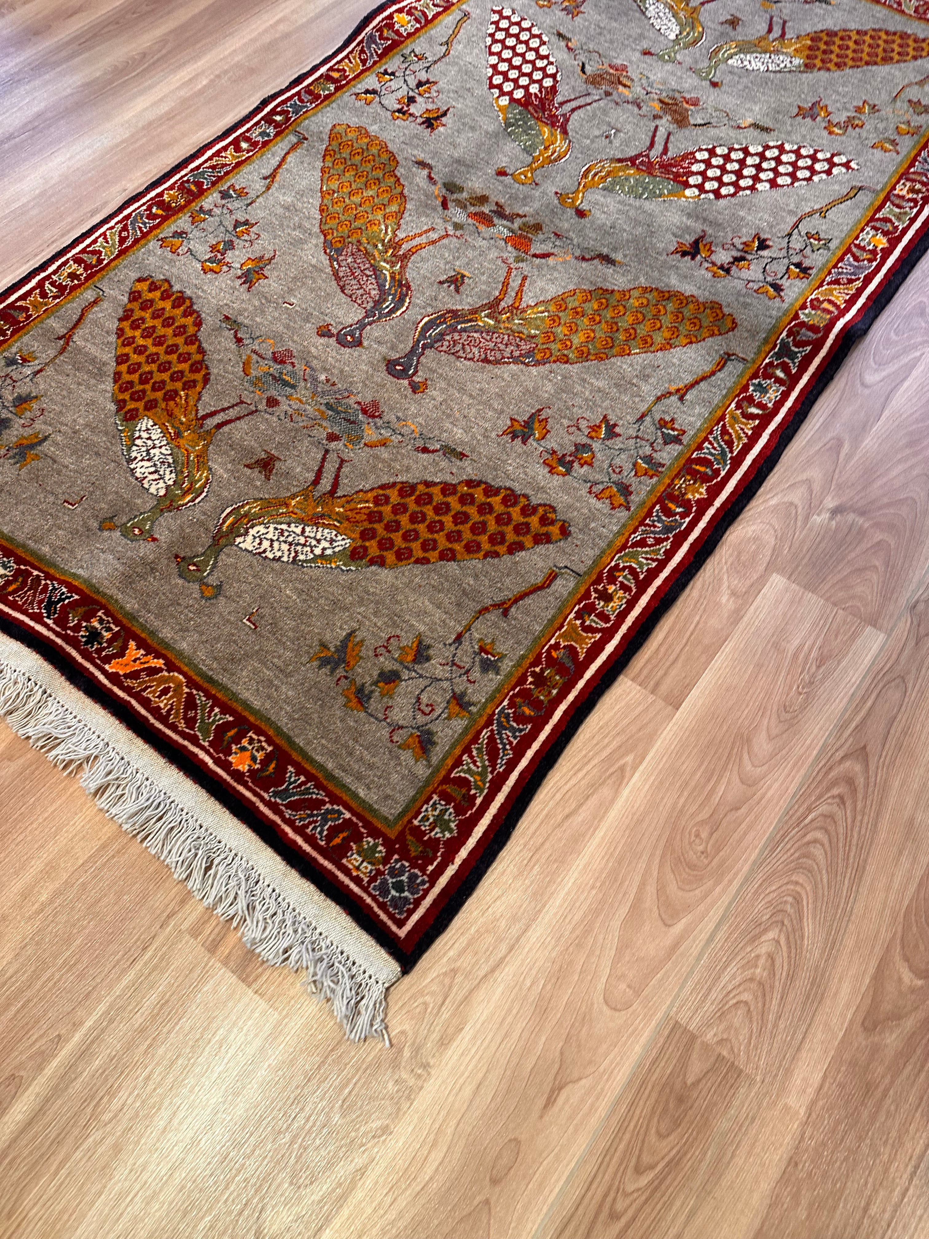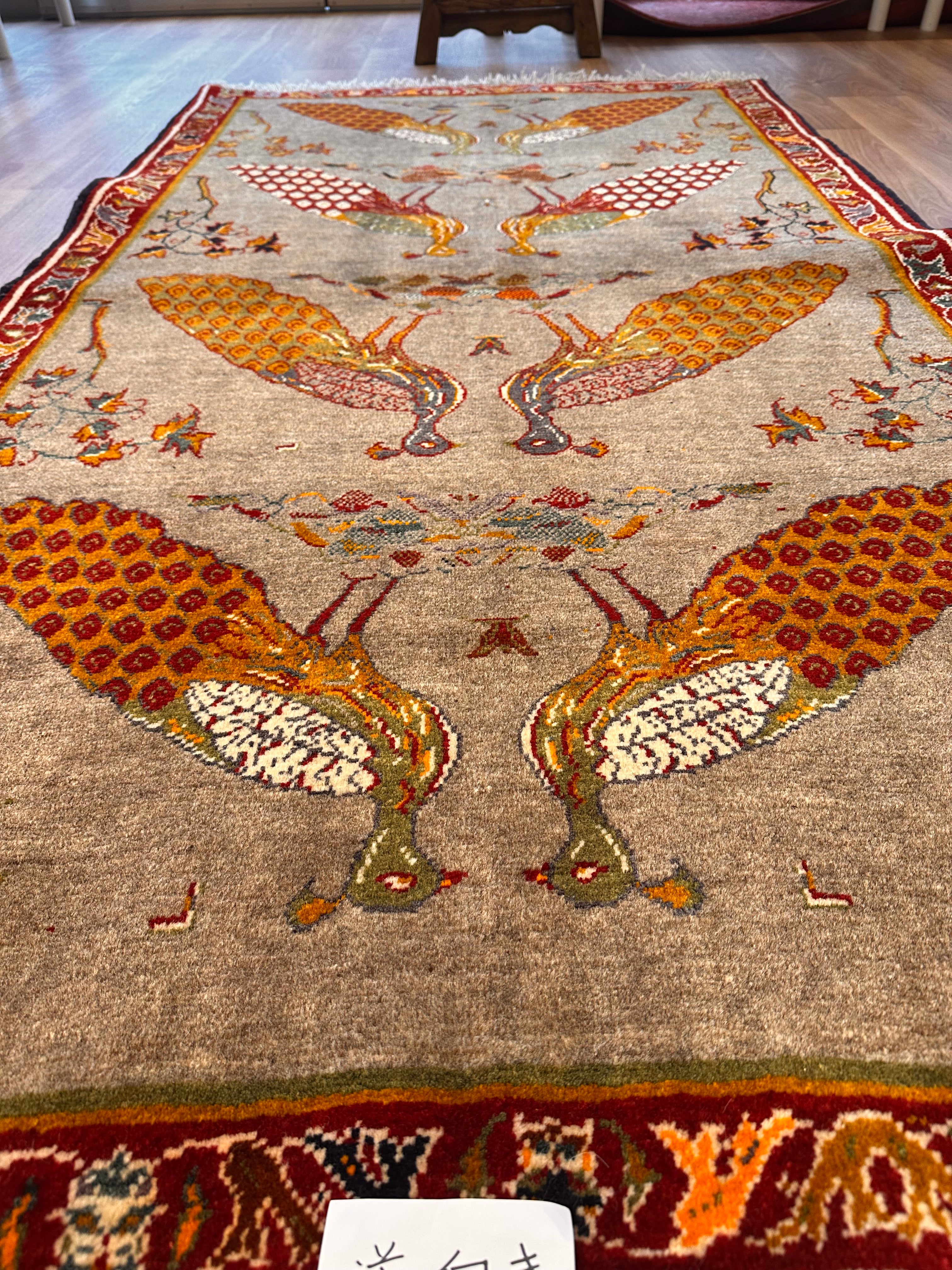 エクセレントギャッベ 201×111cm 手織り 緑 孔雀(GE-0355)