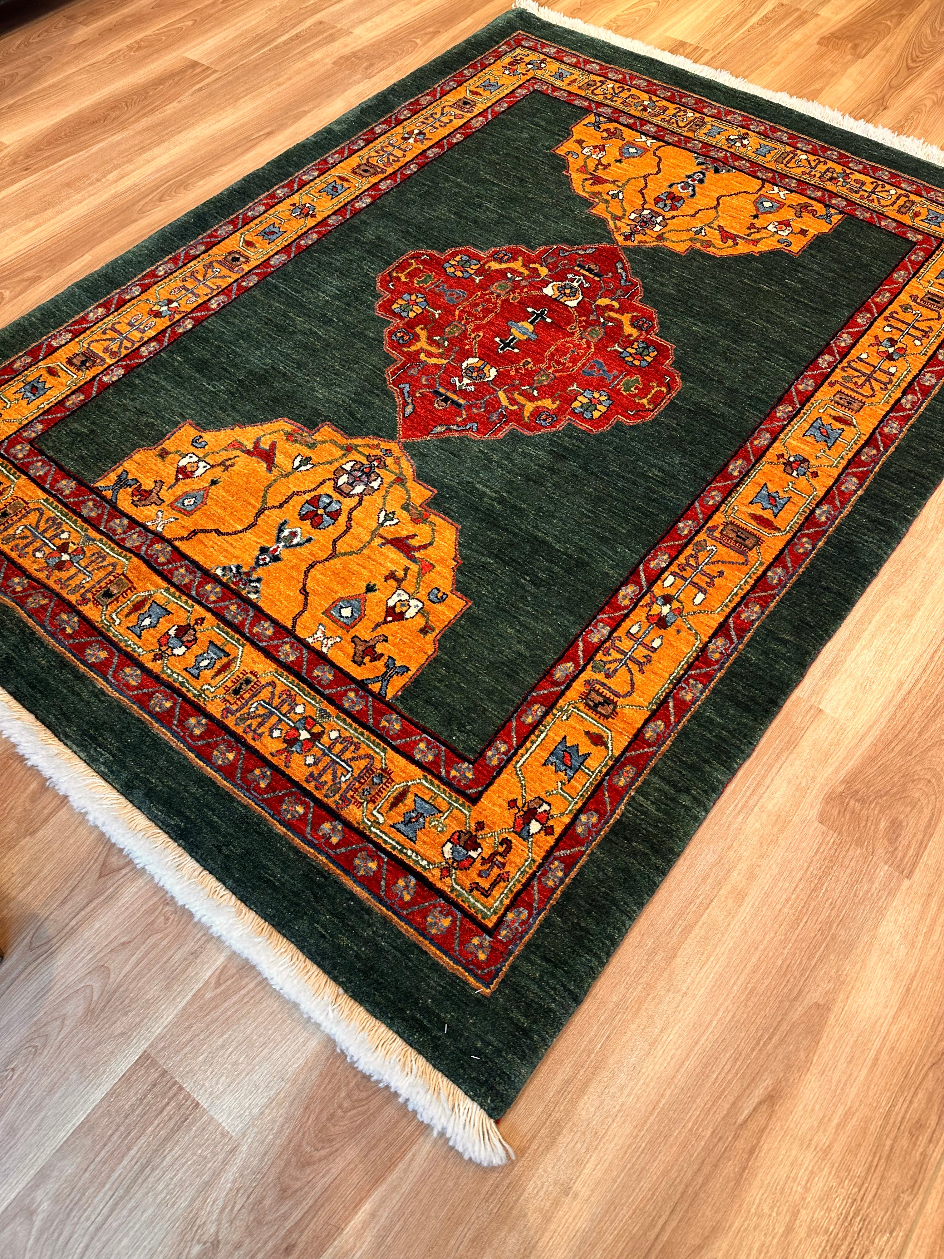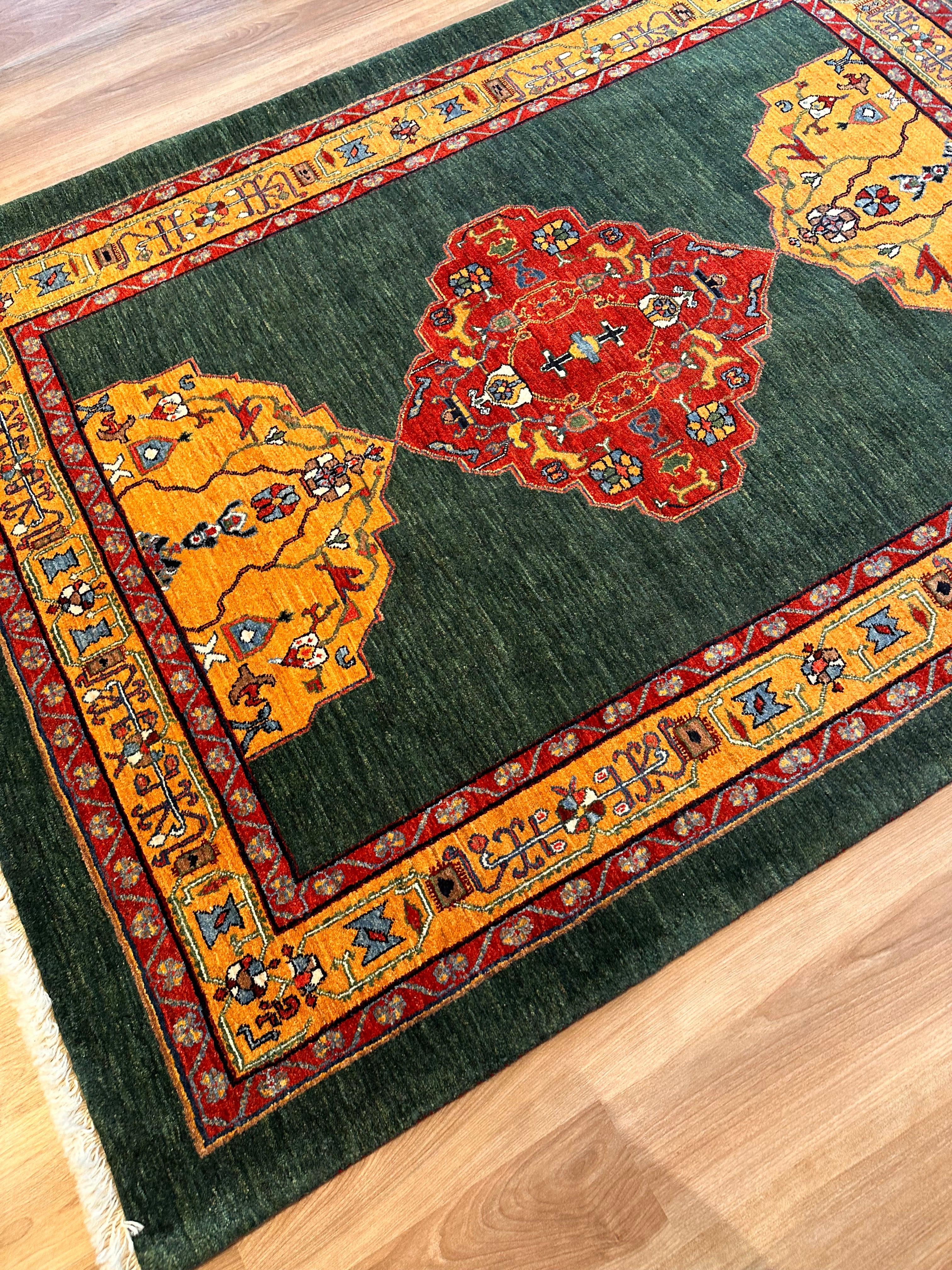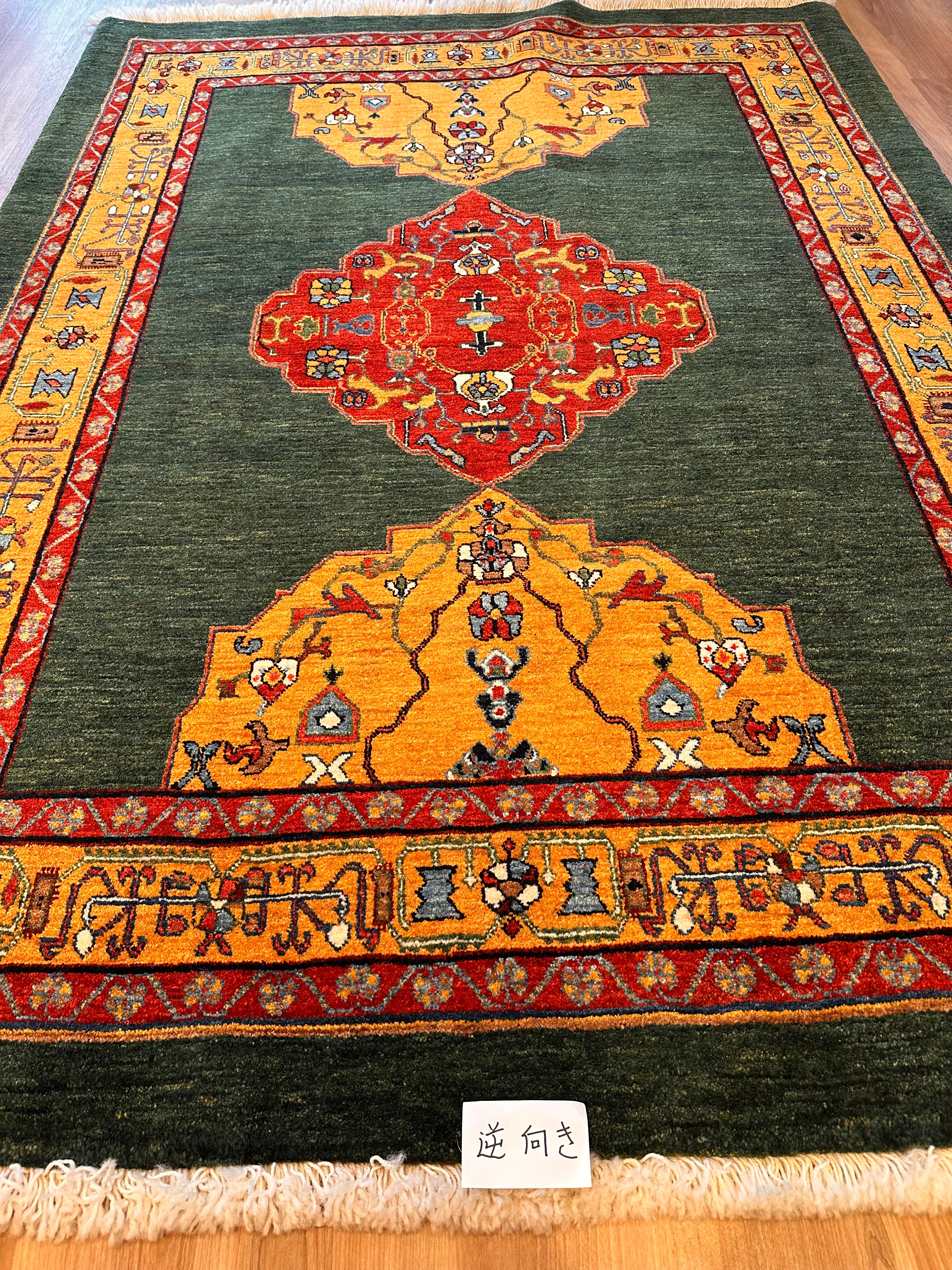 エクセレントギャッベ 203×153cm 手織り 緑(GE-0350)