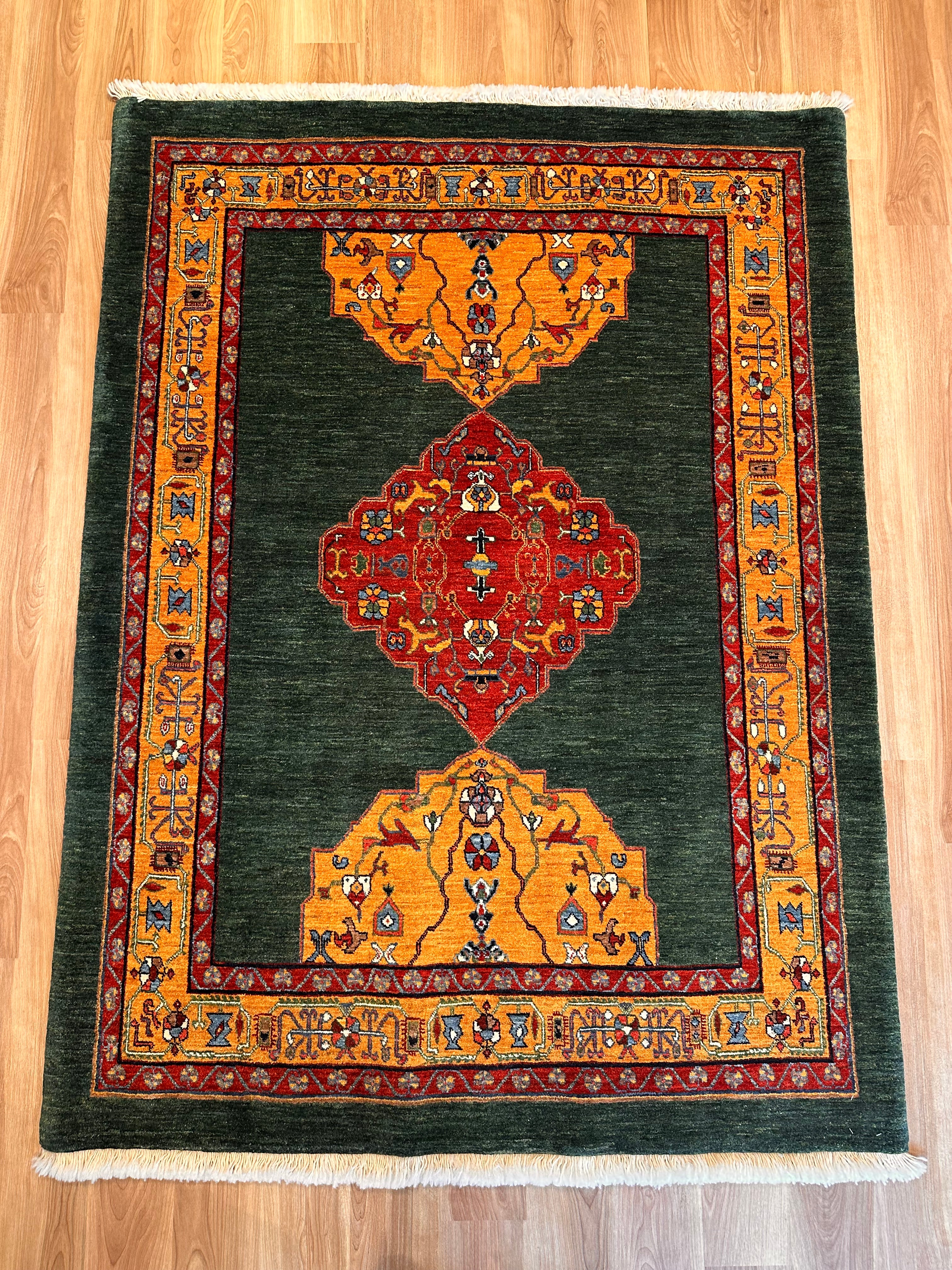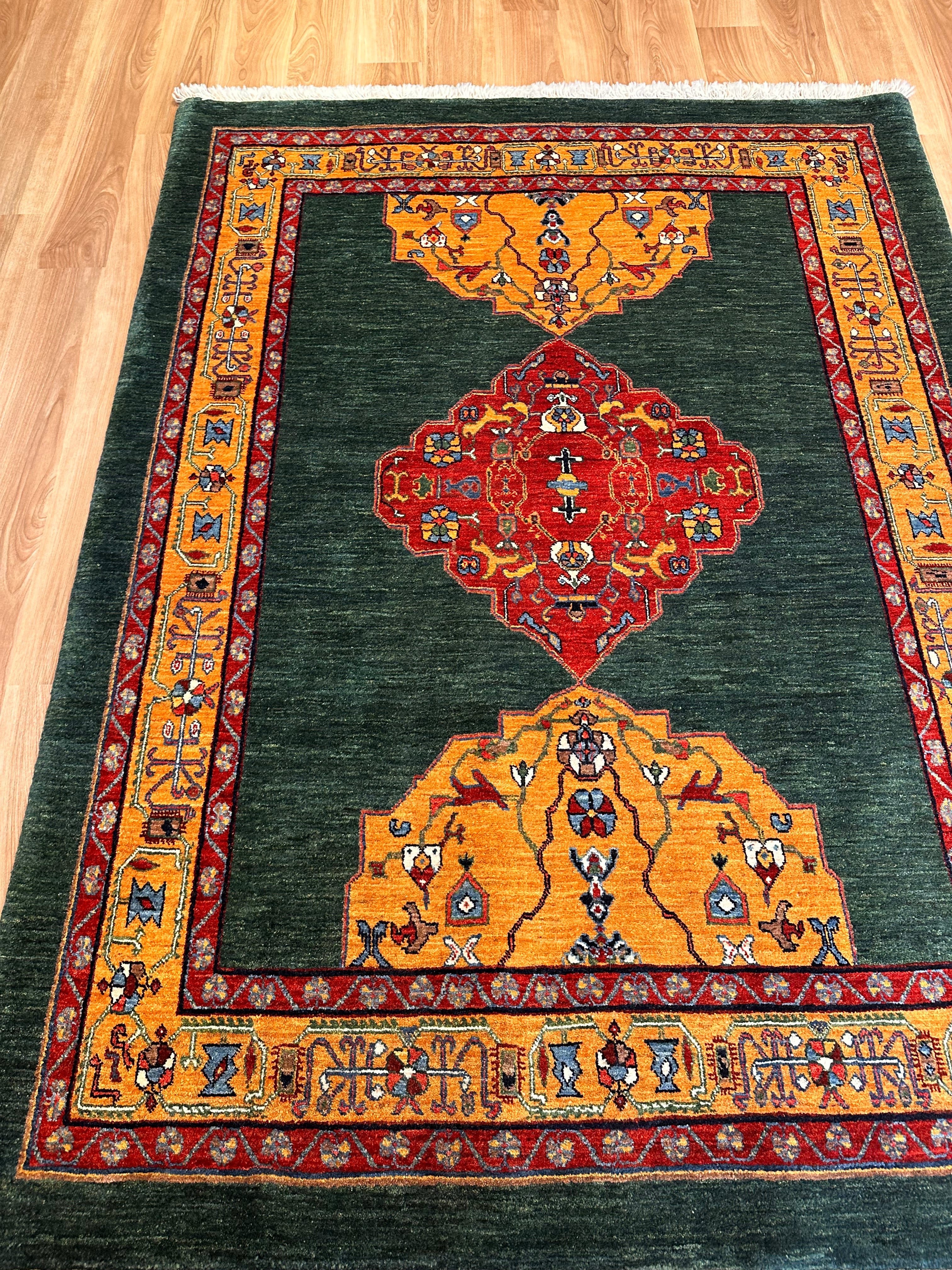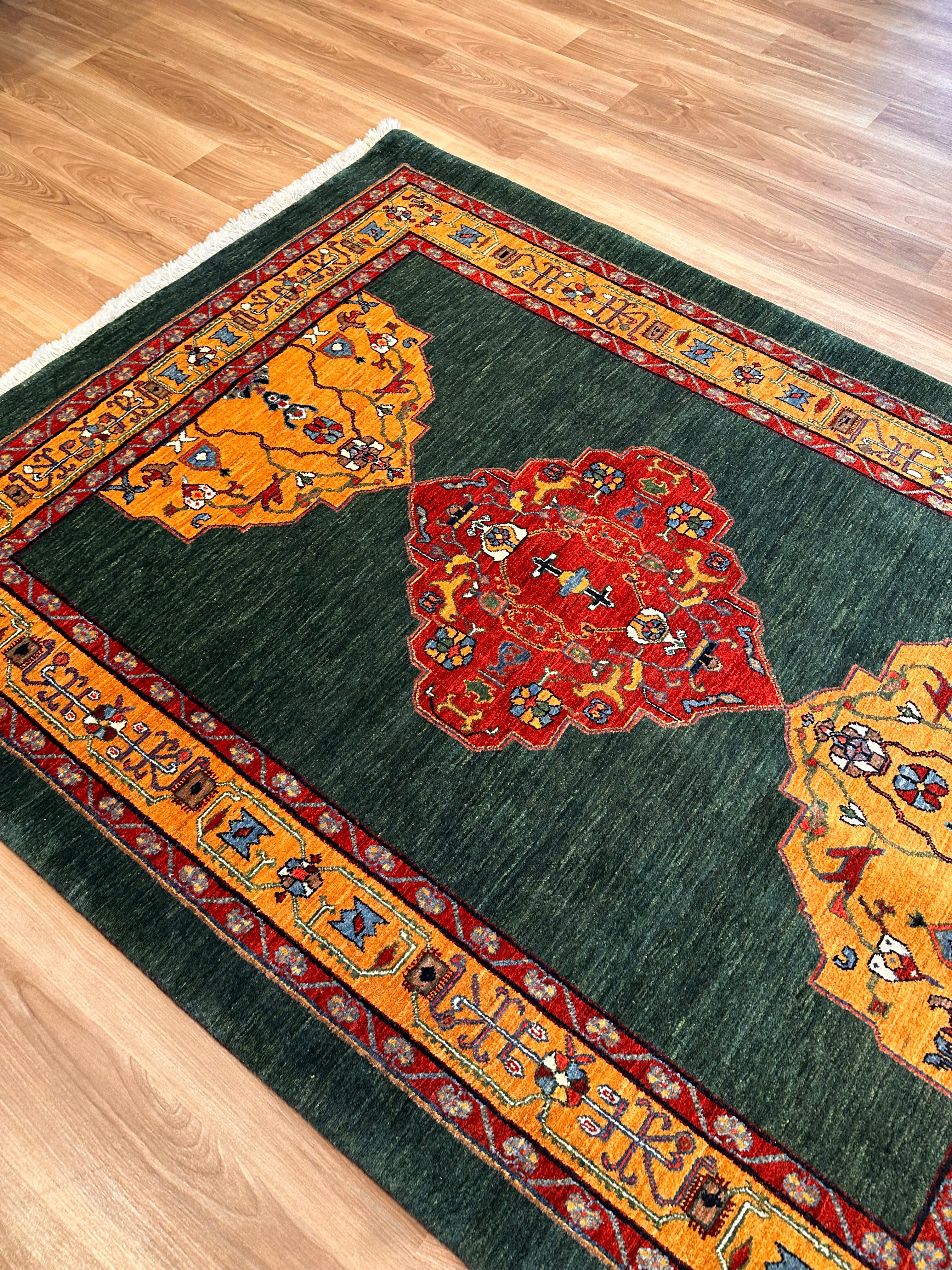 エクセレントギャッベ 203×153cm 手織り 緑(GE-0350)