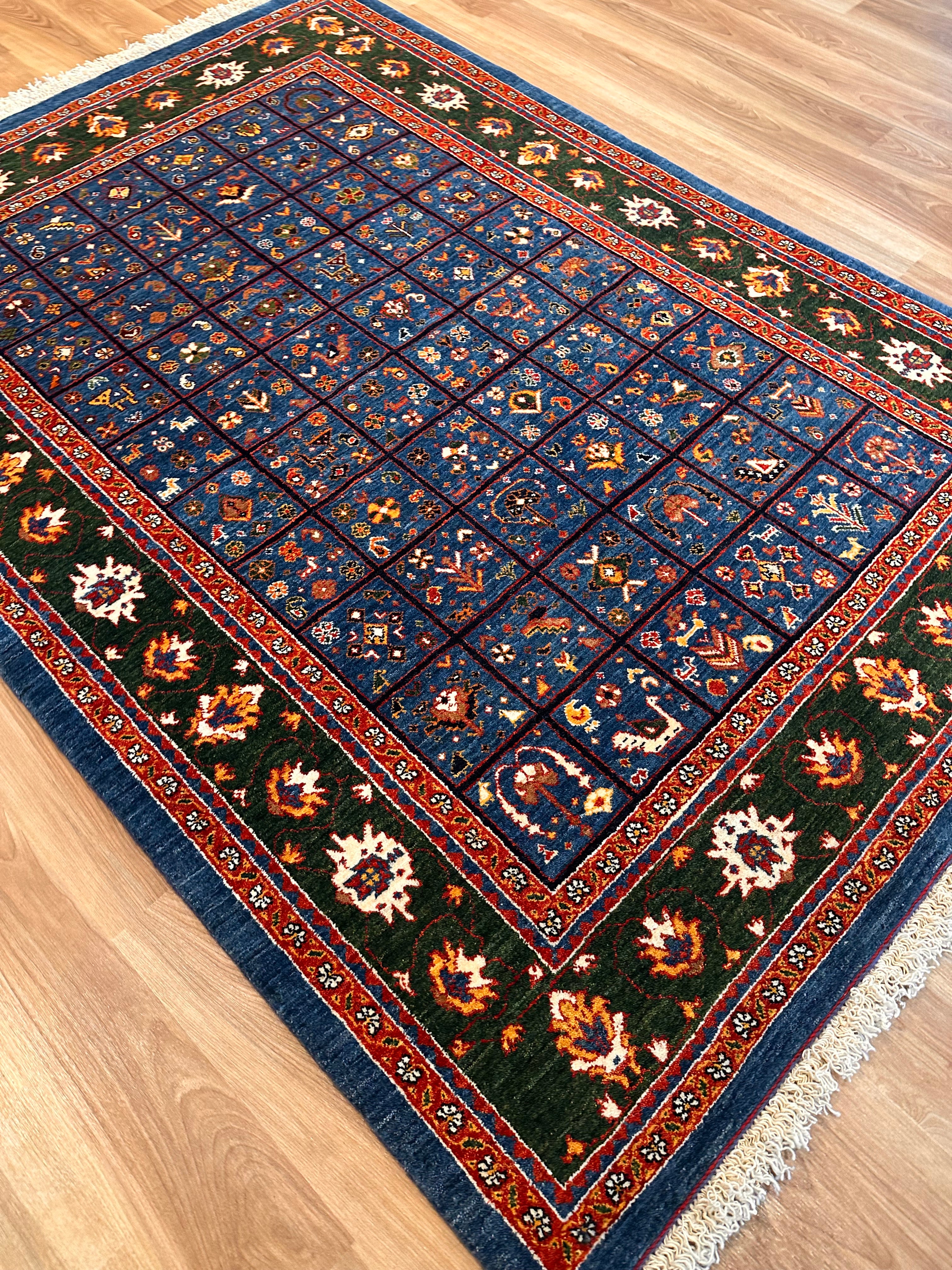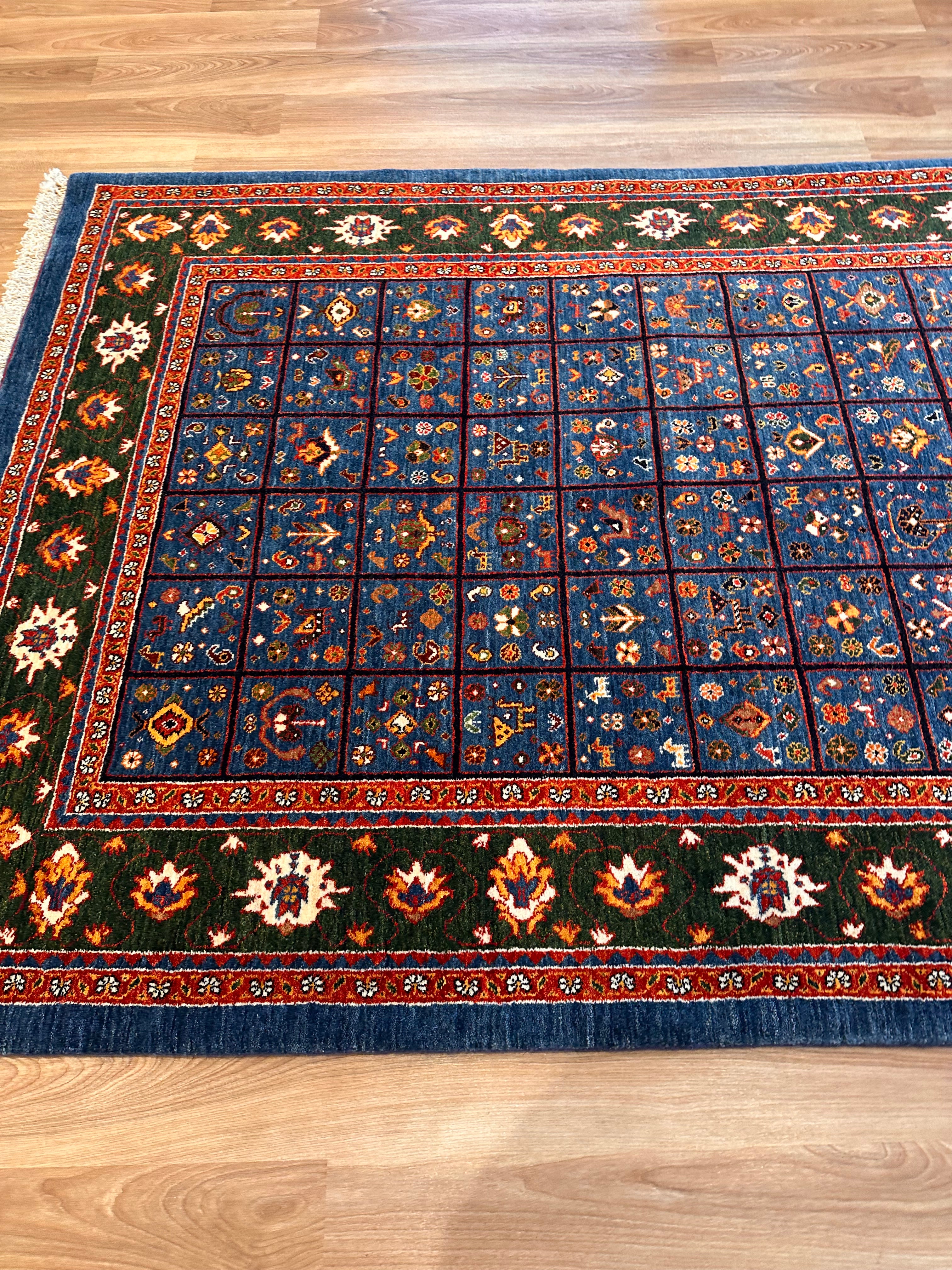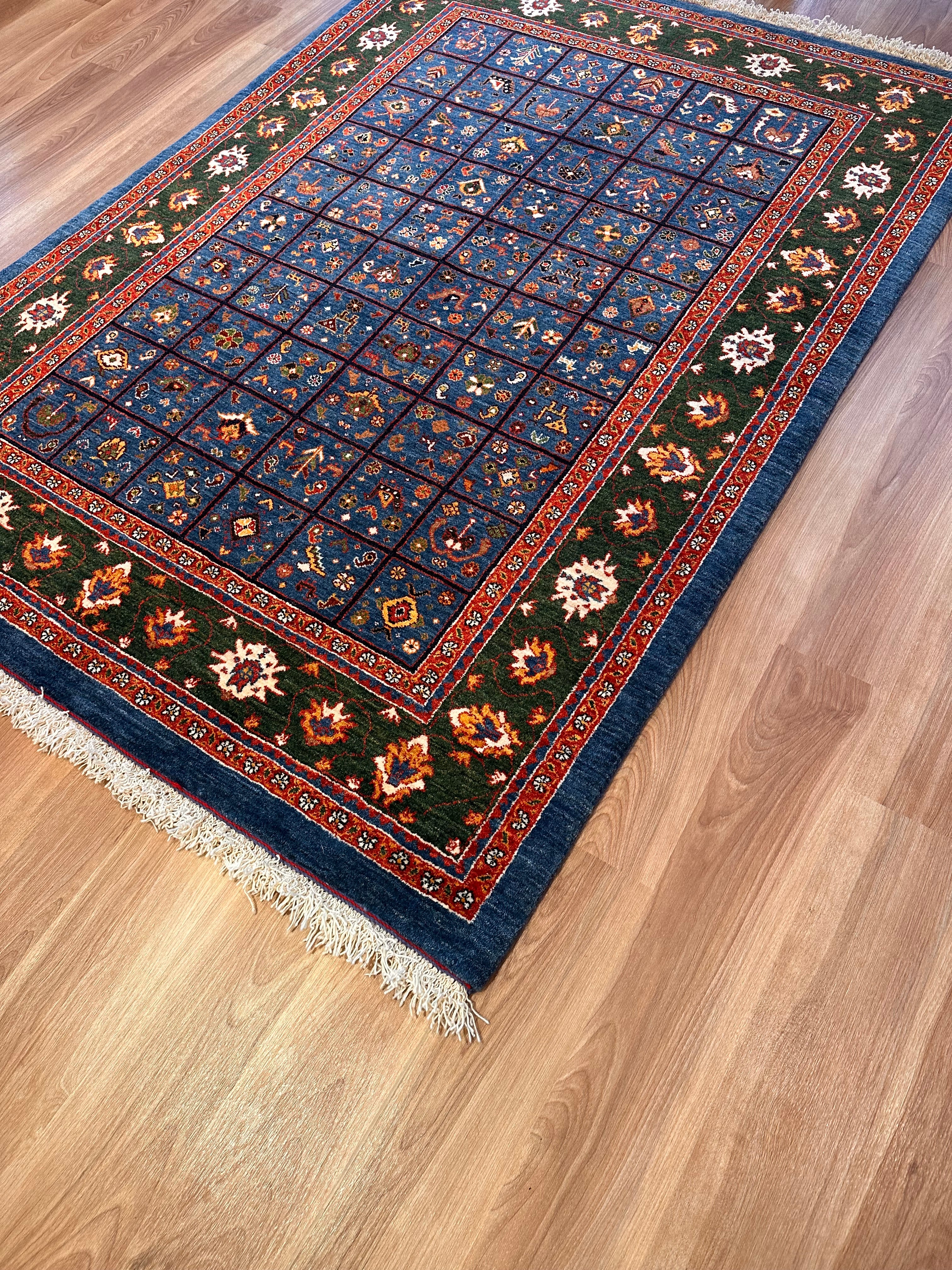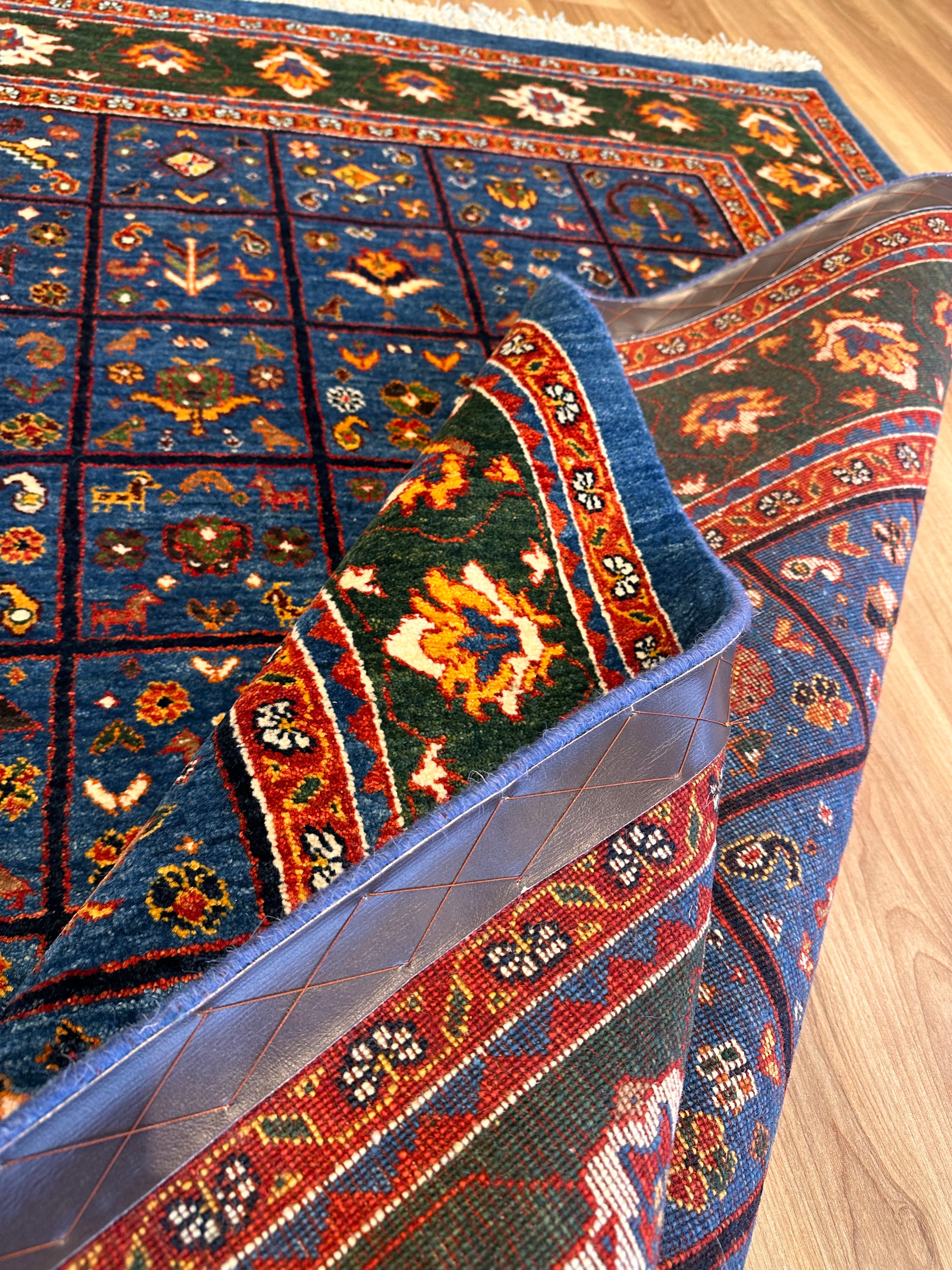 エクセレントギャッベ 206×148cm 手織り 青(GE-0351)