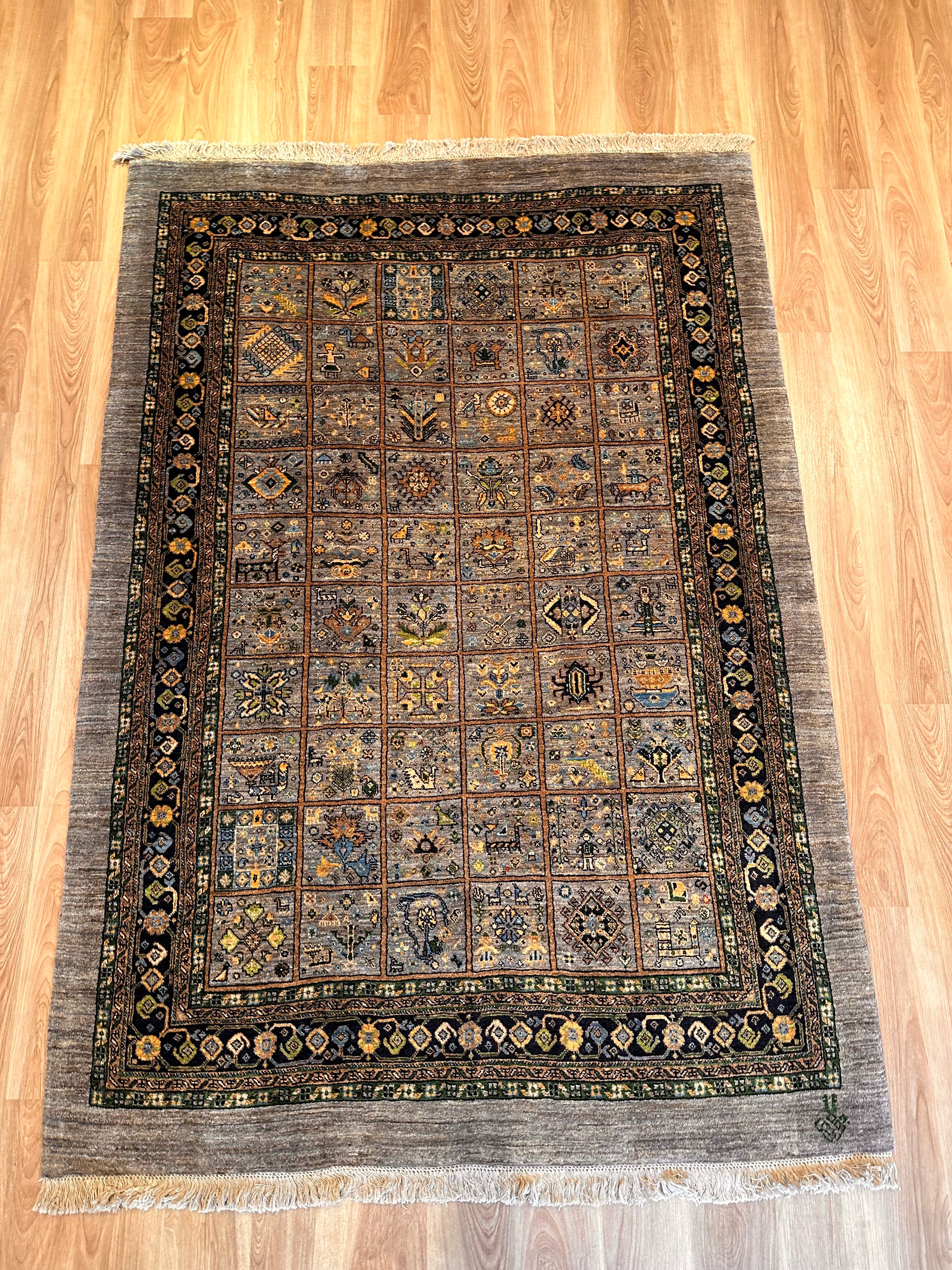 【リビング・ダイニング☆送料無料☆返品保証】(living dining room size)ペルシャ王国(現在のイラン)の遊牧民により手織りで織り上げられるギャッベ カシュガイ族という部族の女性の織り子さんが家族の幸せや豊さを願い、自然へ感謝し生きる喜び気持ちを込めてひと目ひと目、織り上げていきます