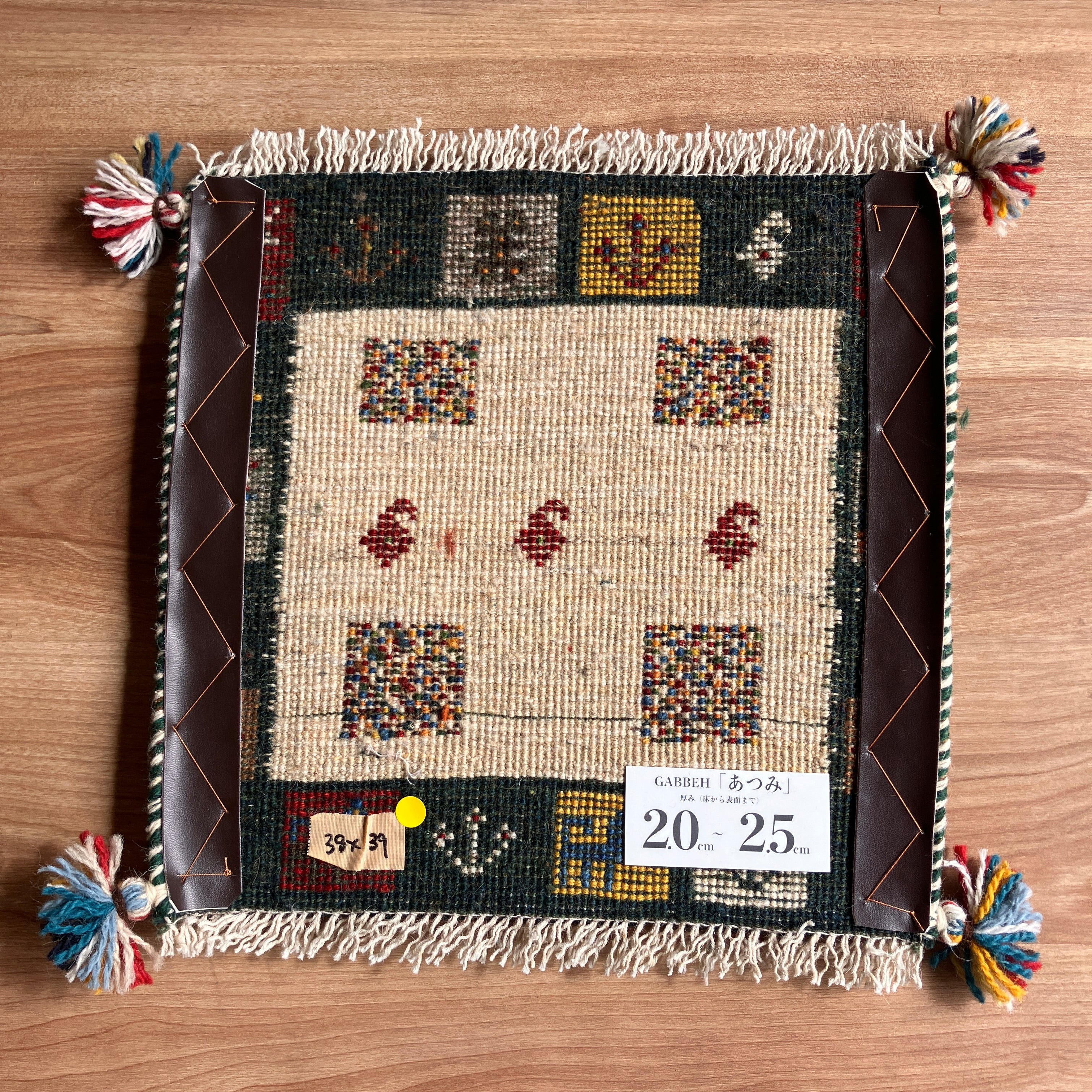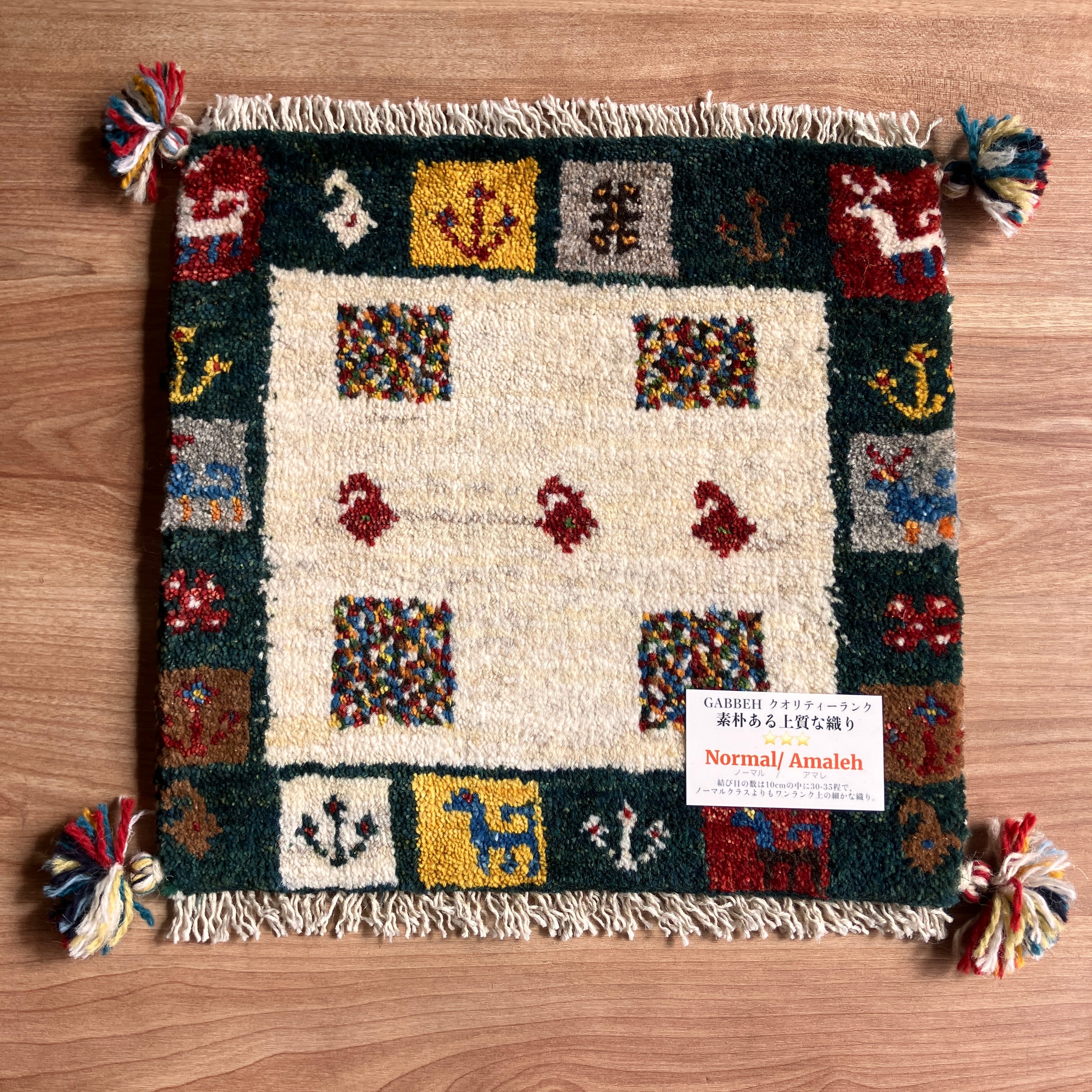ギャッベ 座布団サイズ 38×39cm 手織り生命の樹 鹿 緑(GC-5670)
