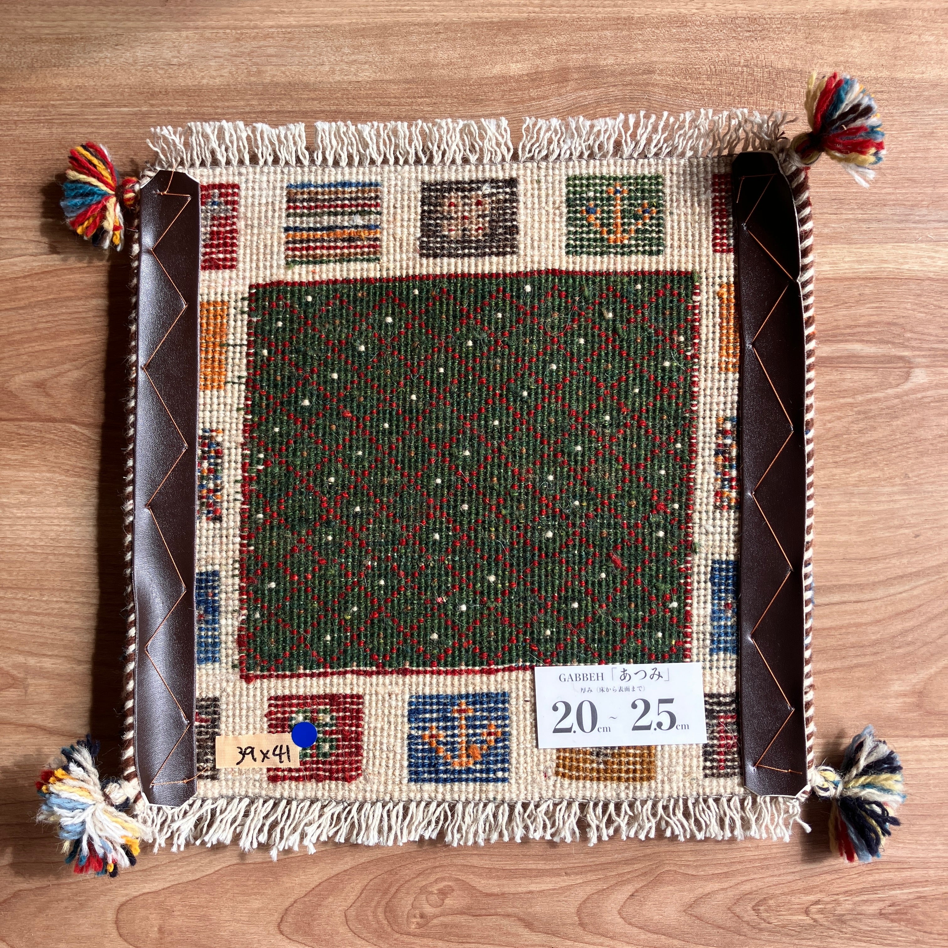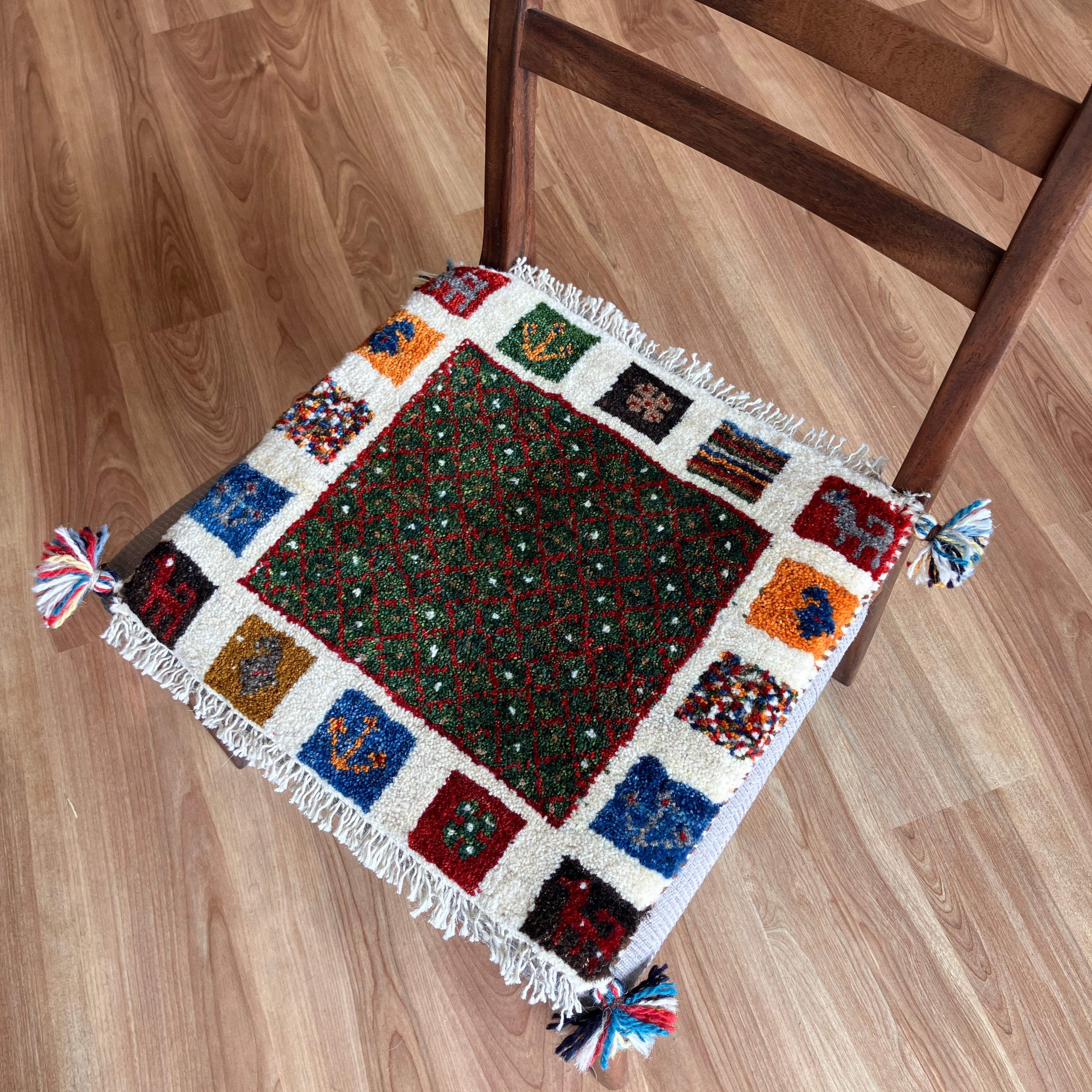 ギャッベ 座布団サイズ 39×41cm 手織り生命の樹 鹿 白(GC-5668)