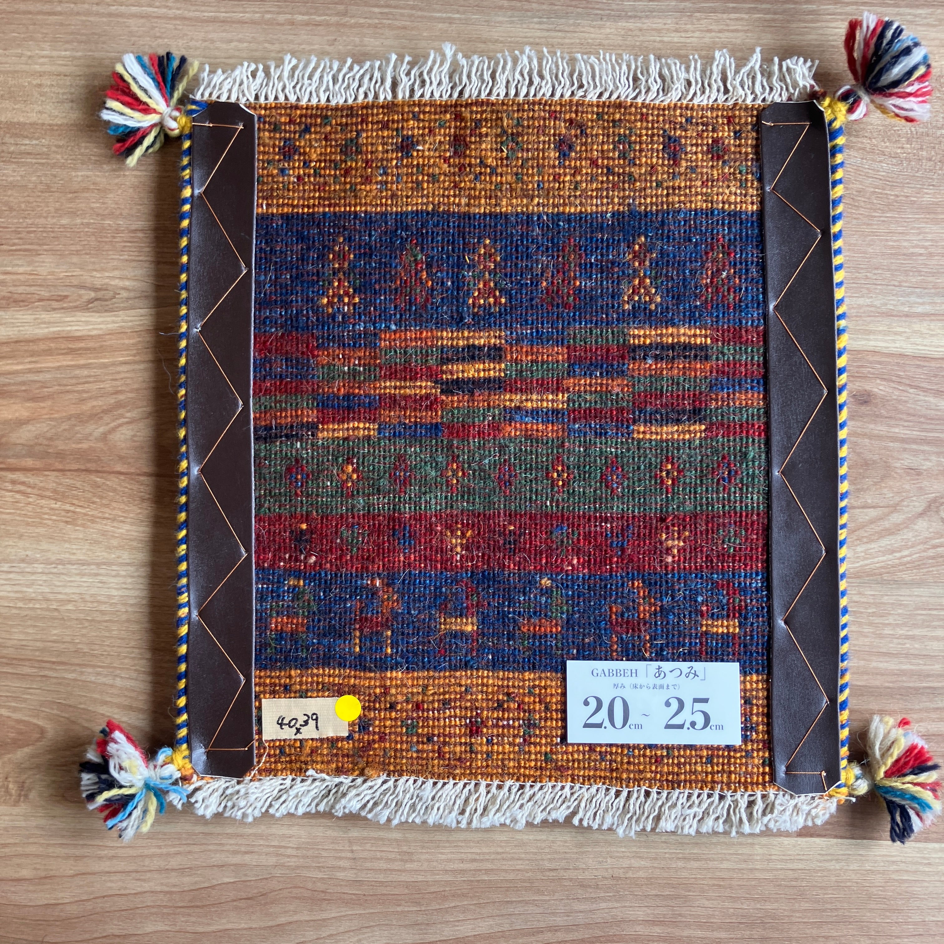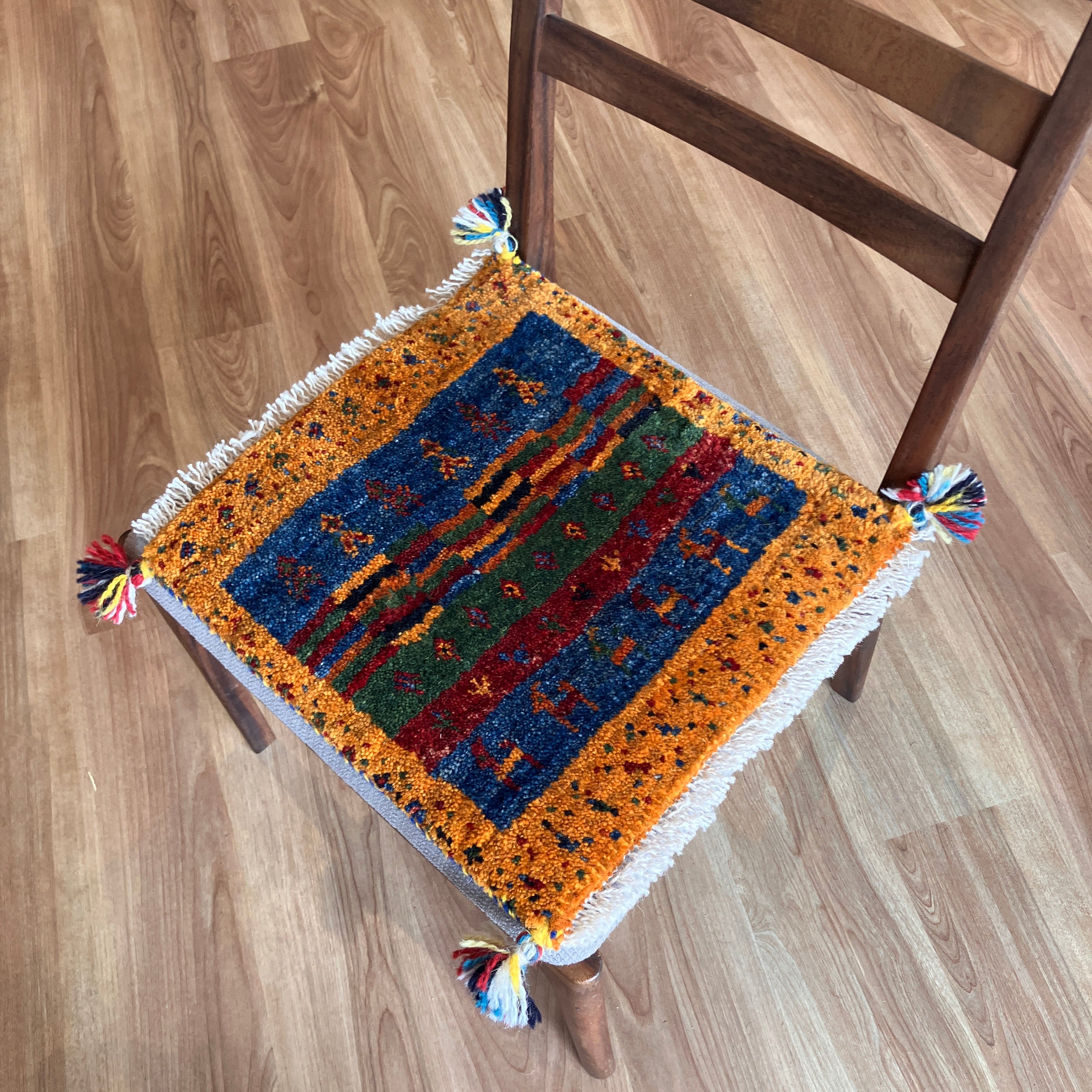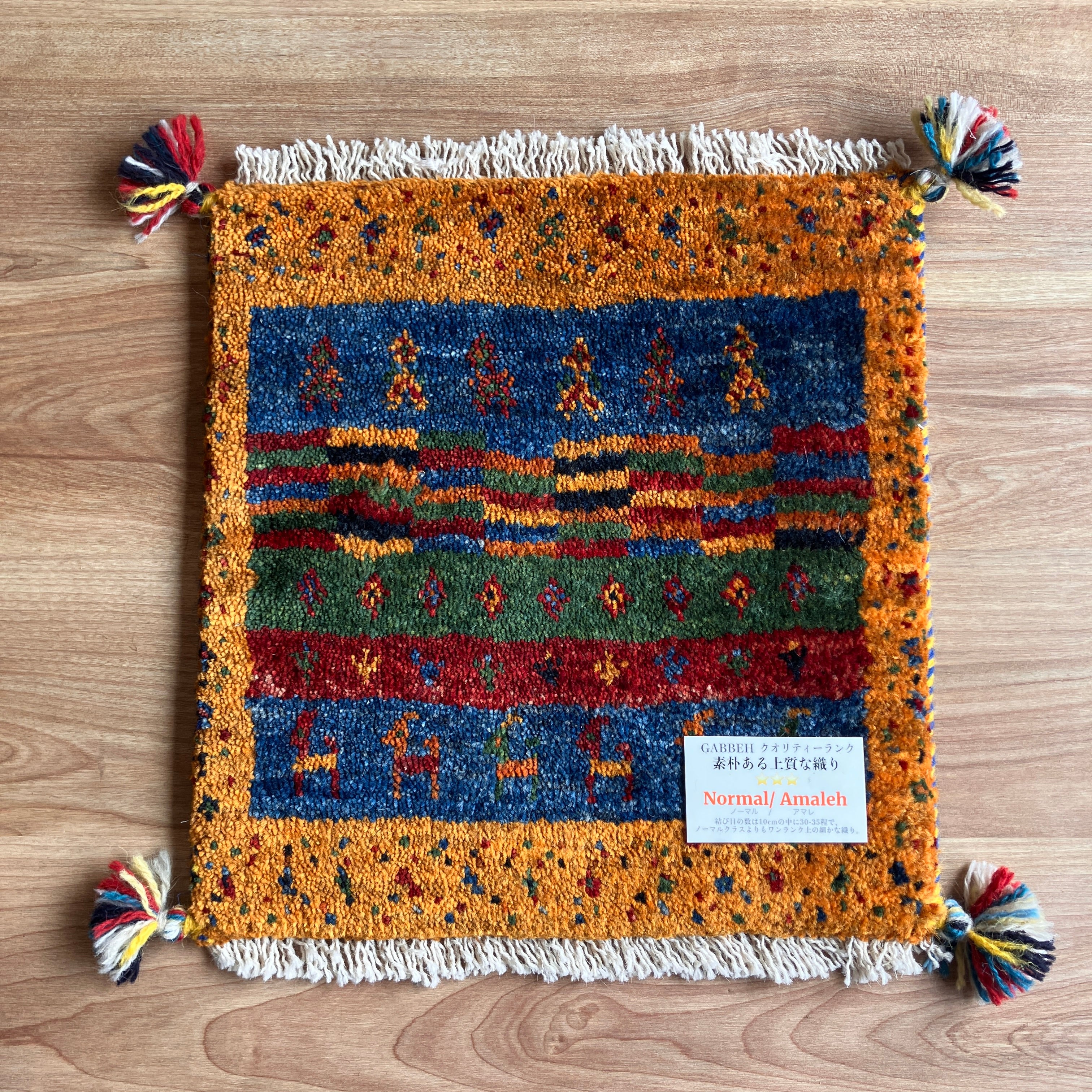 新着ギャッベ 座布団サイズ 40×39cm 手織り生命の樹 鹿 黄色(GC-5676)