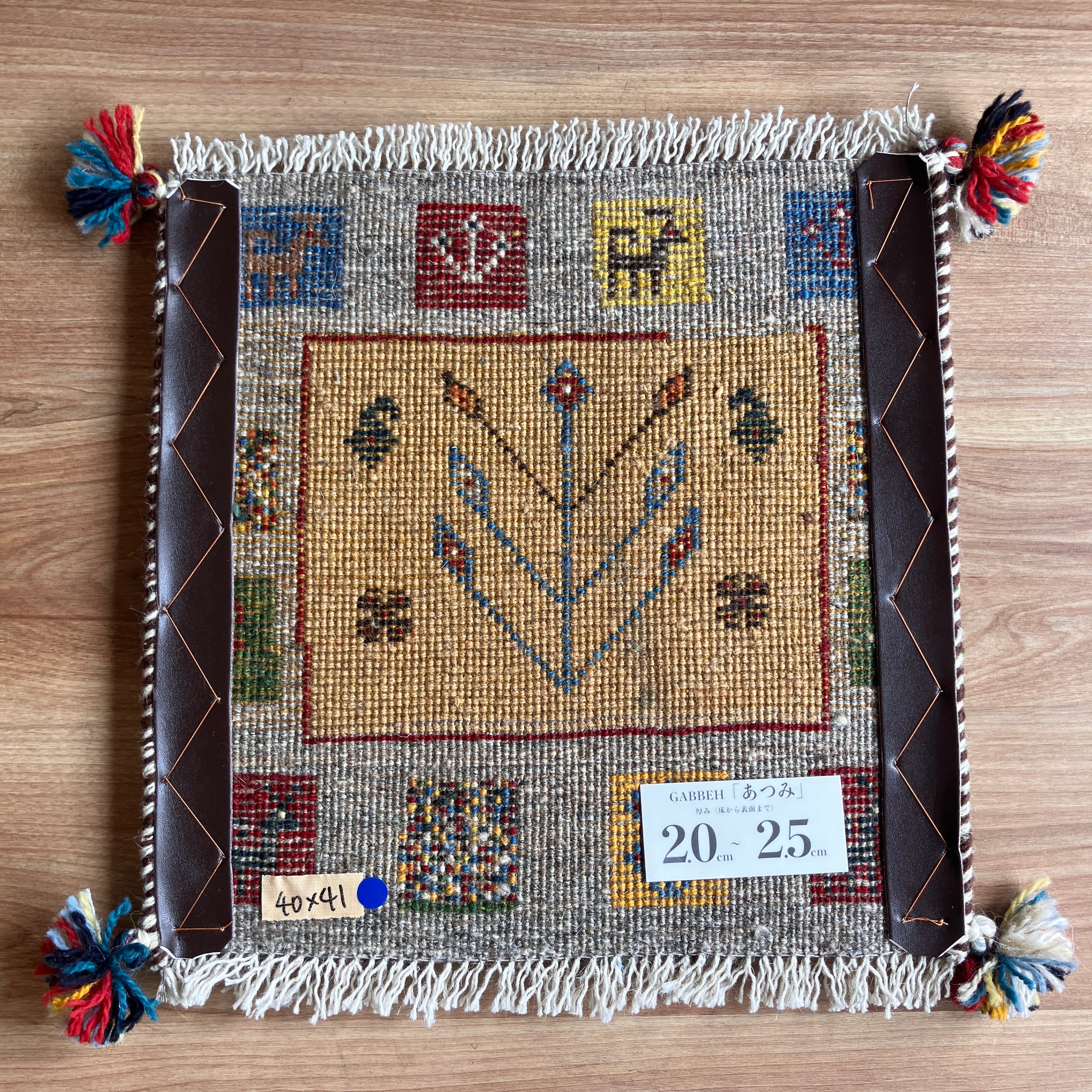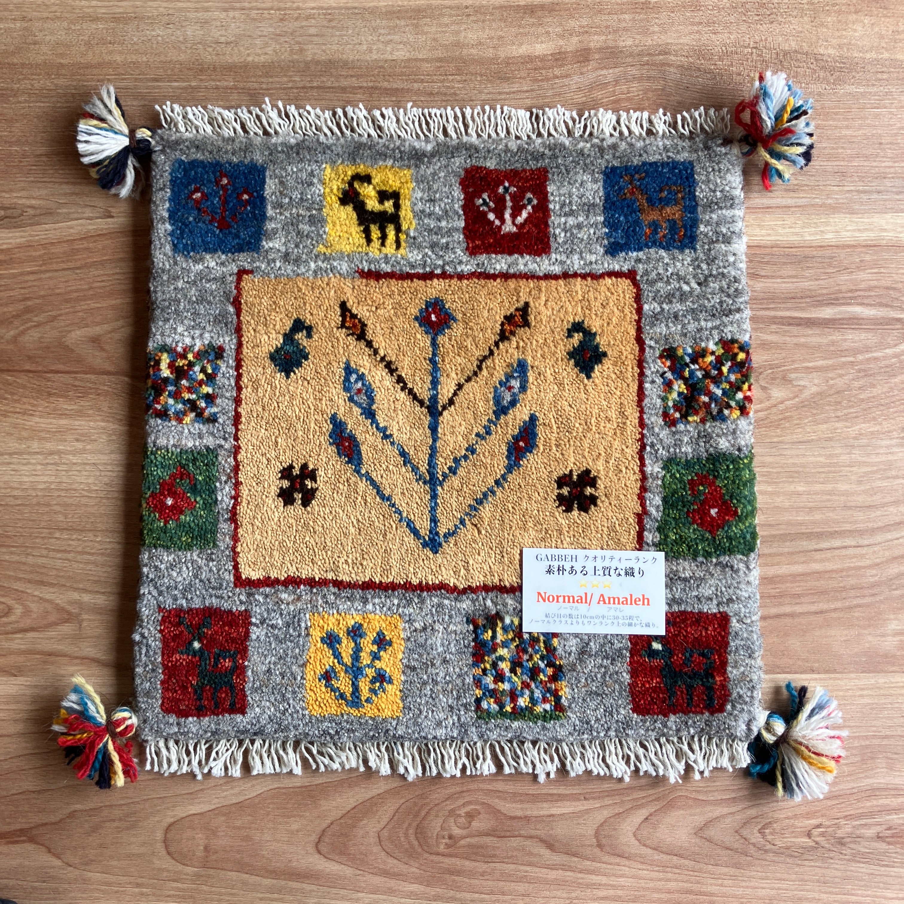 ギャッベ 座布団サイズ 40×39cm 手織り生命の樹 鹿 グレー(GC-5675)