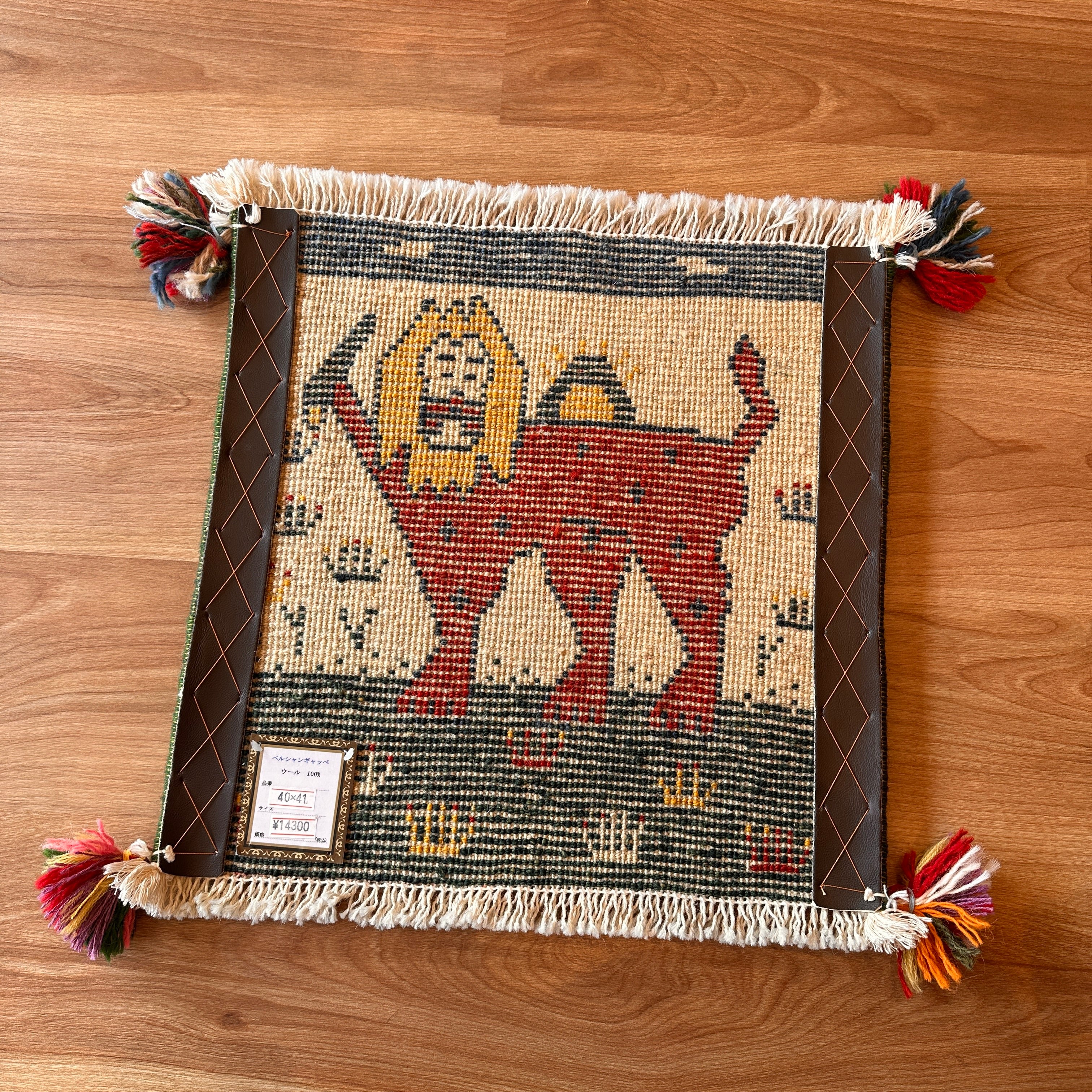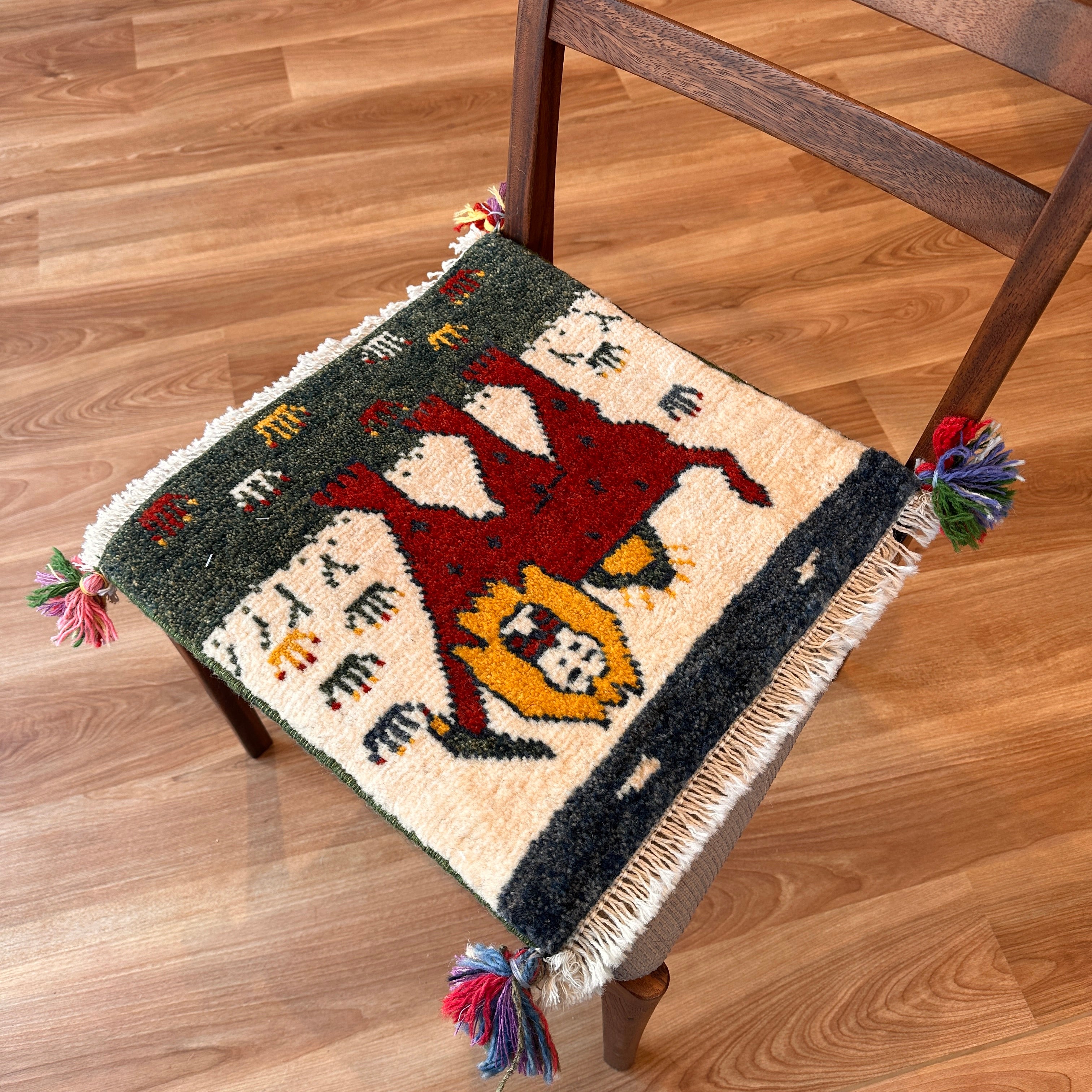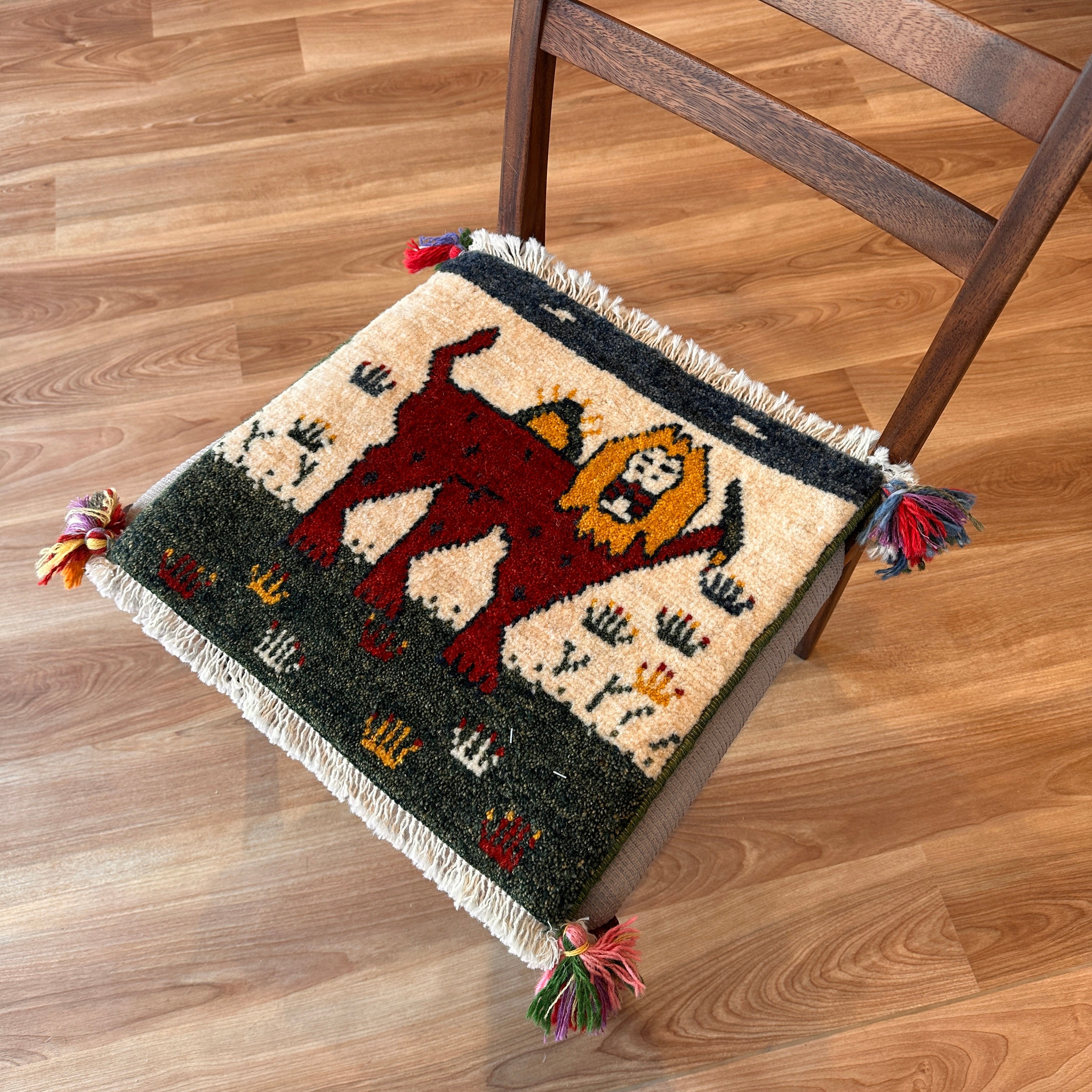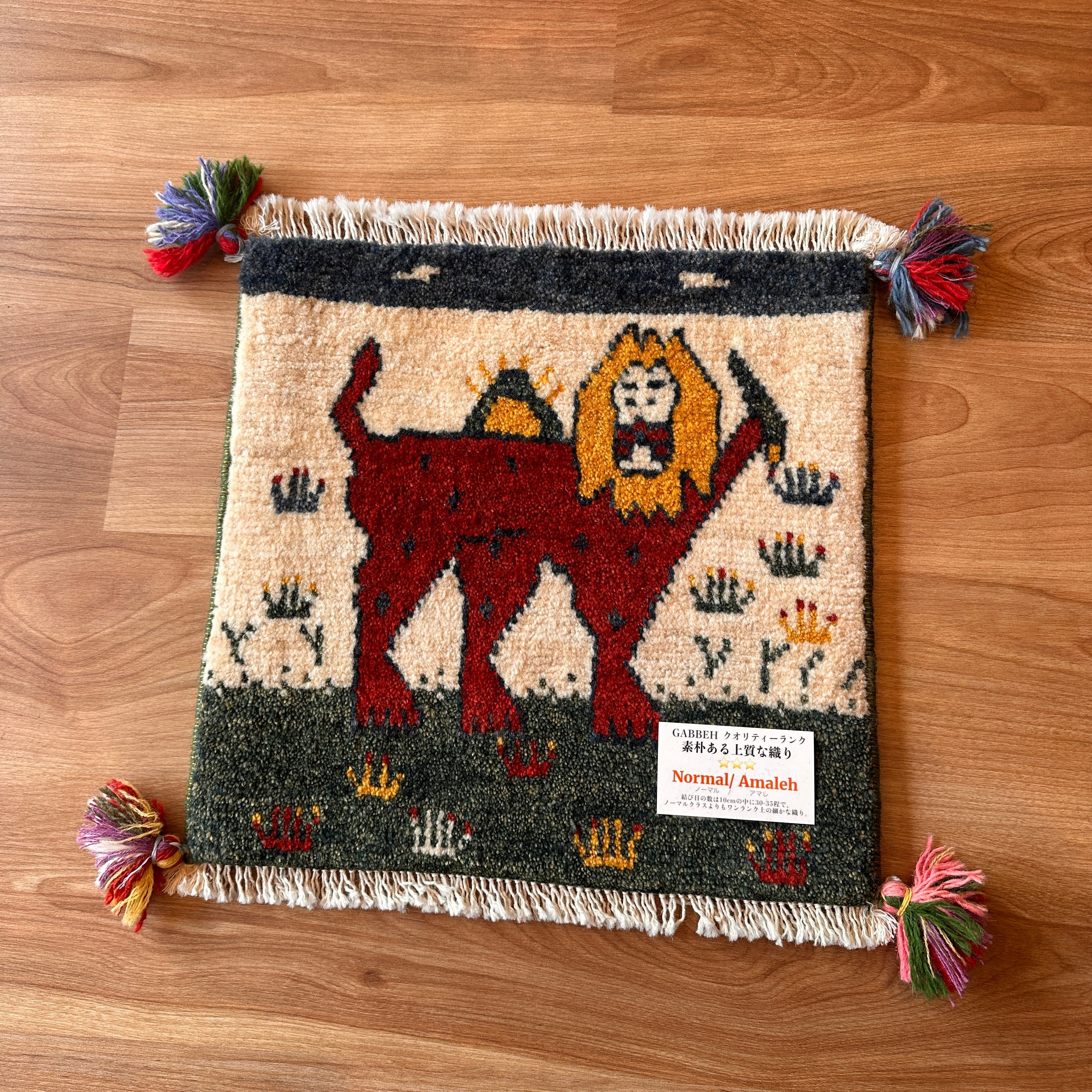 ギャッベ 座布団サイズ 40×41cm 手織り生命の樹 ライオン (GC-5653)
