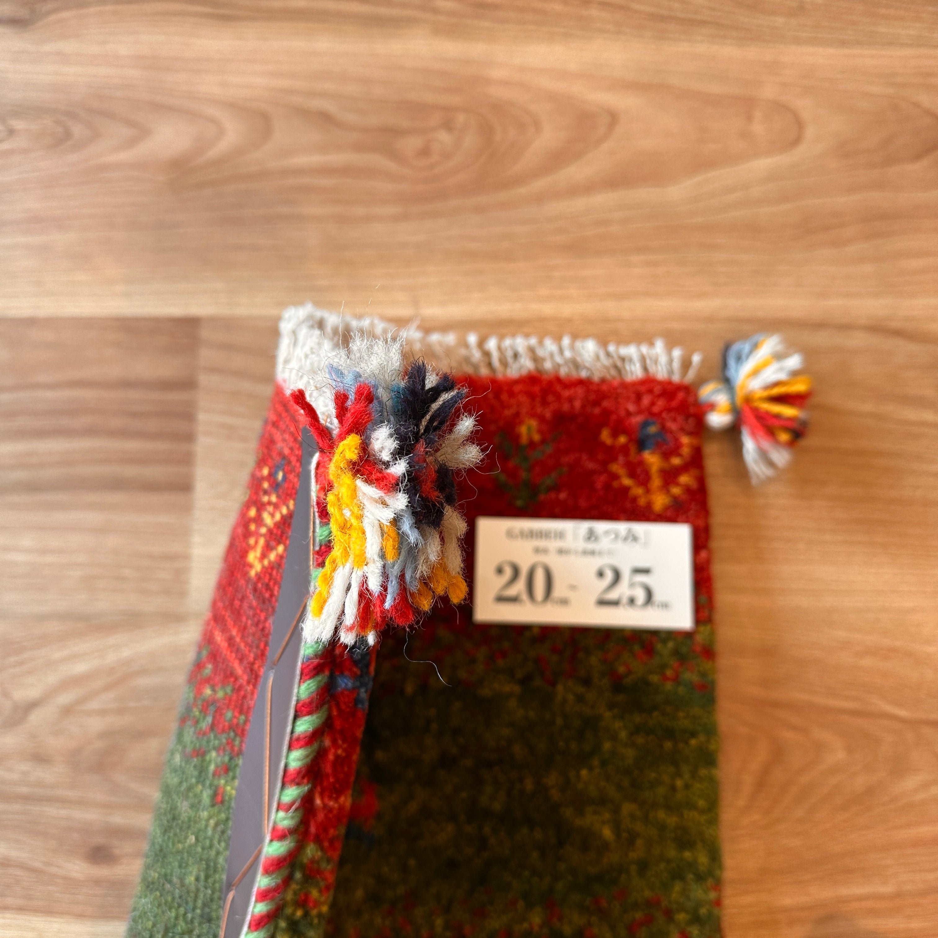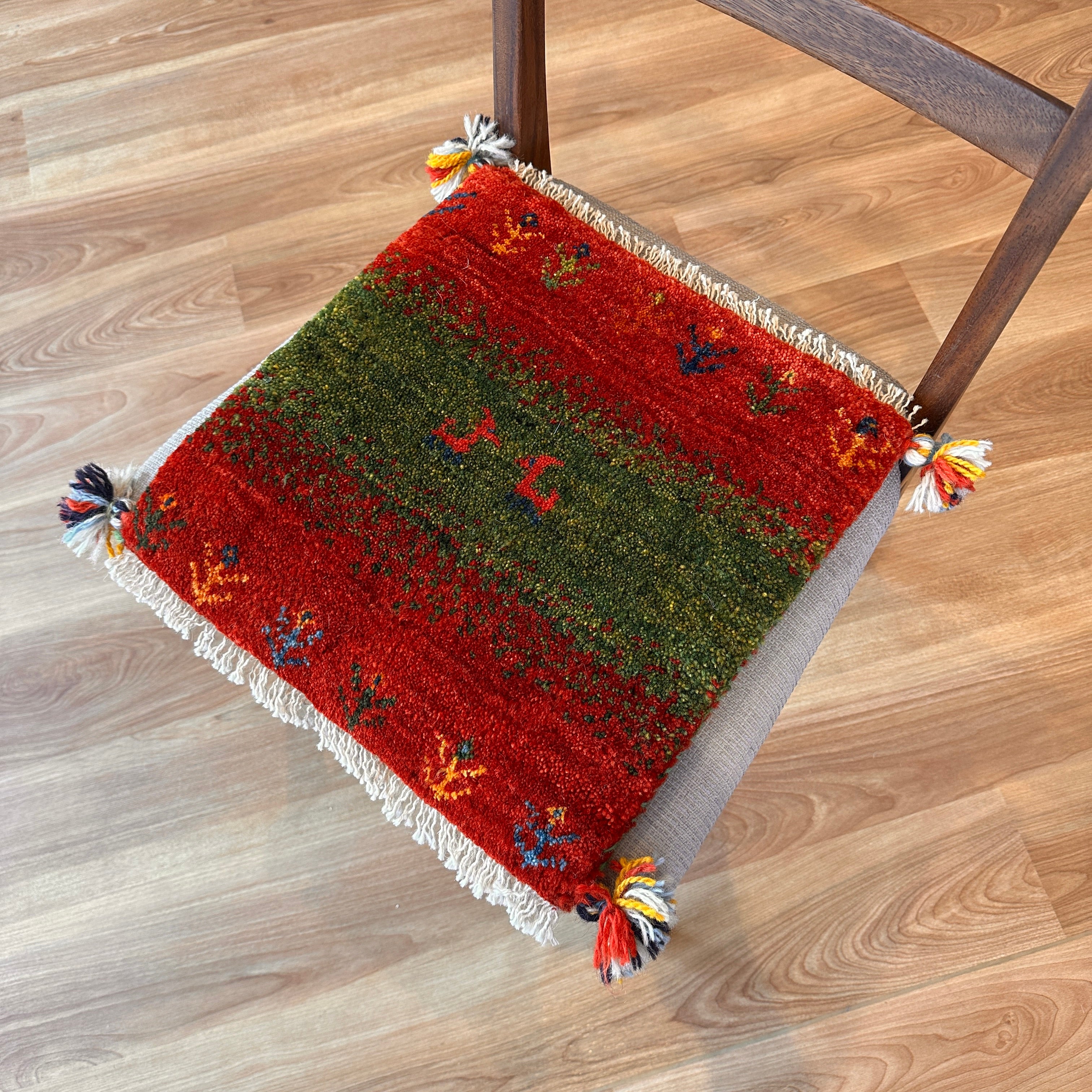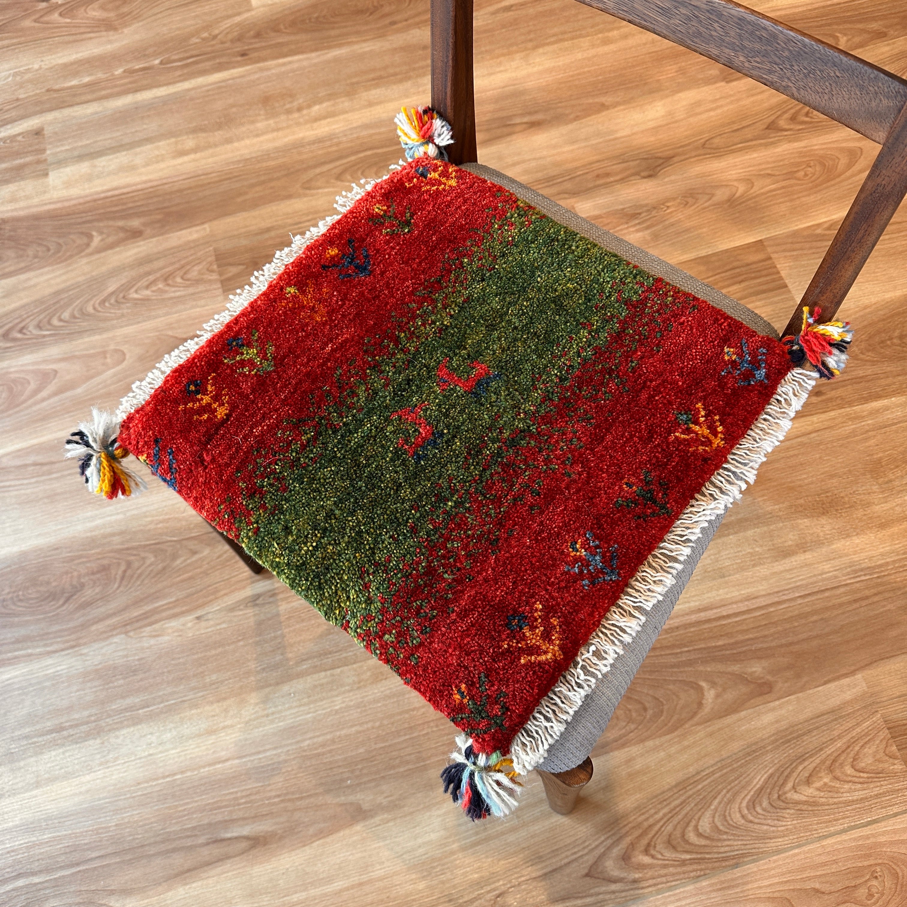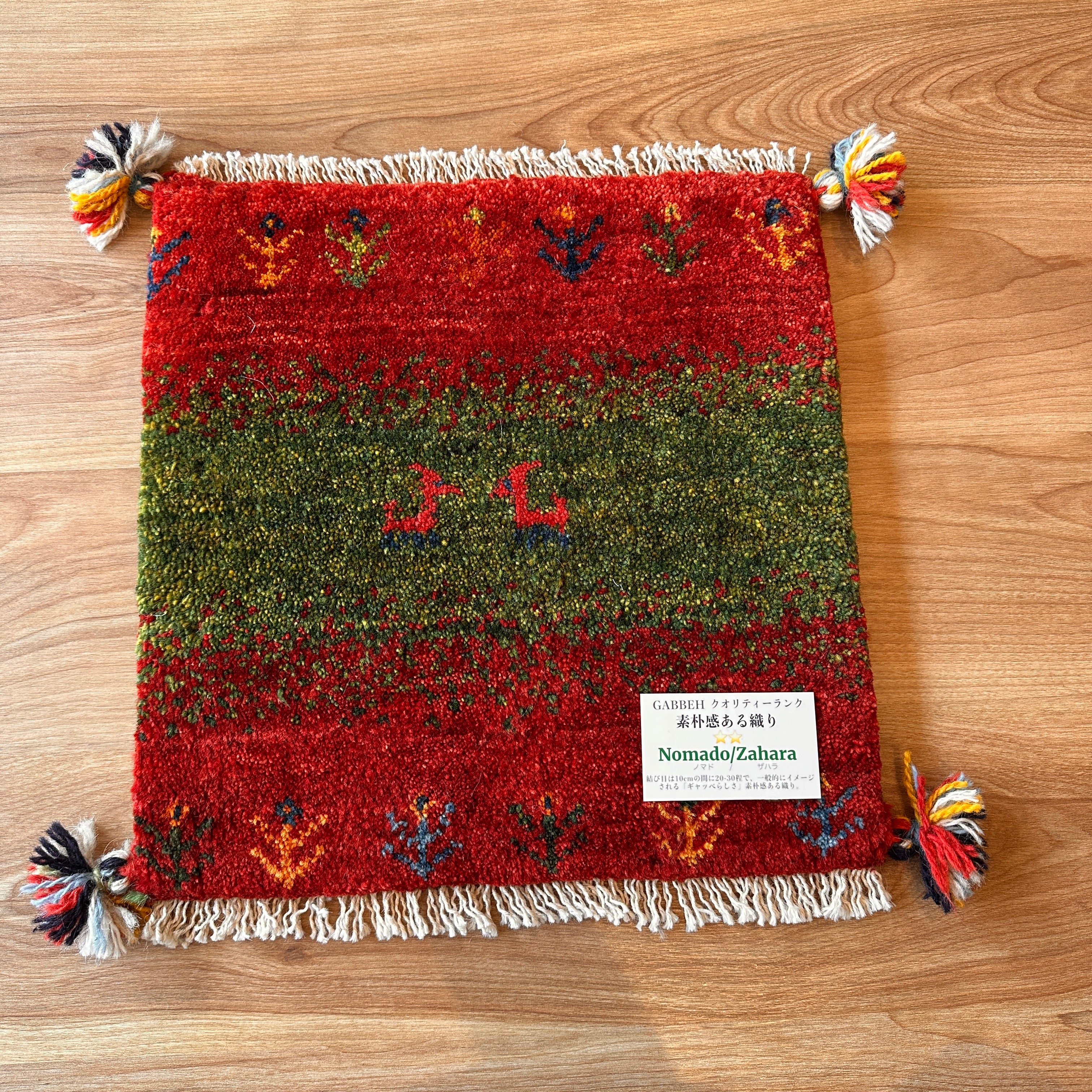 ギャッベ 座布団サイズ 39×38cm 手織り生命の樹 鹿 赤 (GC-5660)