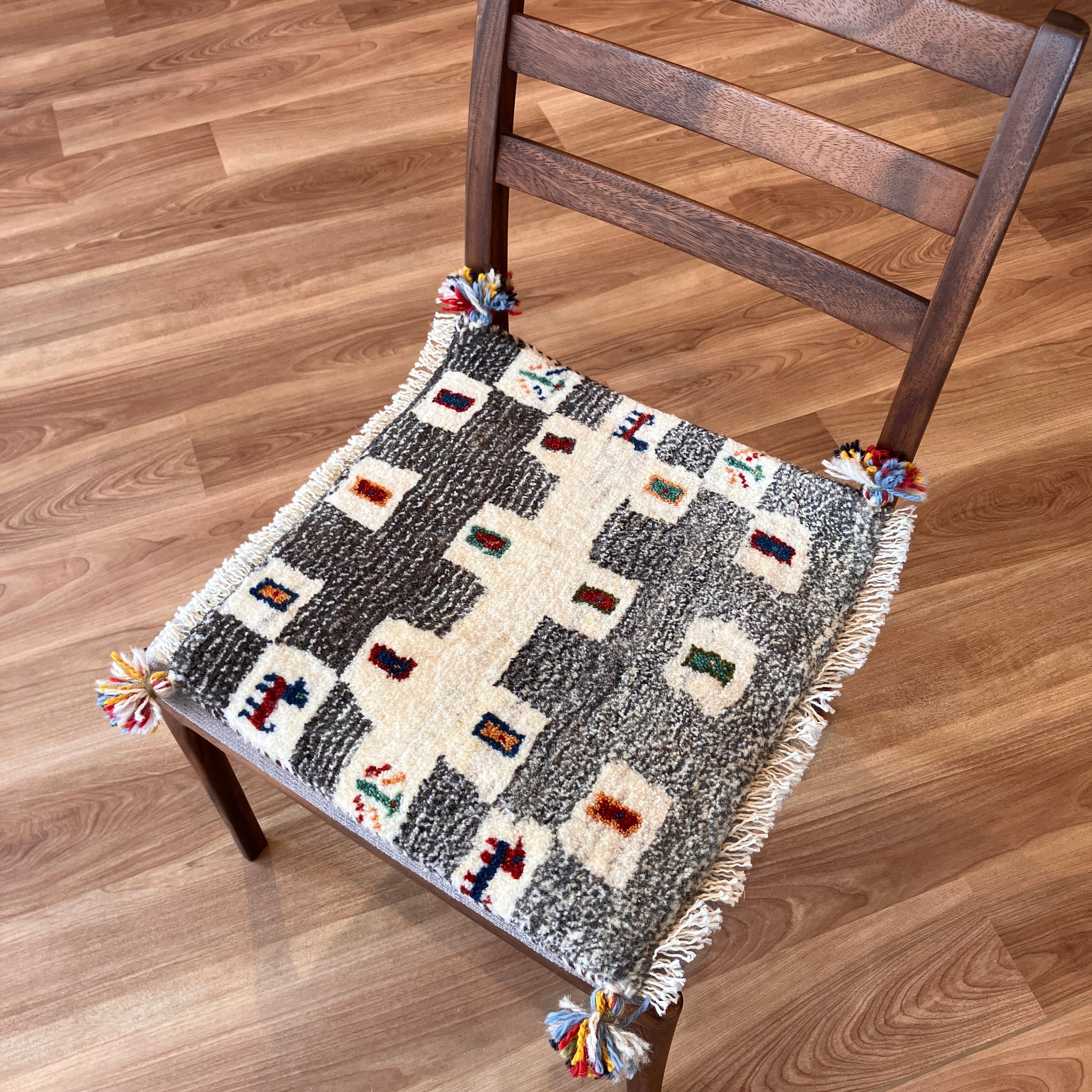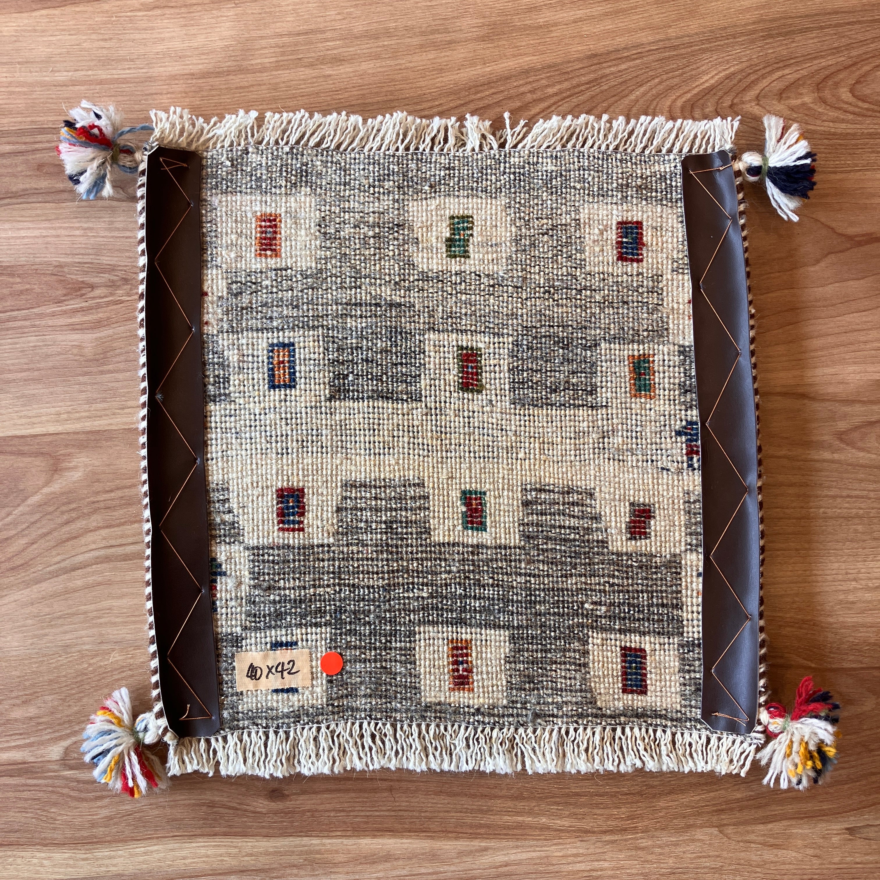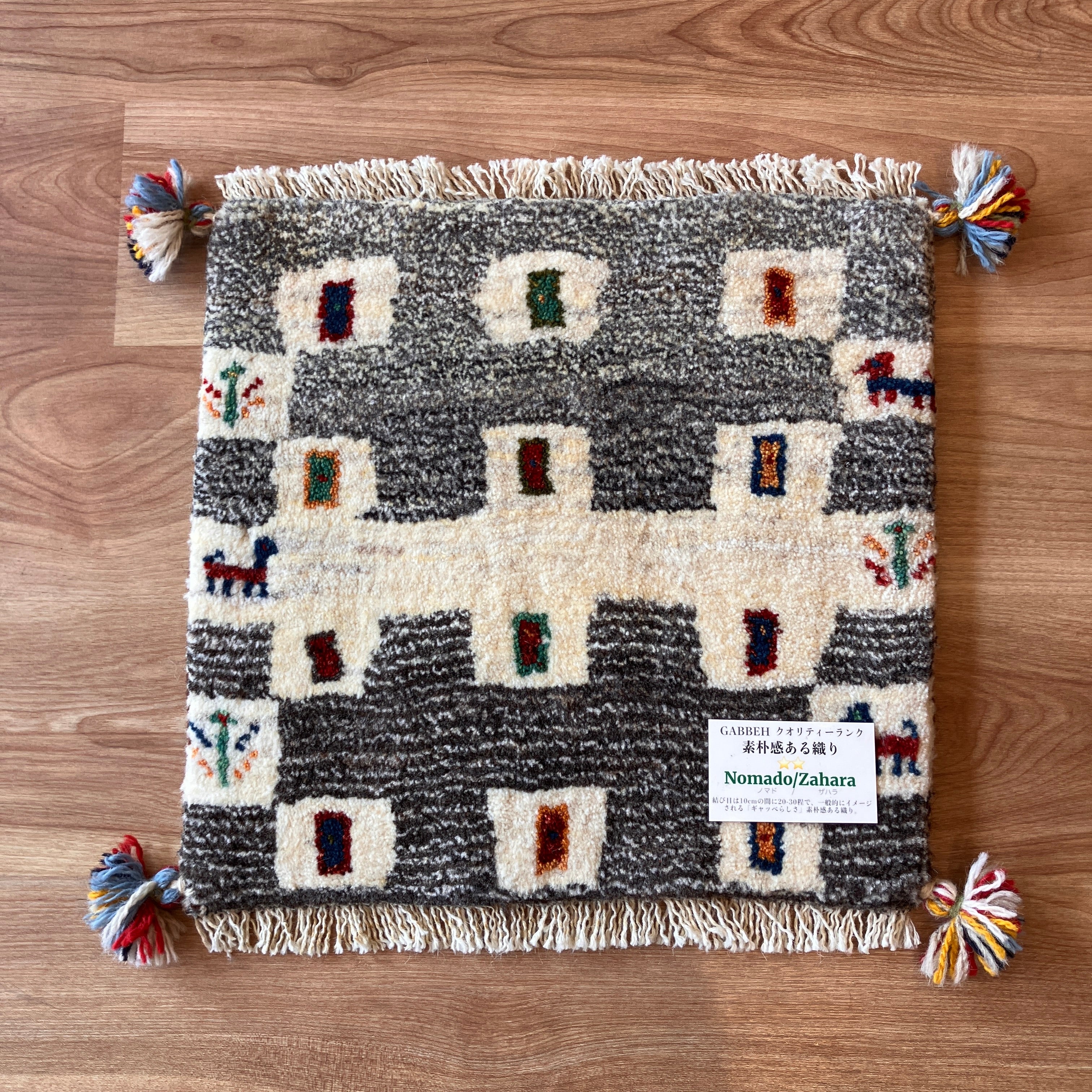 ギャッベ 座布団サイズ 40×42cm 手織り生命の樹 鹿 グレー(GC-5650)