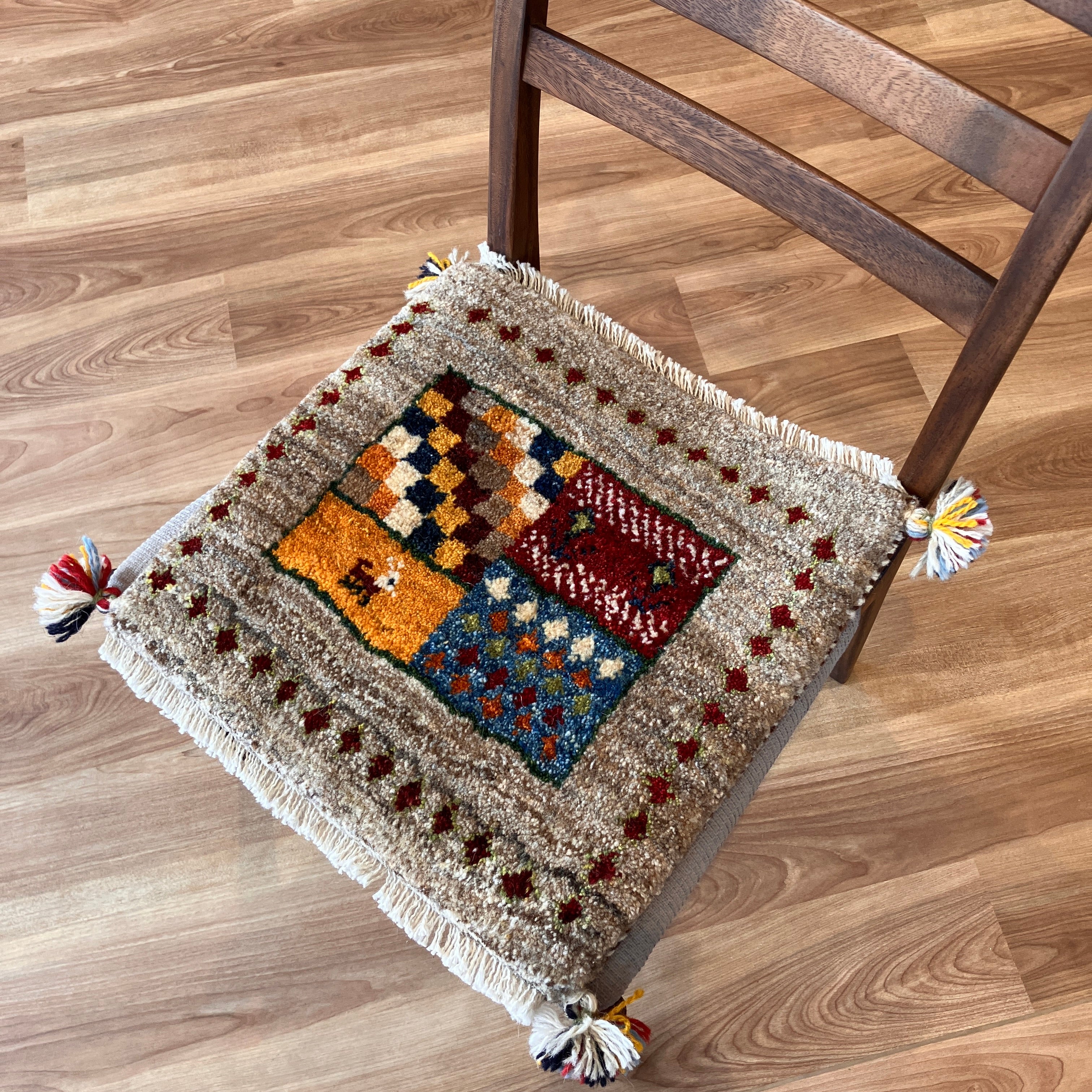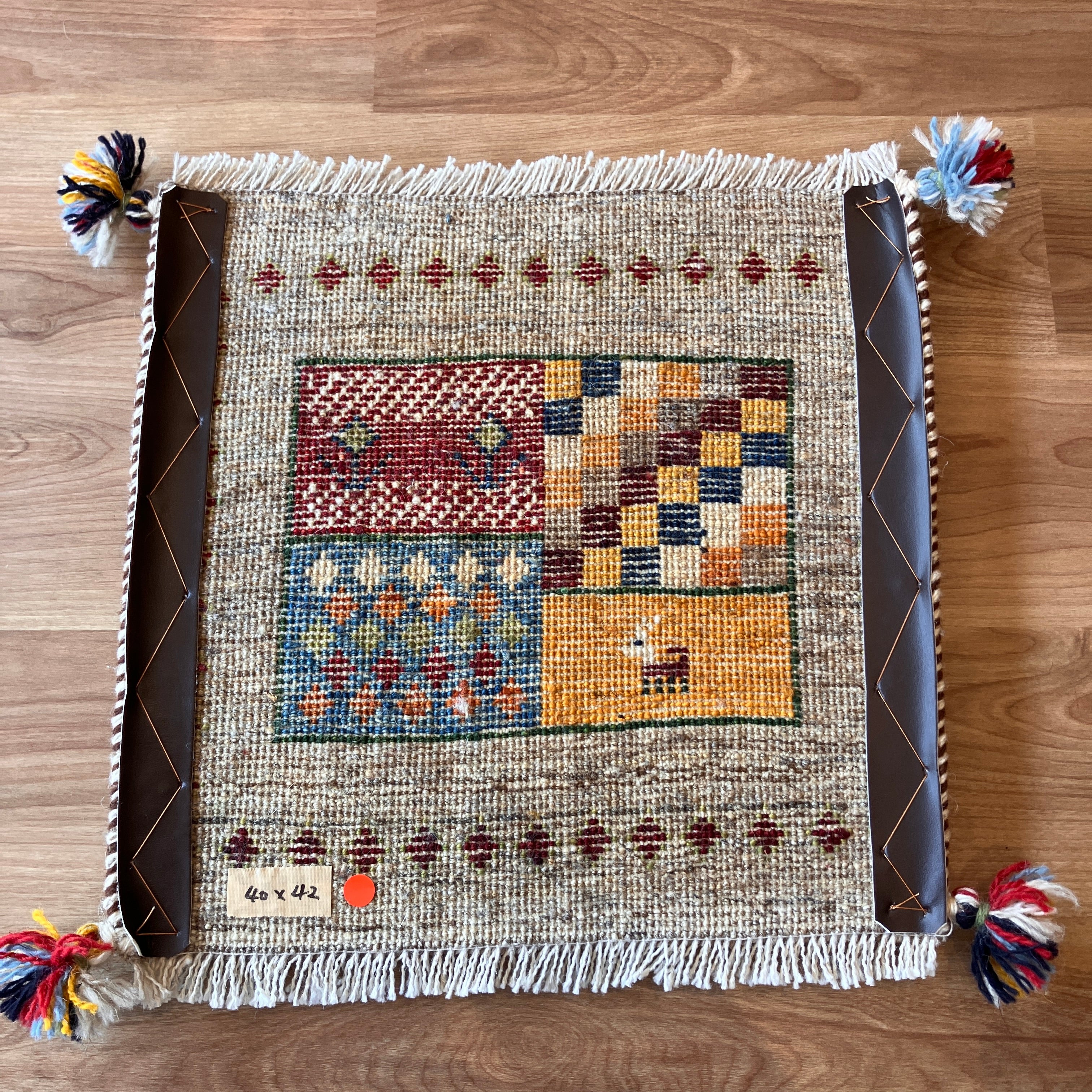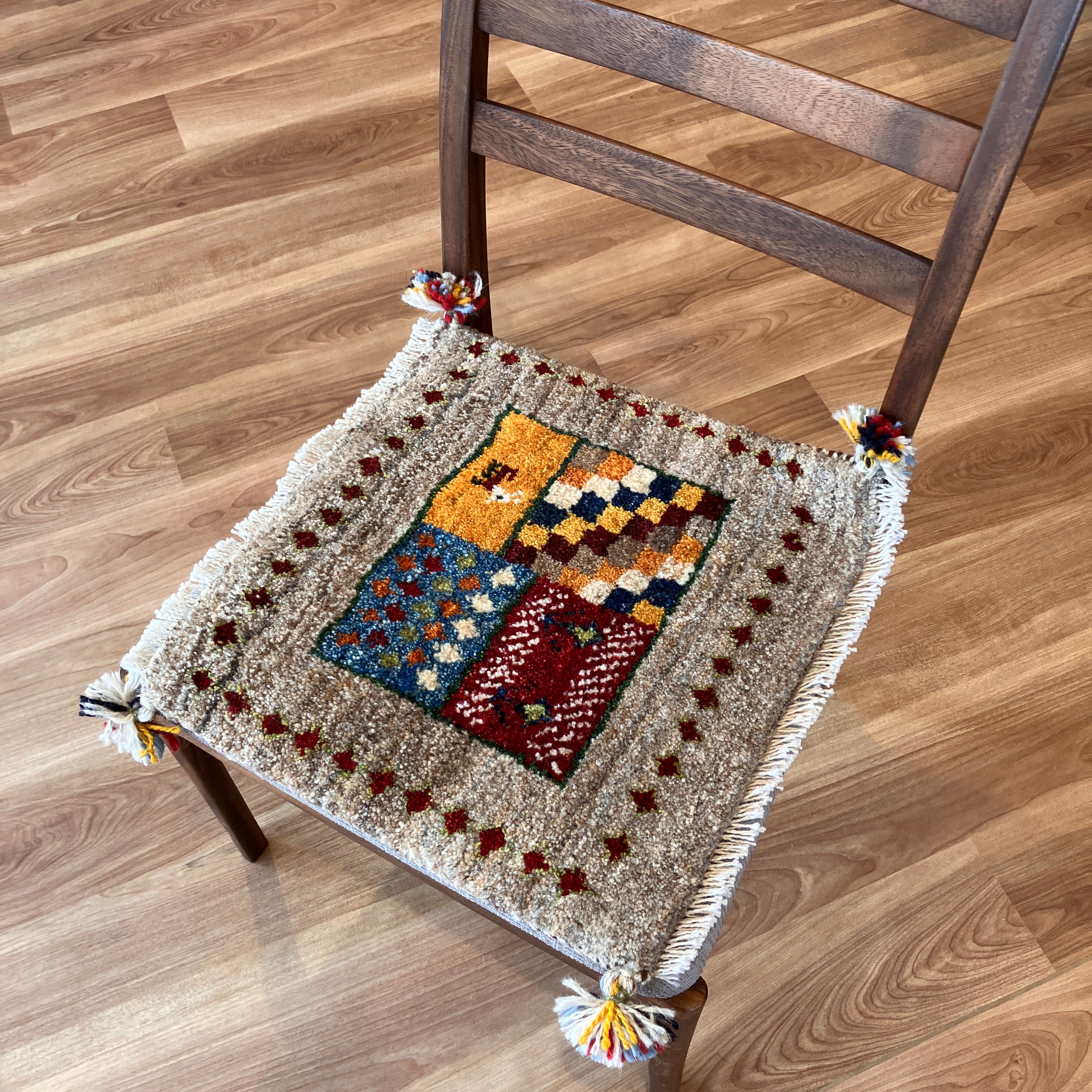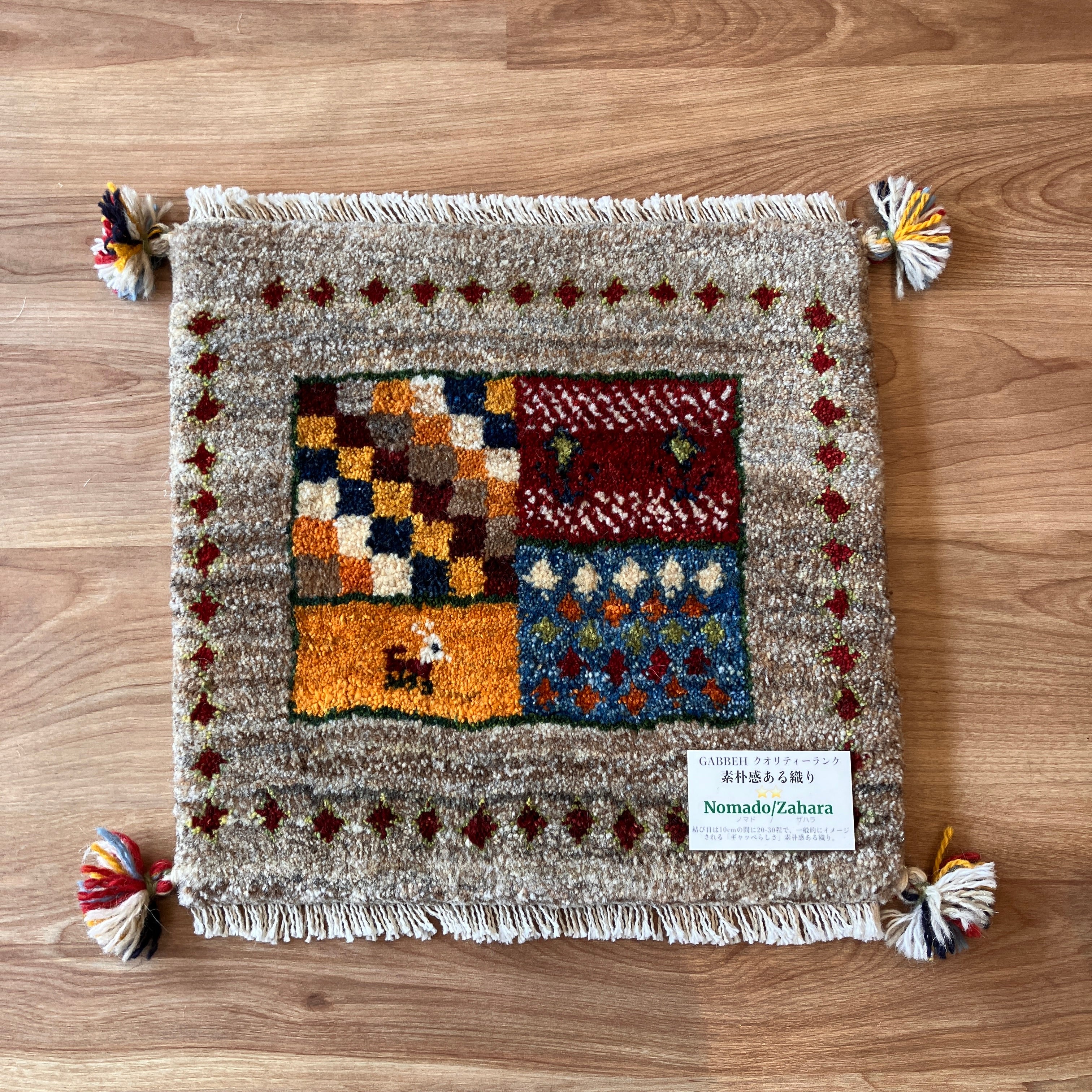 ギャッベ 座布団サイズ 40×42cm 手織り生命の樹 鹿 ベージュ(GC-5649)