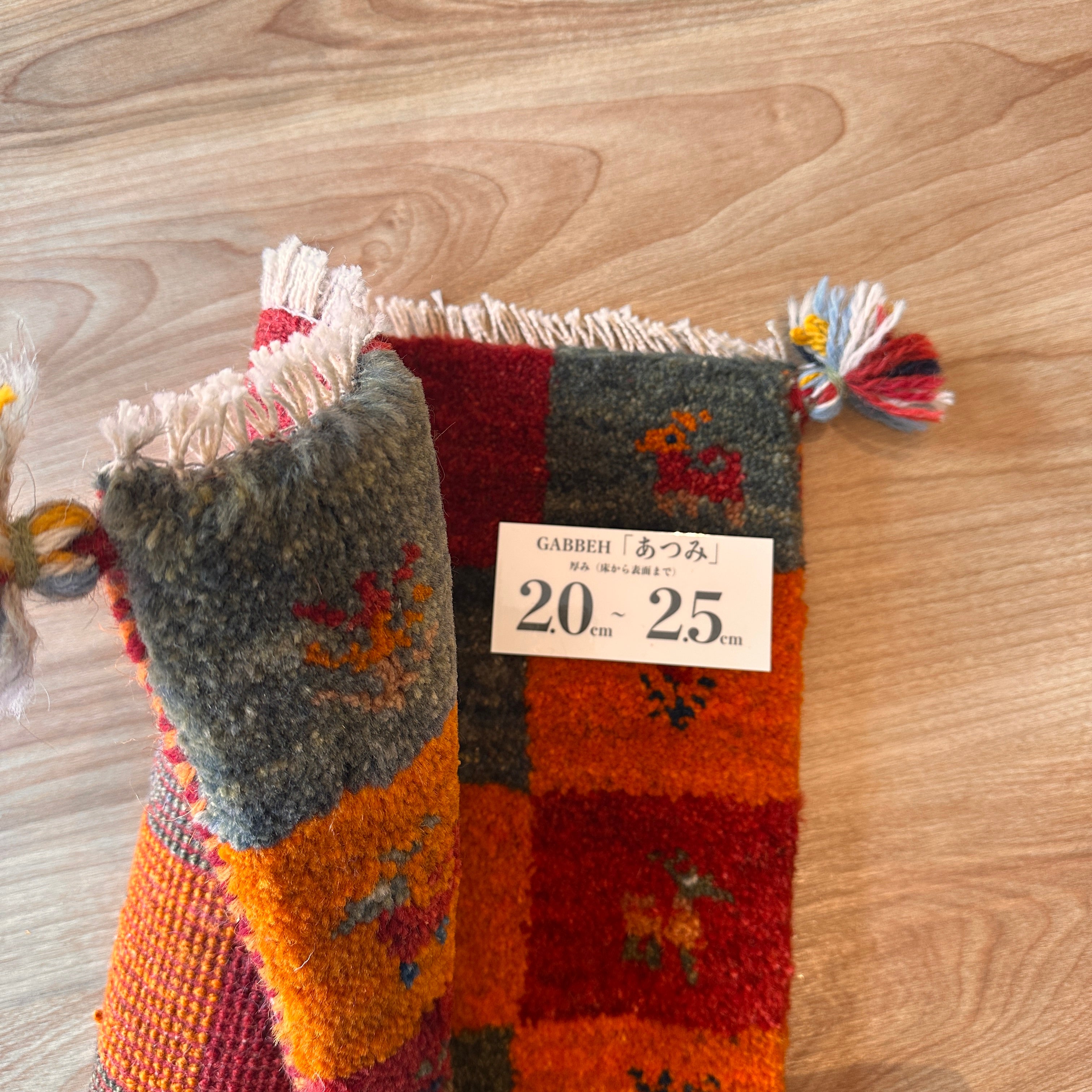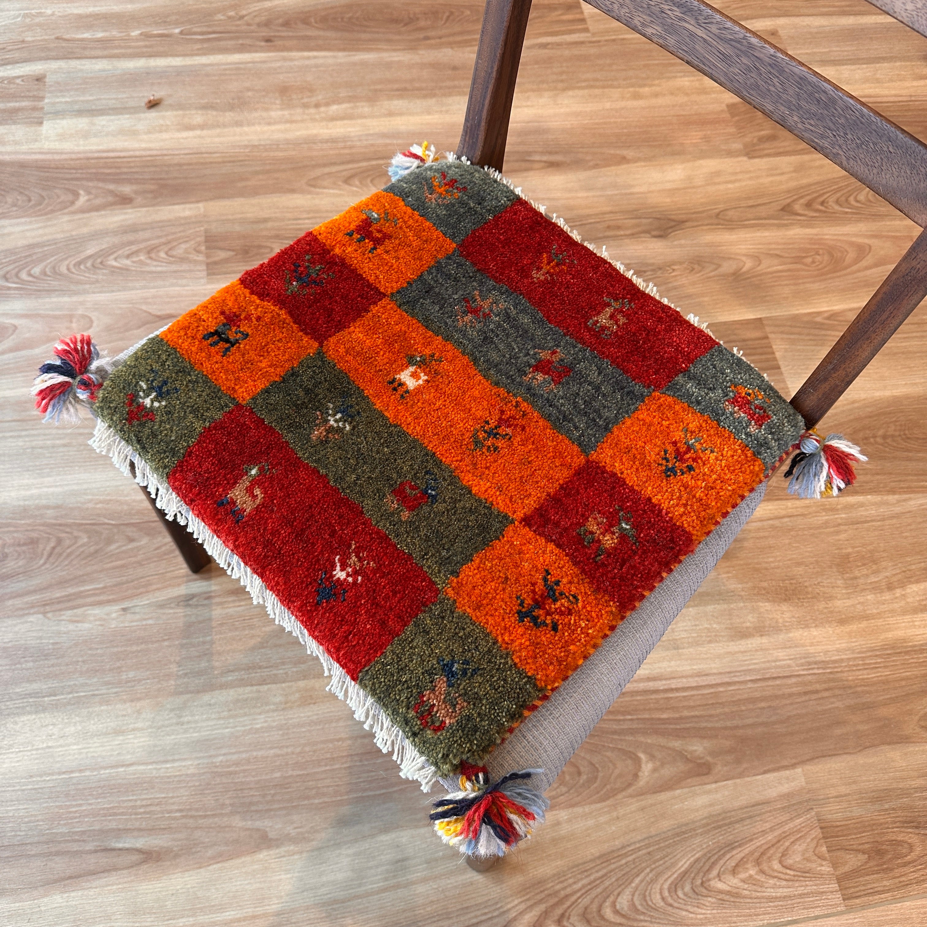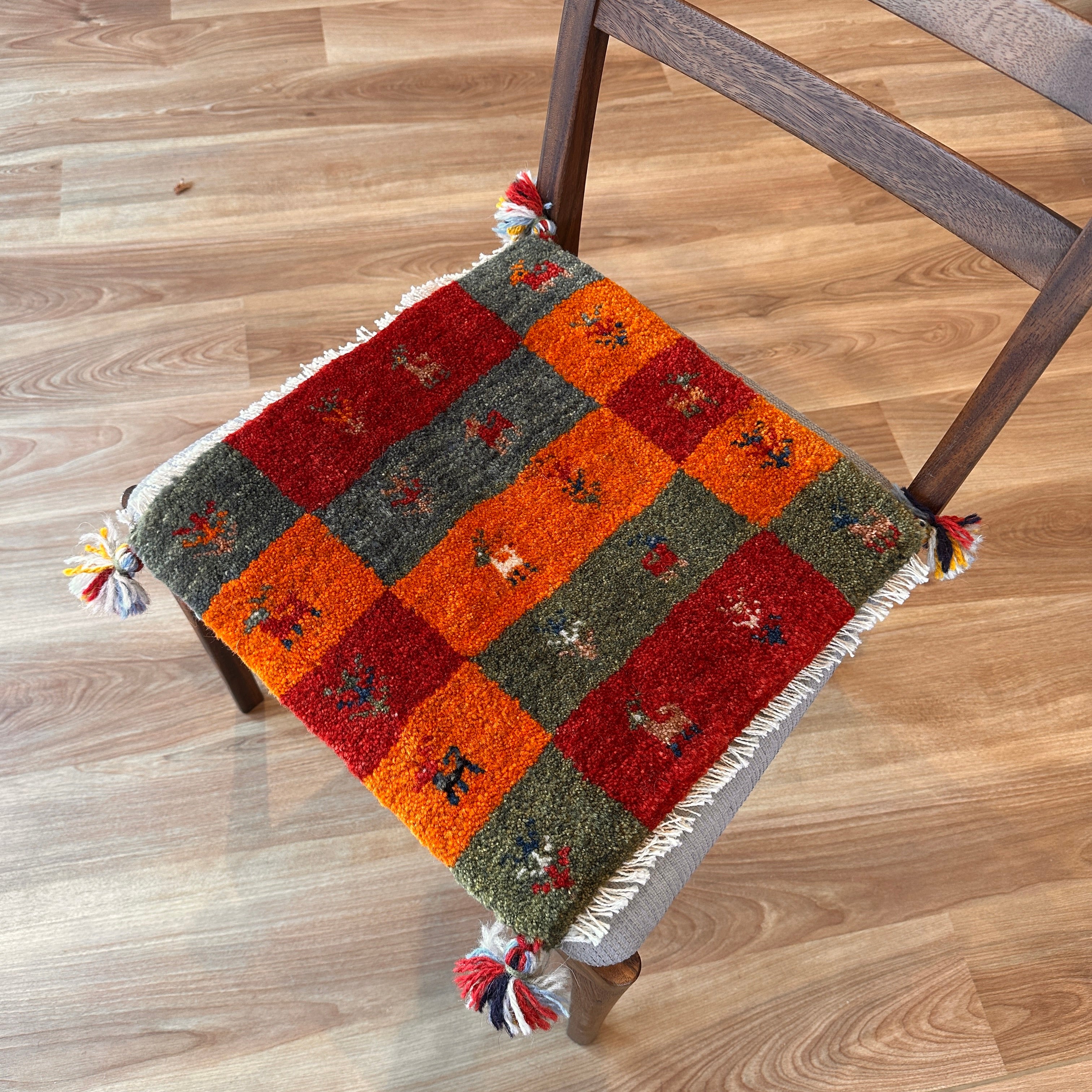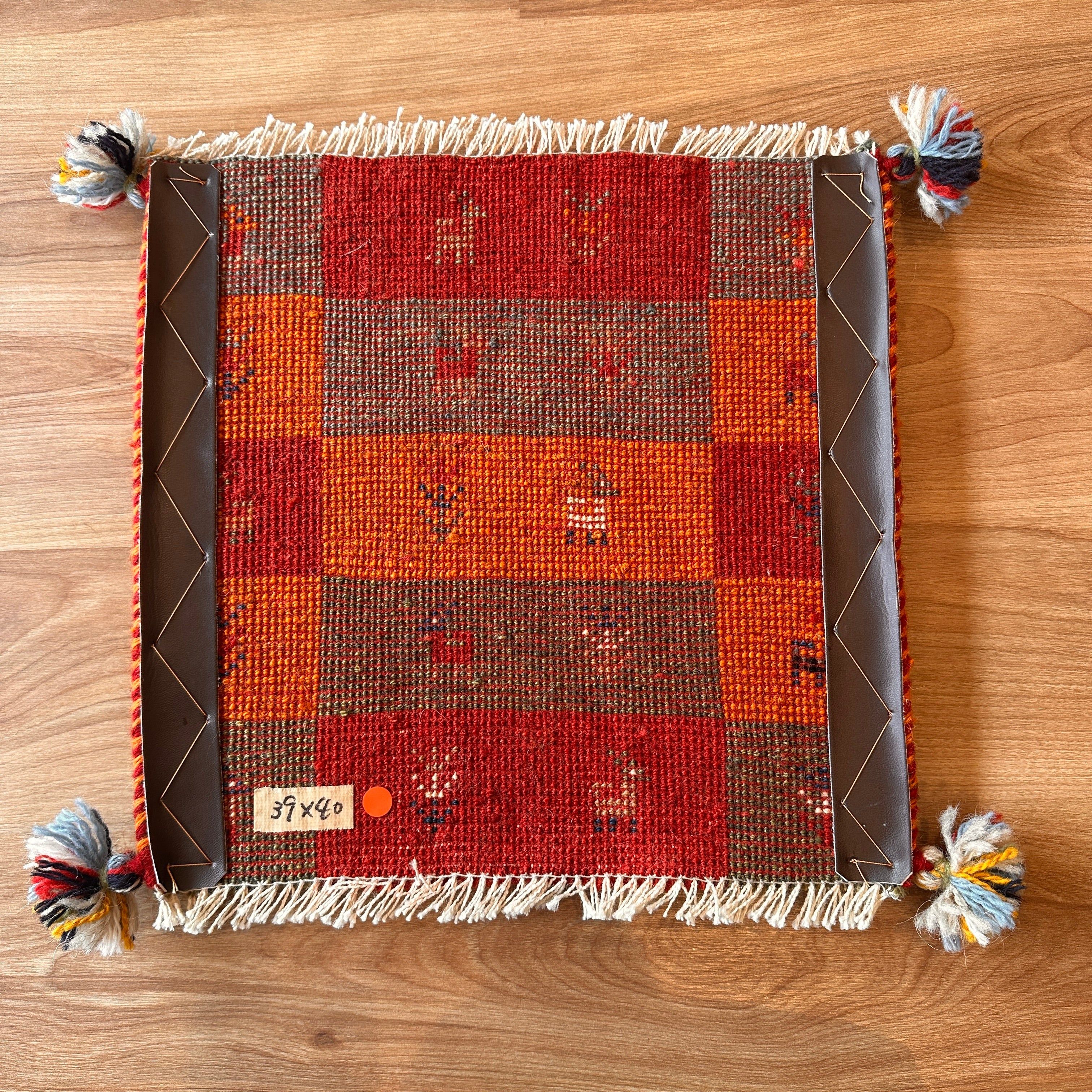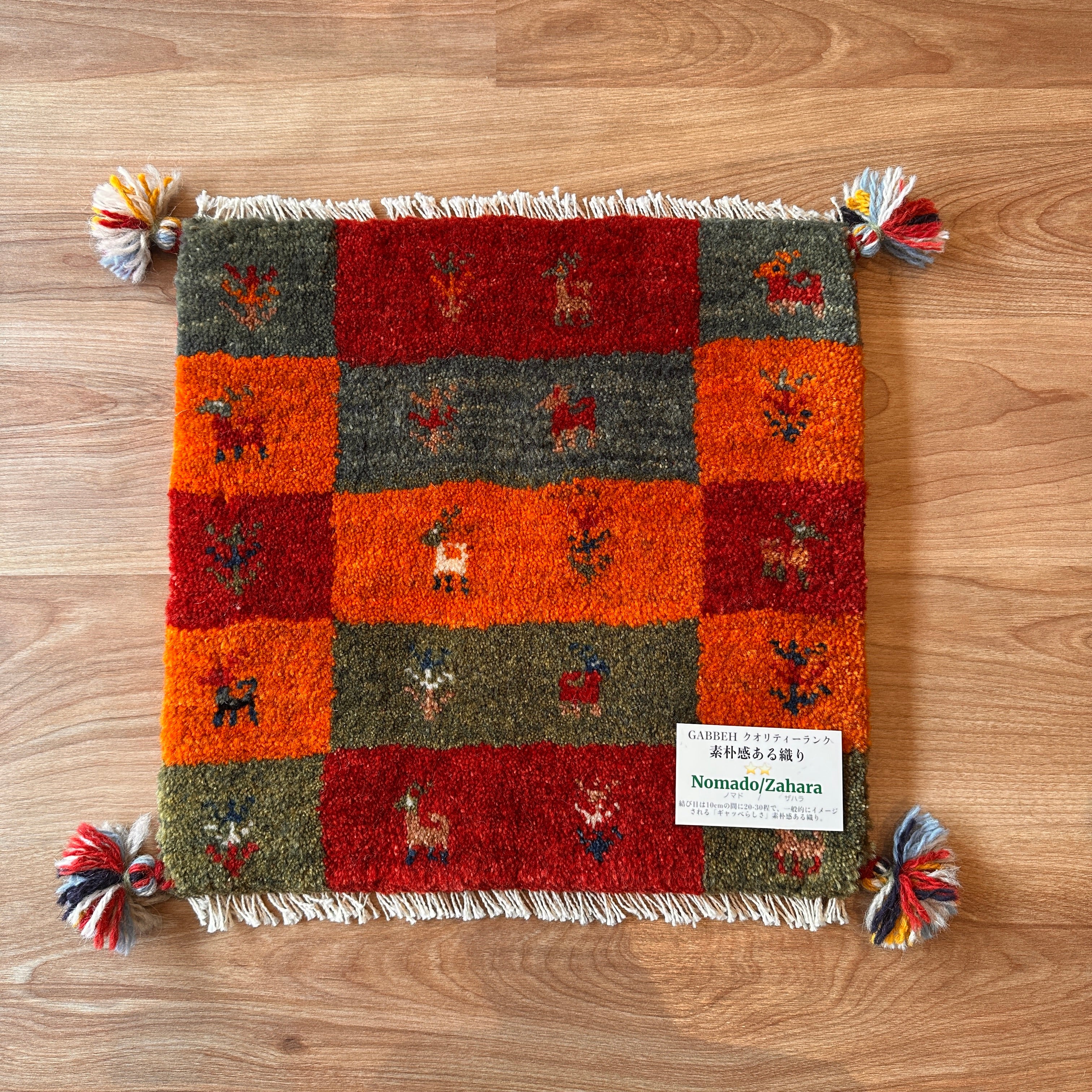 ギャッベ 座布団サイズ 39×40cm 手織り生命の樹 鹿 (GC-5662)