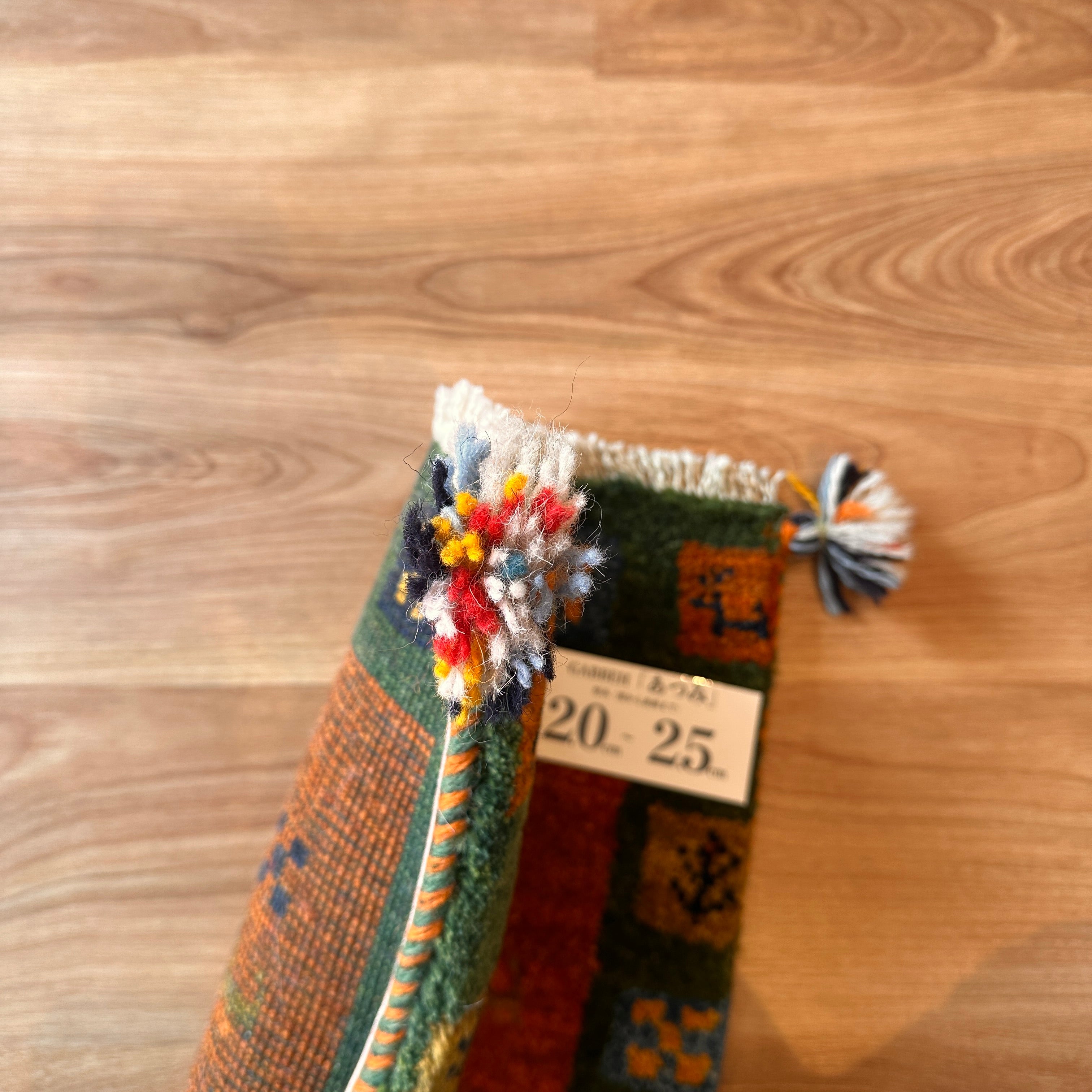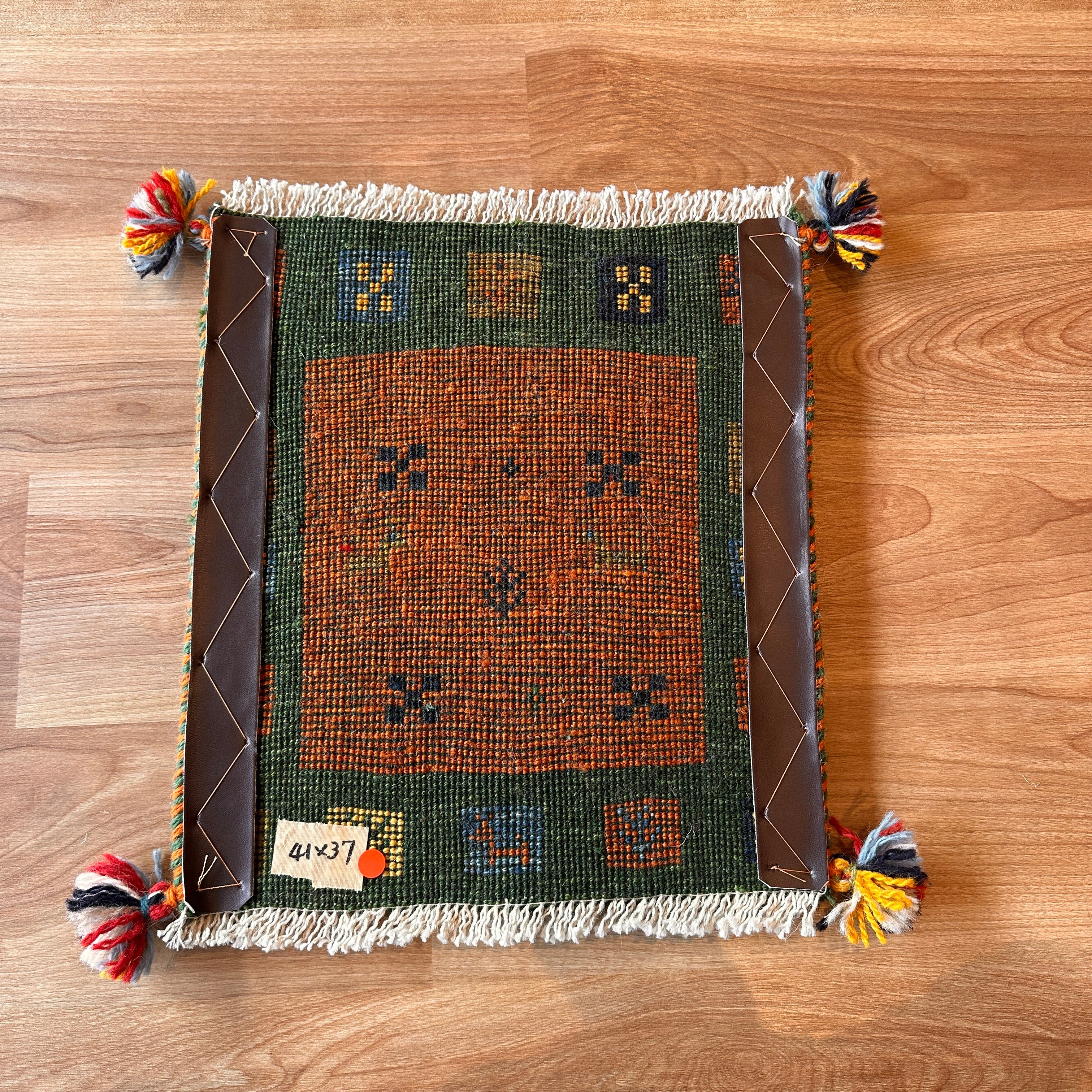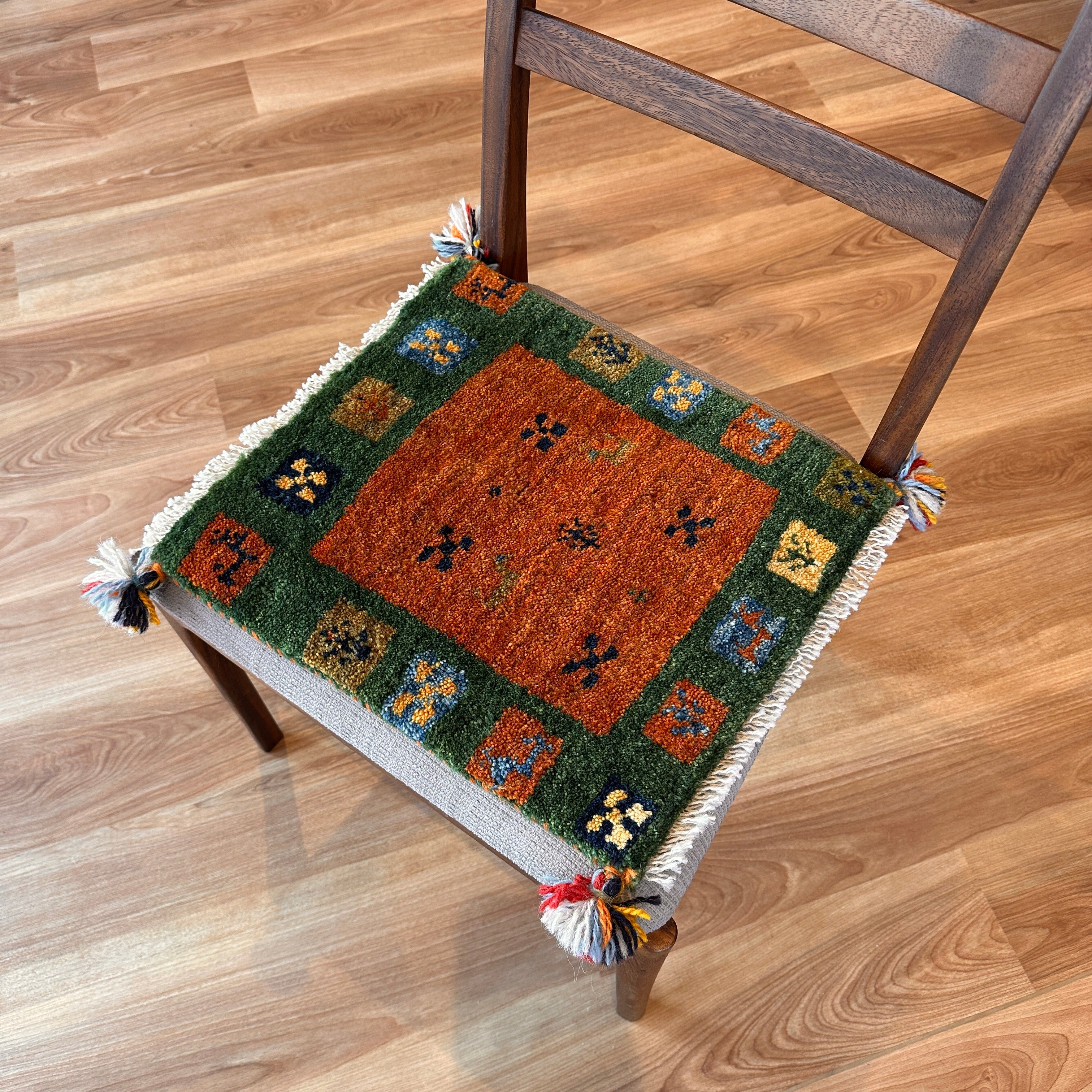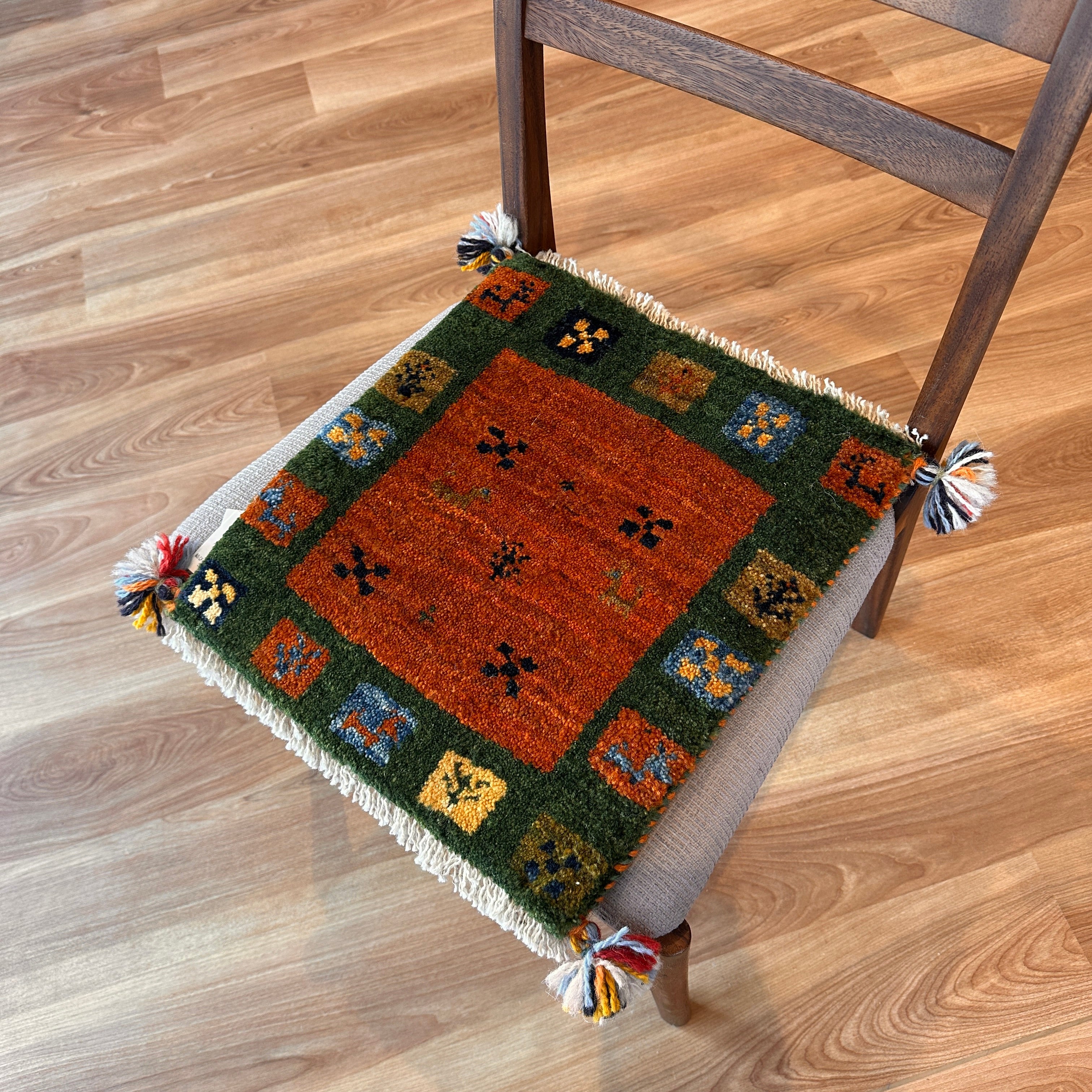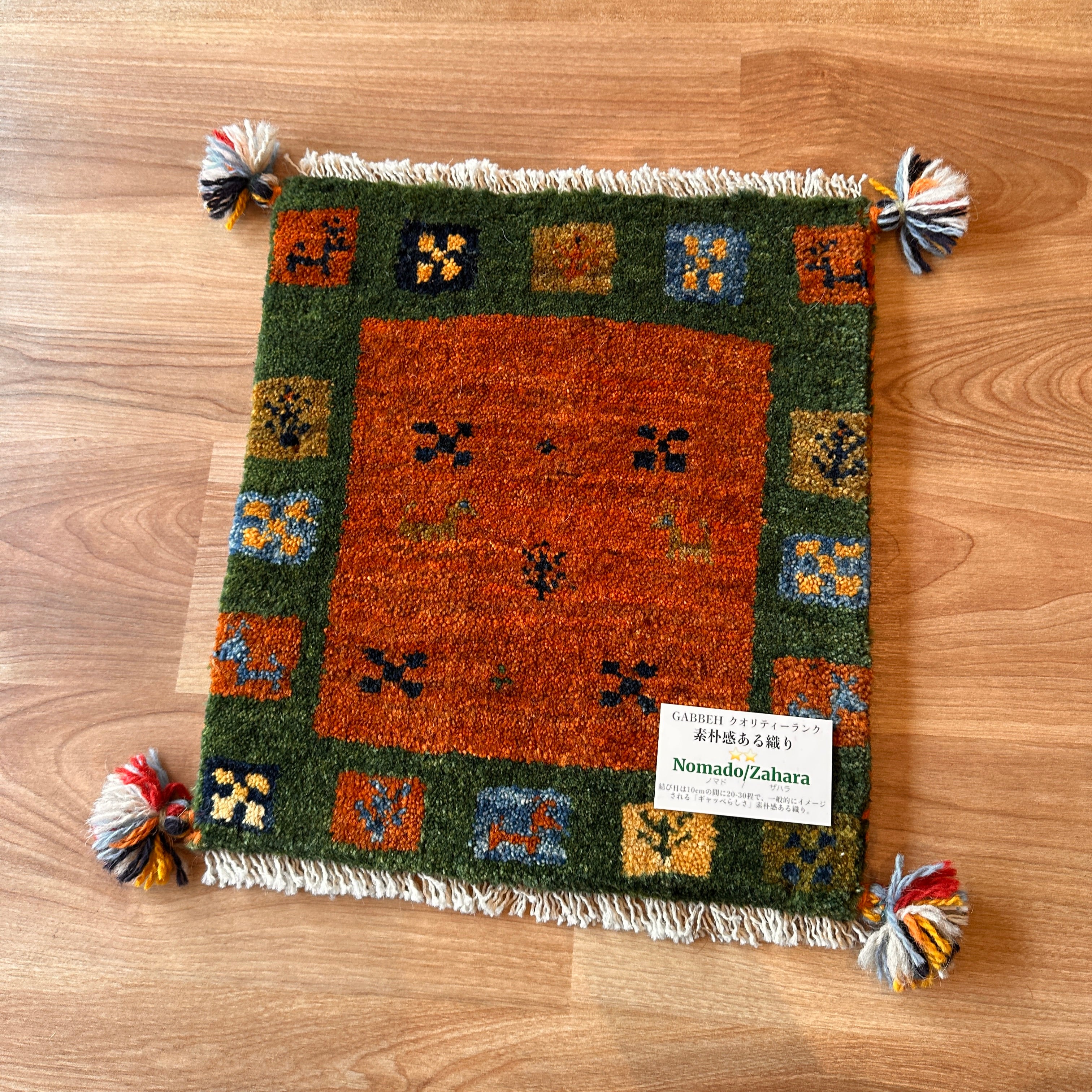 ギャッベ 座布団サイズ 41×37cm 手織り生命の樹 鹿 緑 (GC-5661)