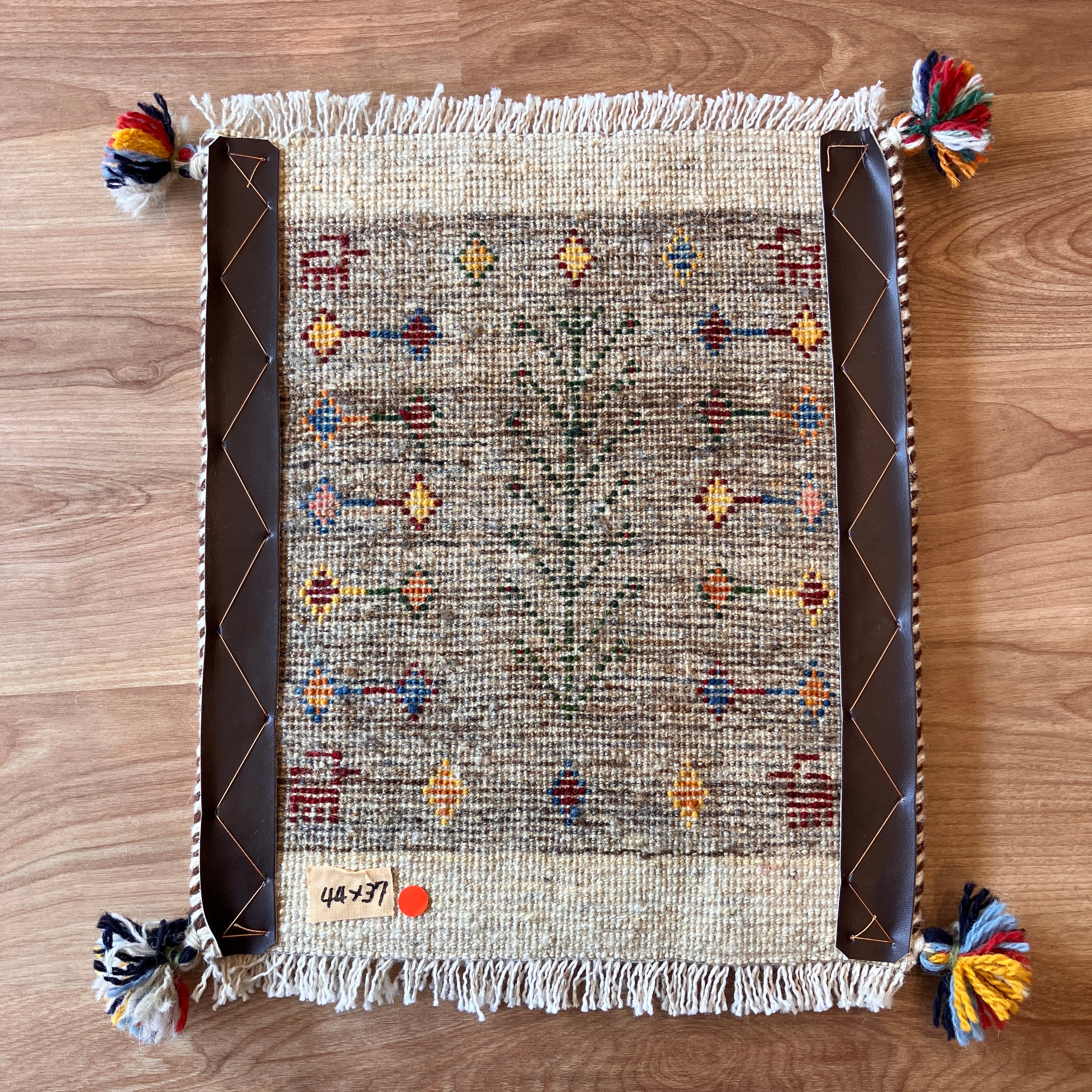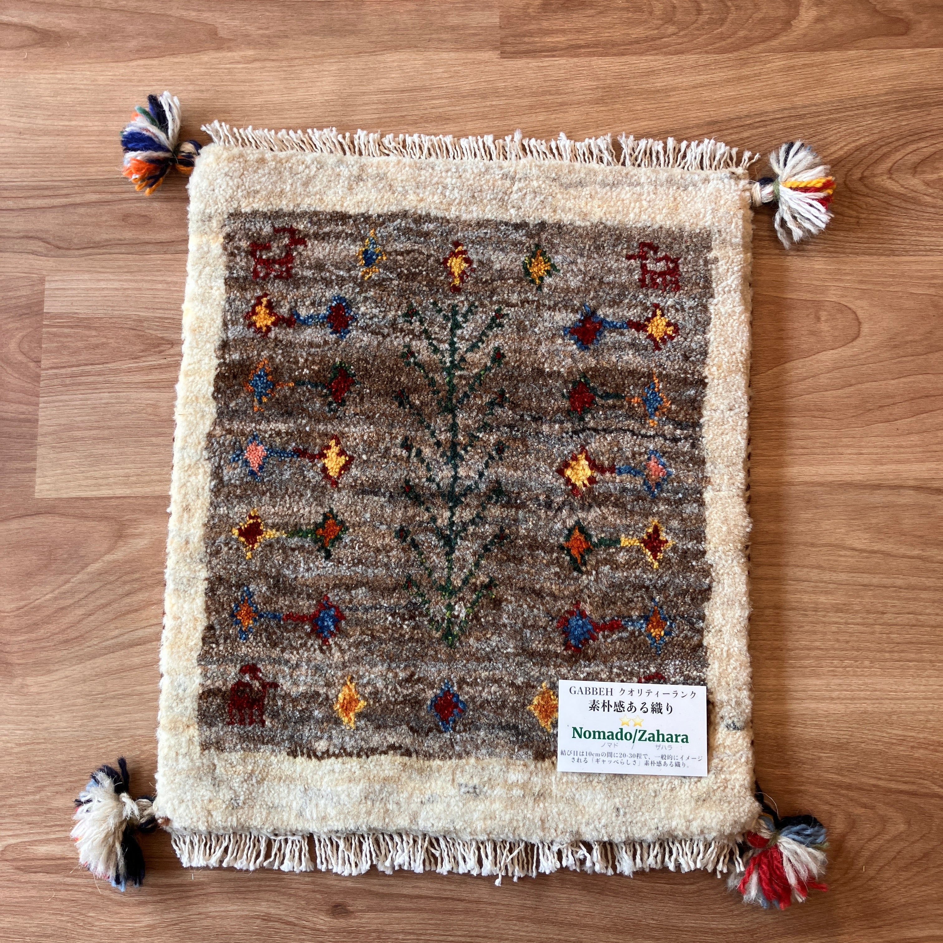 ギャッベ 座布団サイズ 44×37cm 手織り生命の樹 鹿 白(GC-5651)