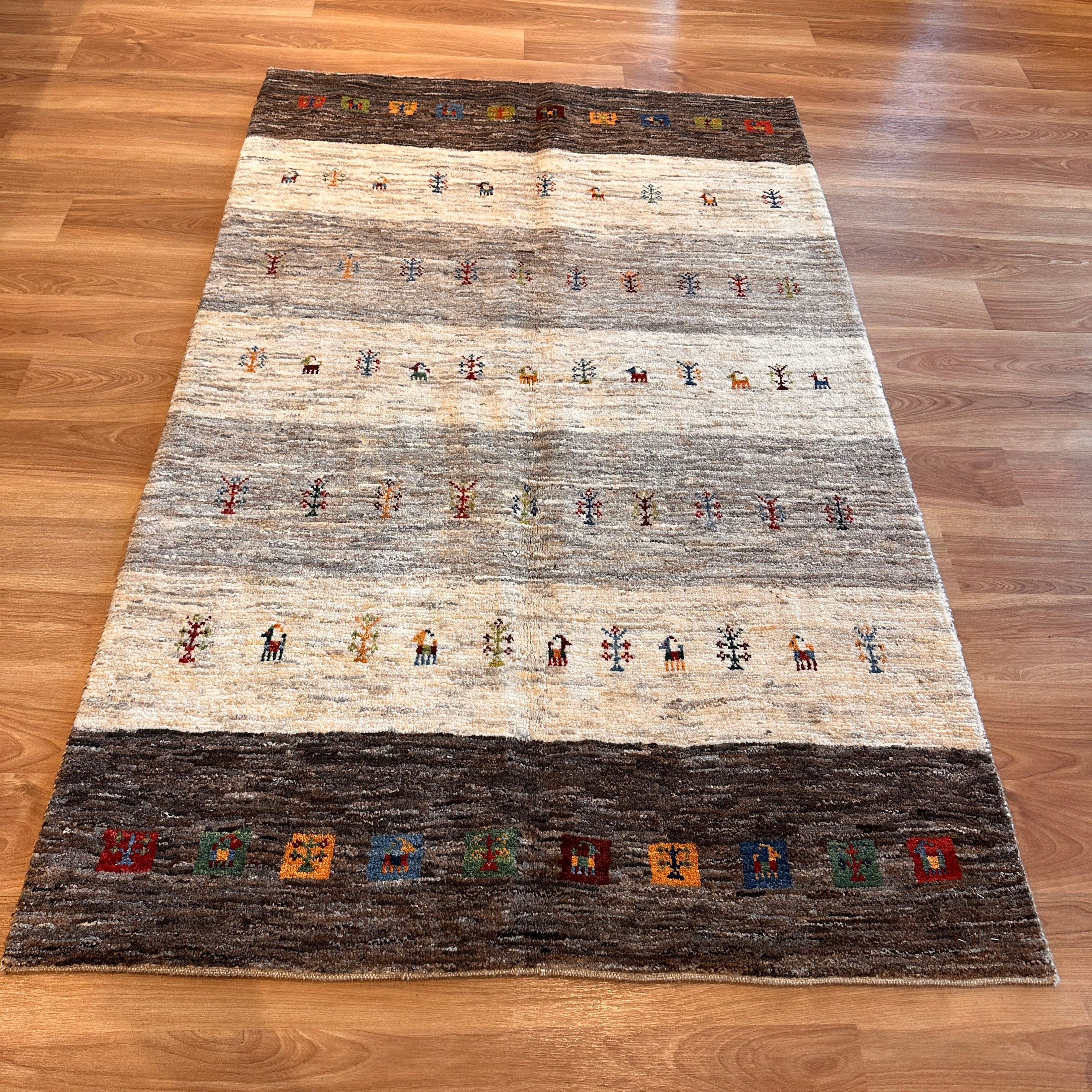 【決算SALE9/13-9/30】ギャッベ リビング サイズ 194×120cm 手織り ブラウン (GL-5140)