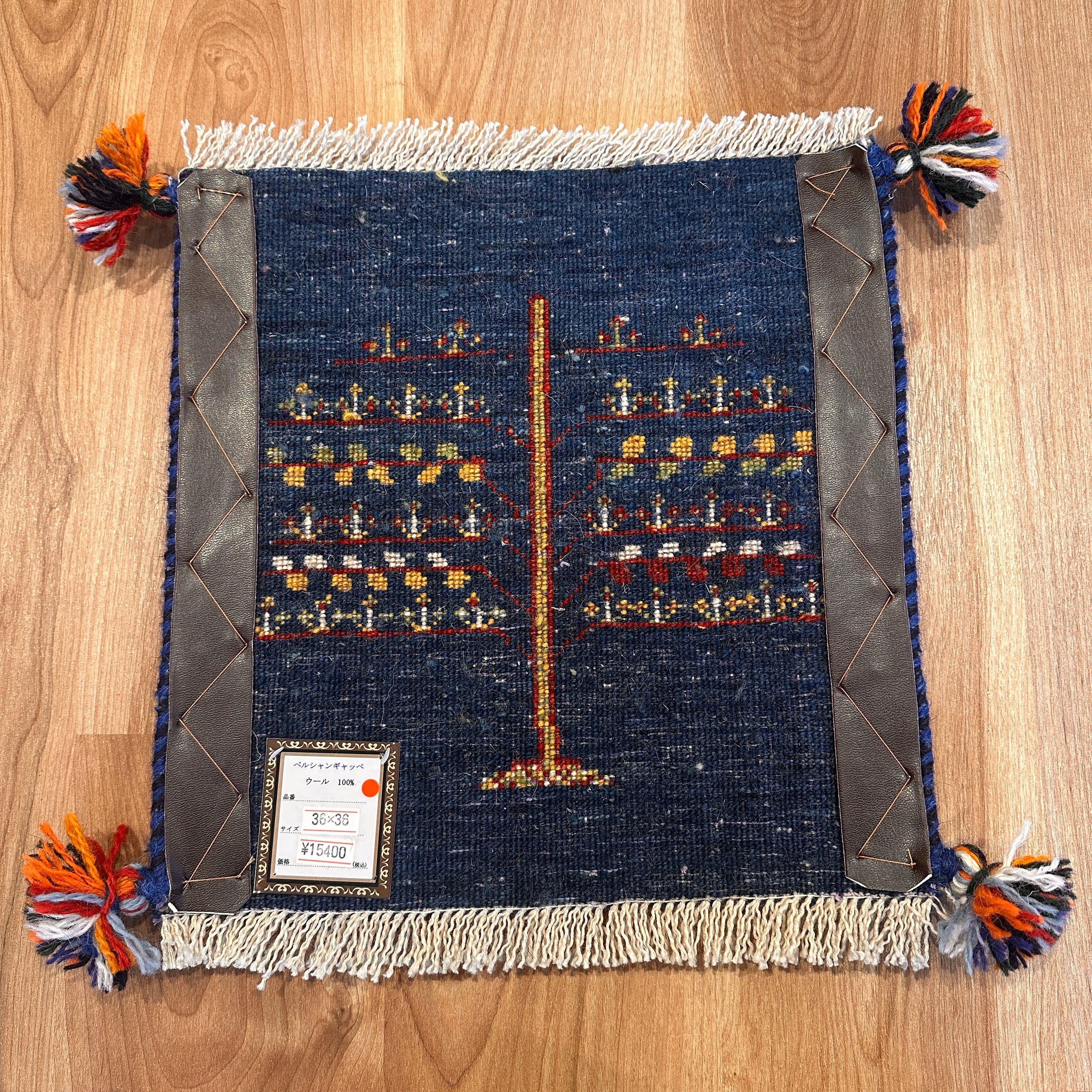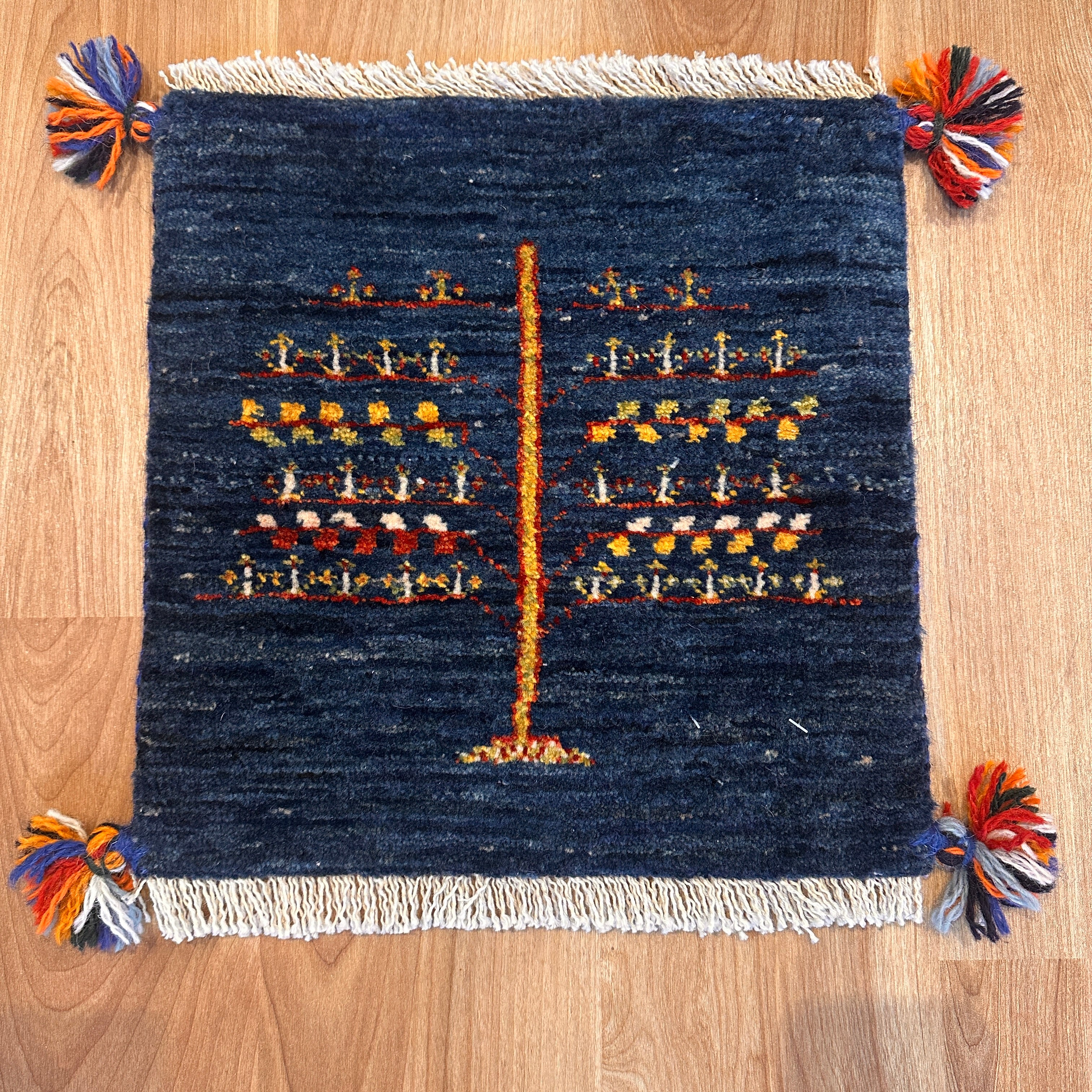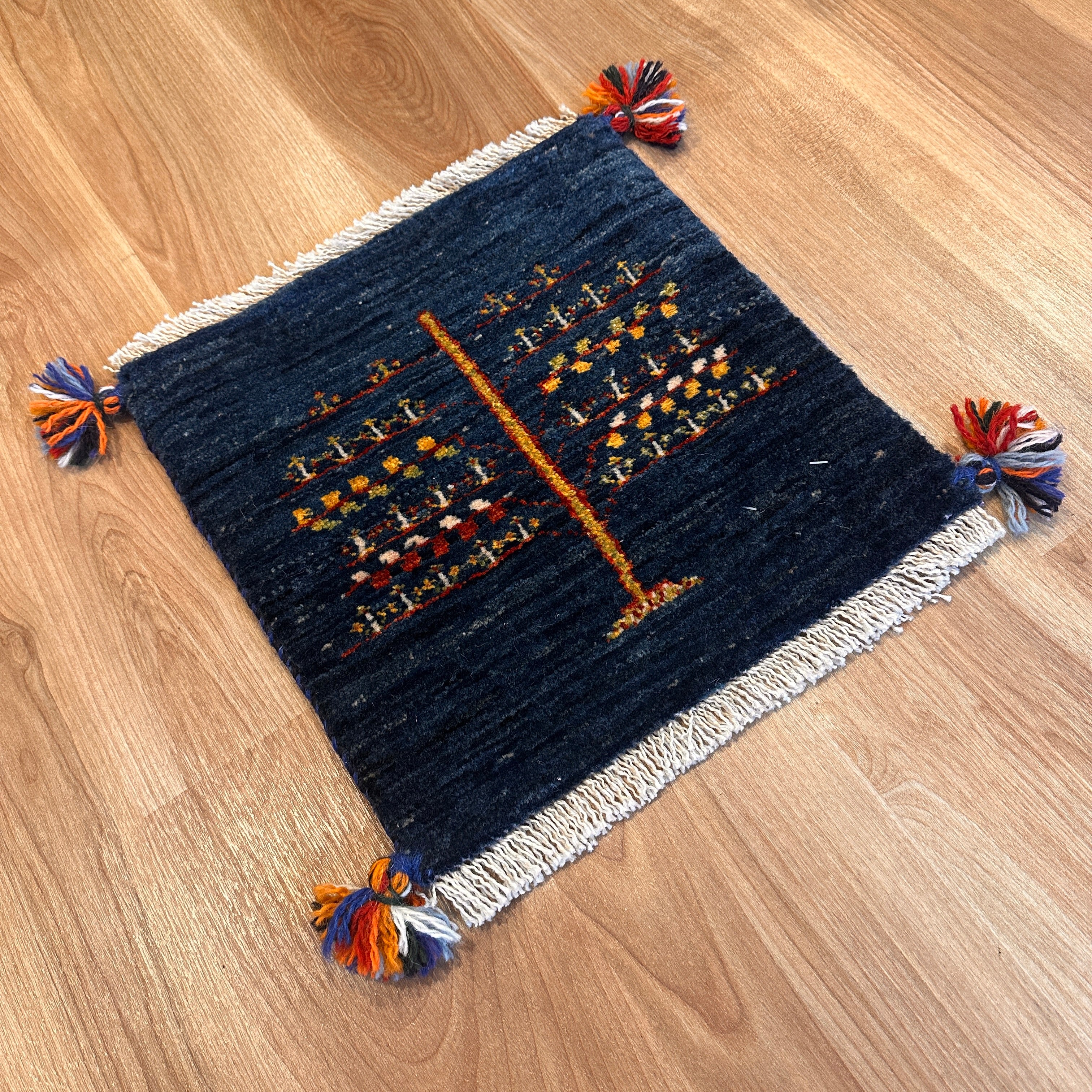 【決算SALE9/13-9/30】ギャッベ 座布団サイズ 36×36cm 手織り生命の樹 花 (GC-5627)