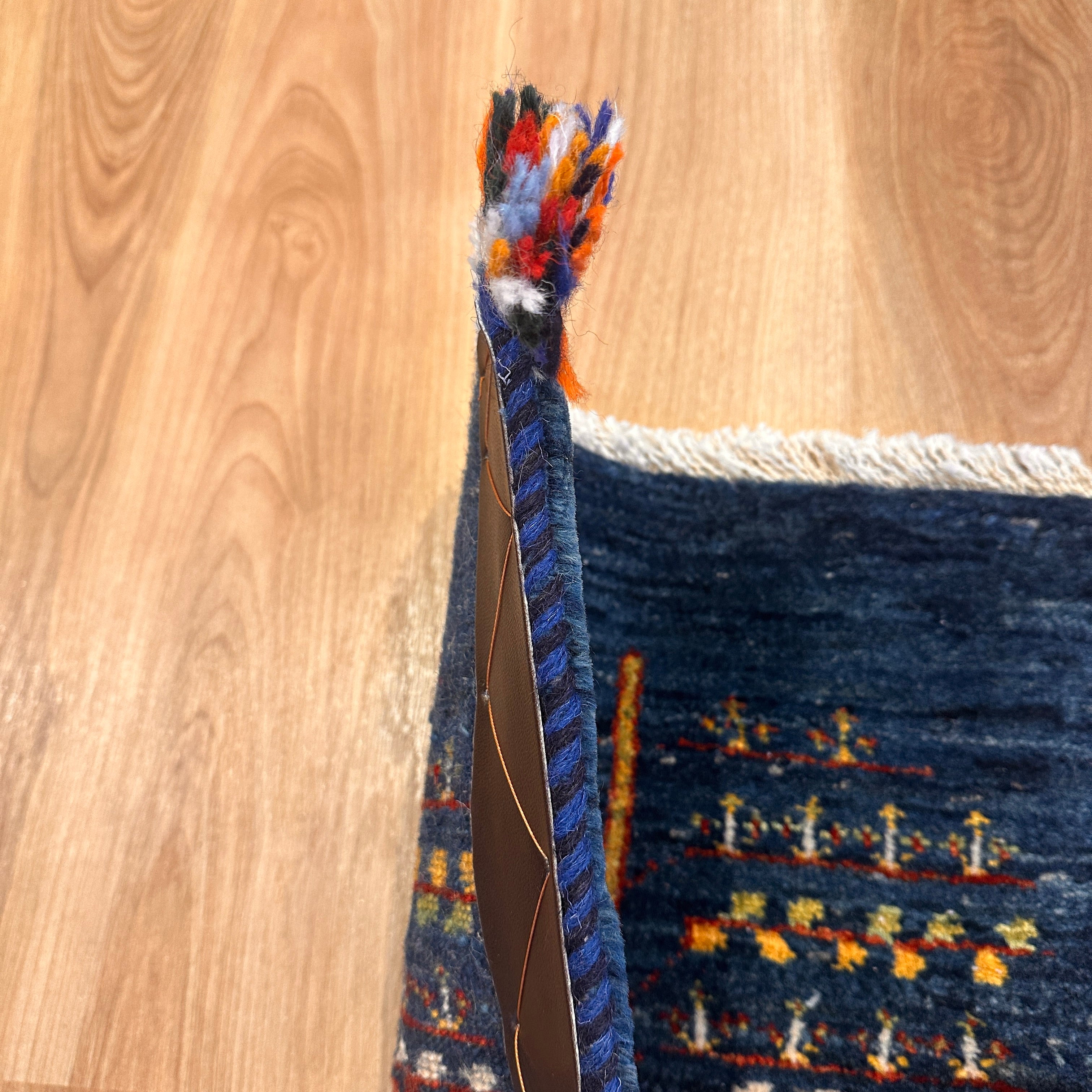 製品への拘り:ひとつひとつを永くご愛用頂くために当社のペルシャン絨毯,ギャッベ,ラグの裏面の両サイドには、反り返し、歪み、手巻きほどけ防止のために、ひと手間加えております