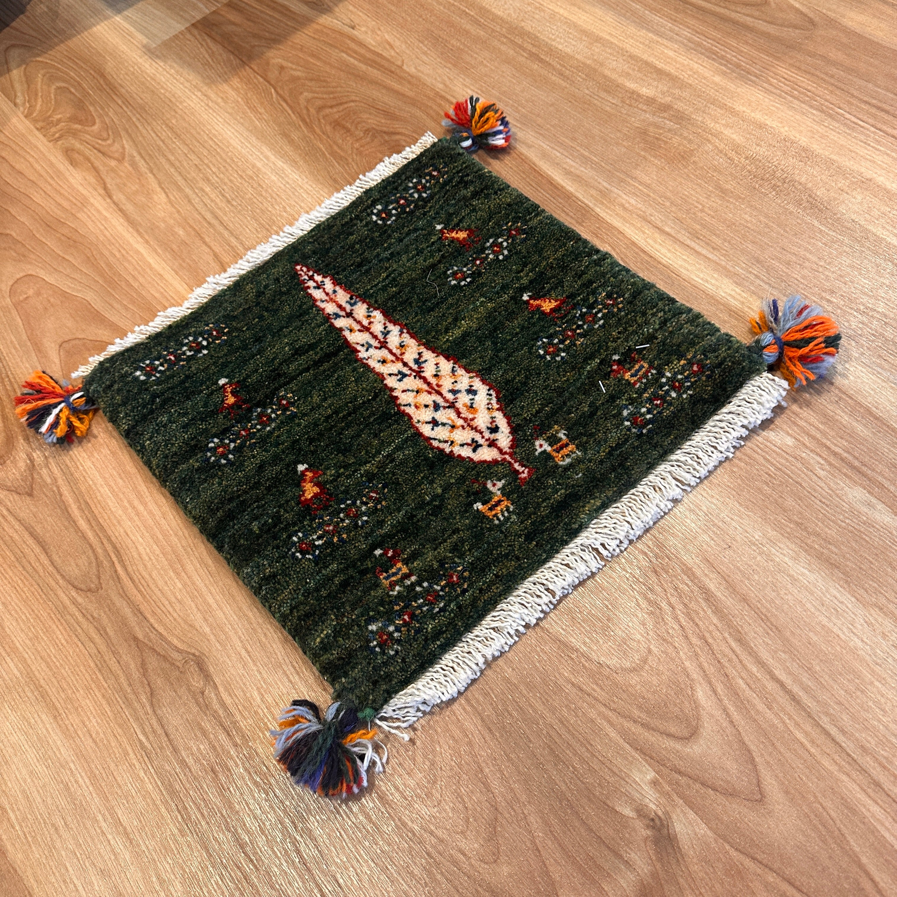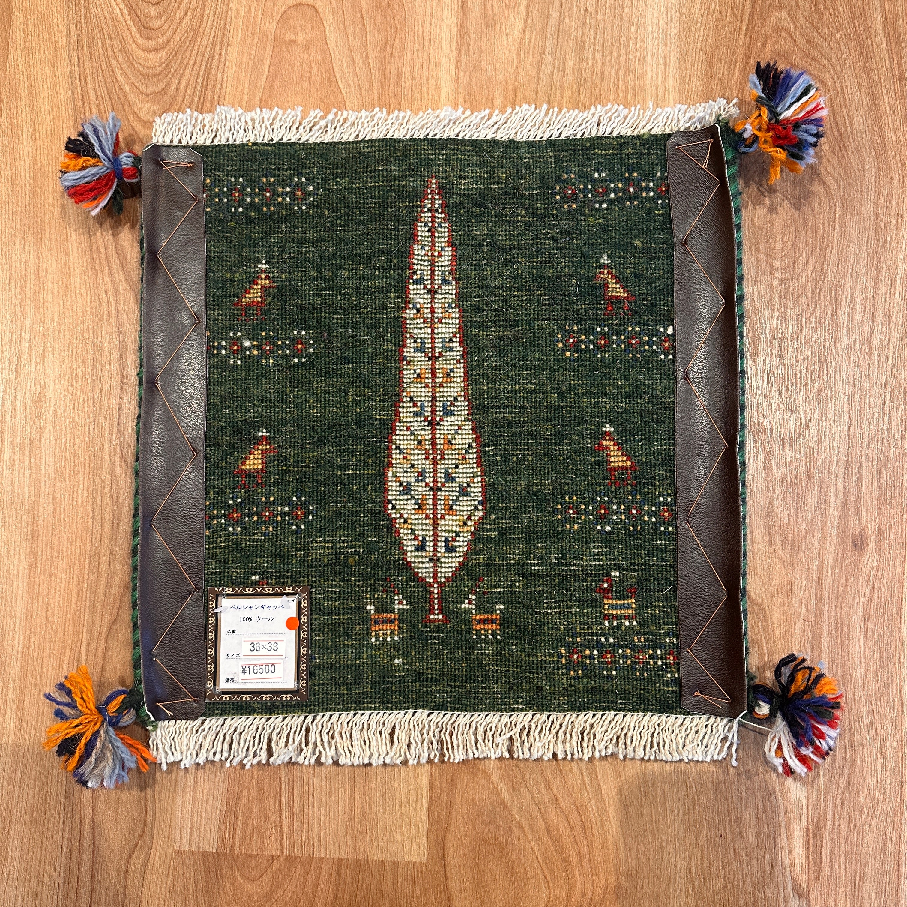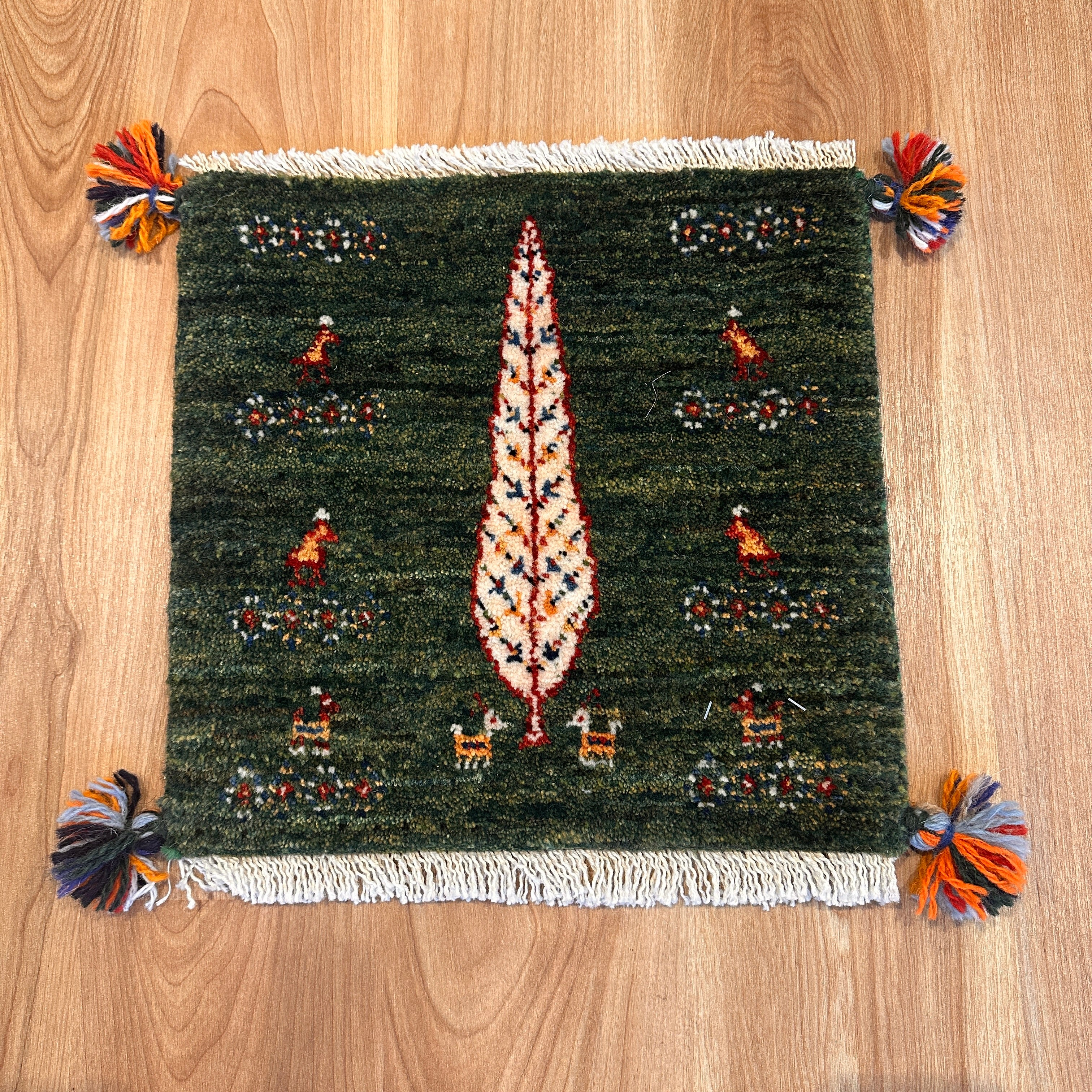 【決算SALE9/13-9/30】ギャッベ 座布団サイズ 36×38cm 手織り生命の樹 (GC-5628)