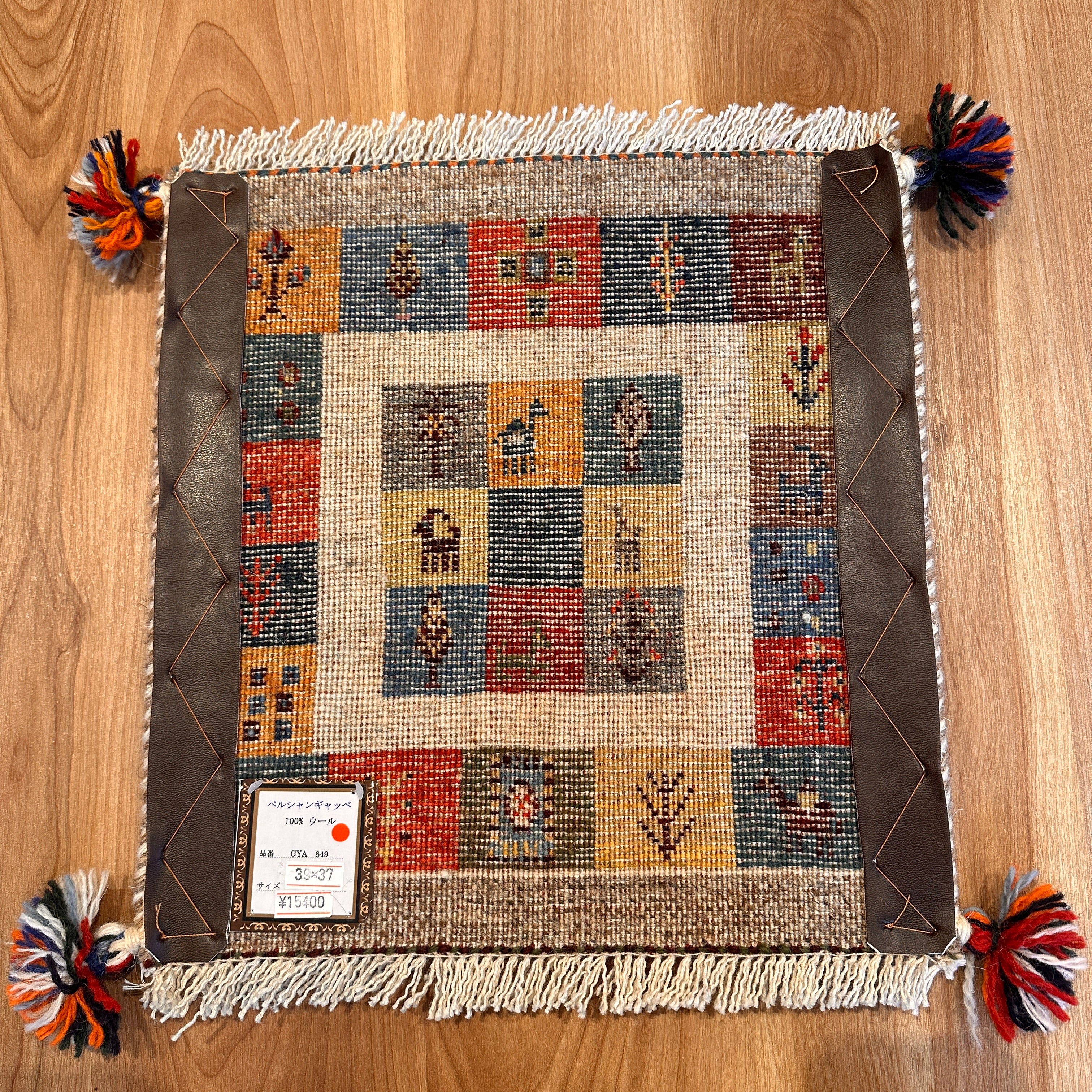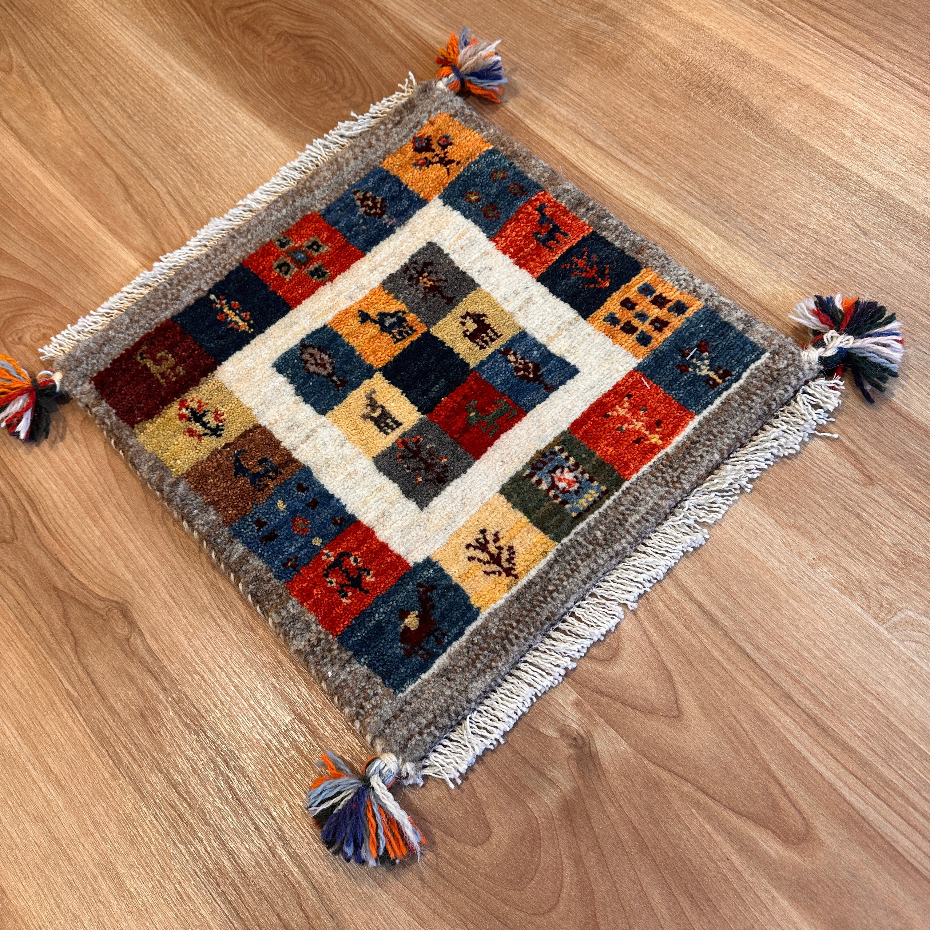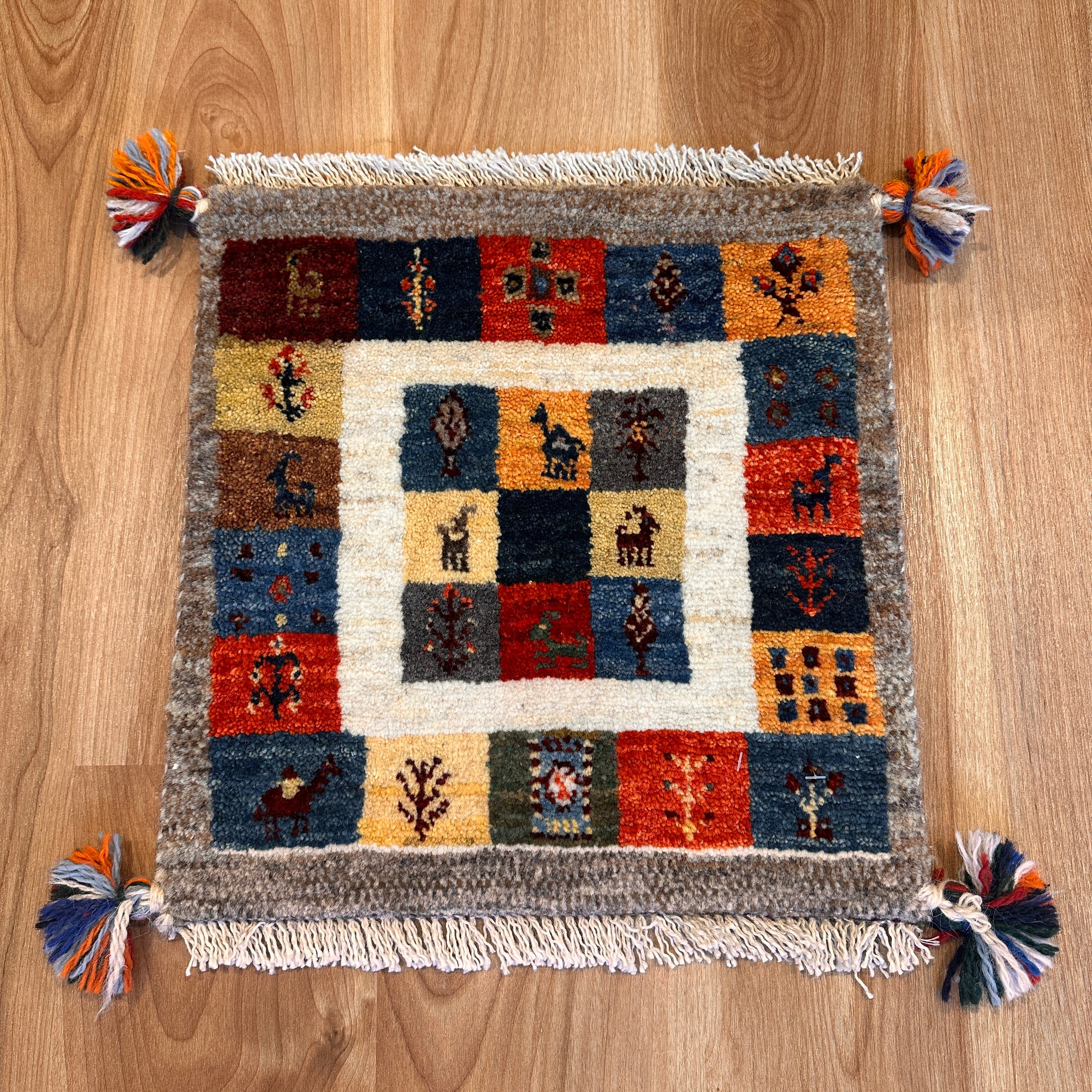 【決算SALE9/13-9/30】ギャッベ 座布団サイズ 39×37cm 手織り生命の樹 鹿 花 (GC-5625)