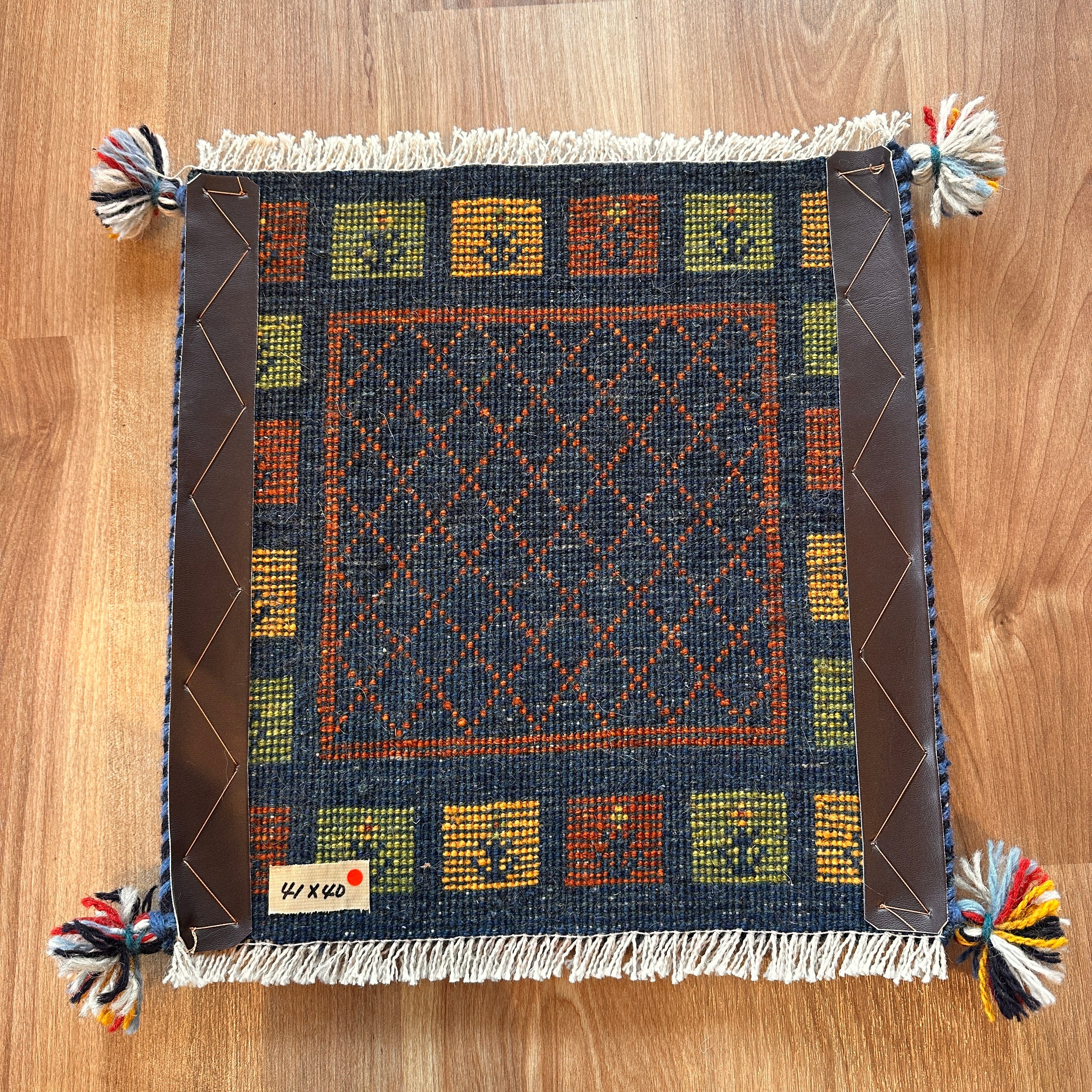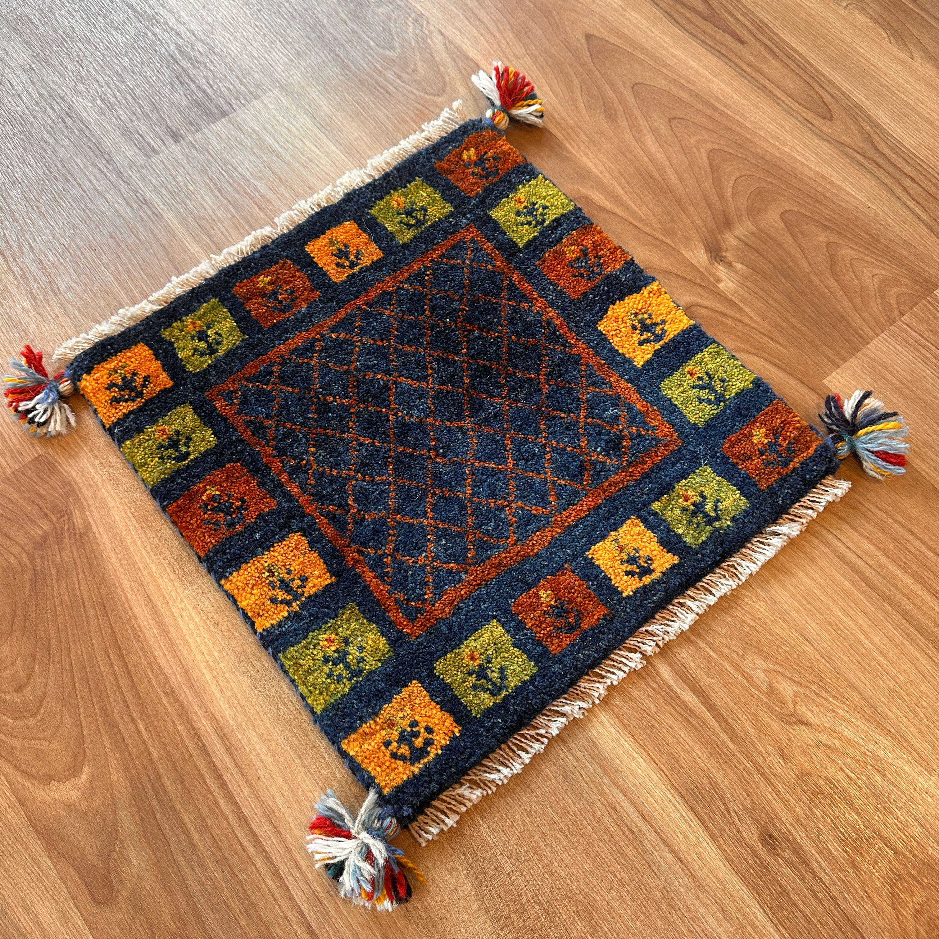 【決算SALE9/13-9/30】ギャッベ 座布団サイズ 41×40cm 手織り生命の樹 鹿 (GC-5640)