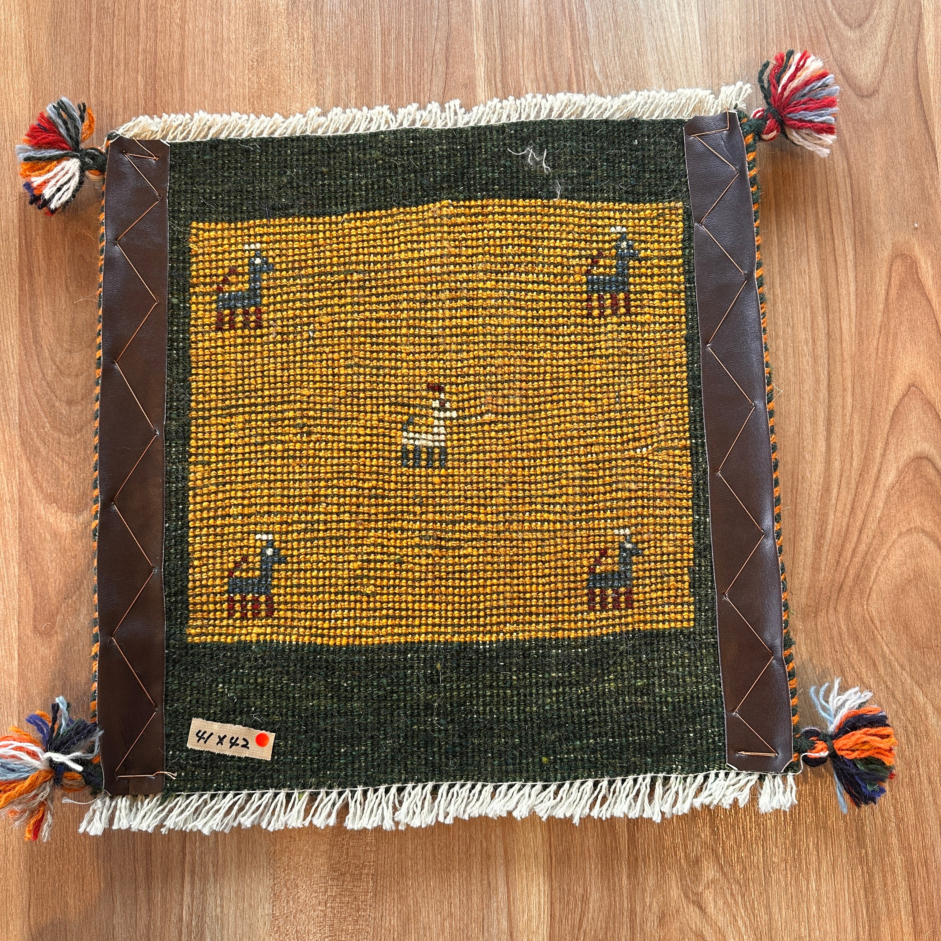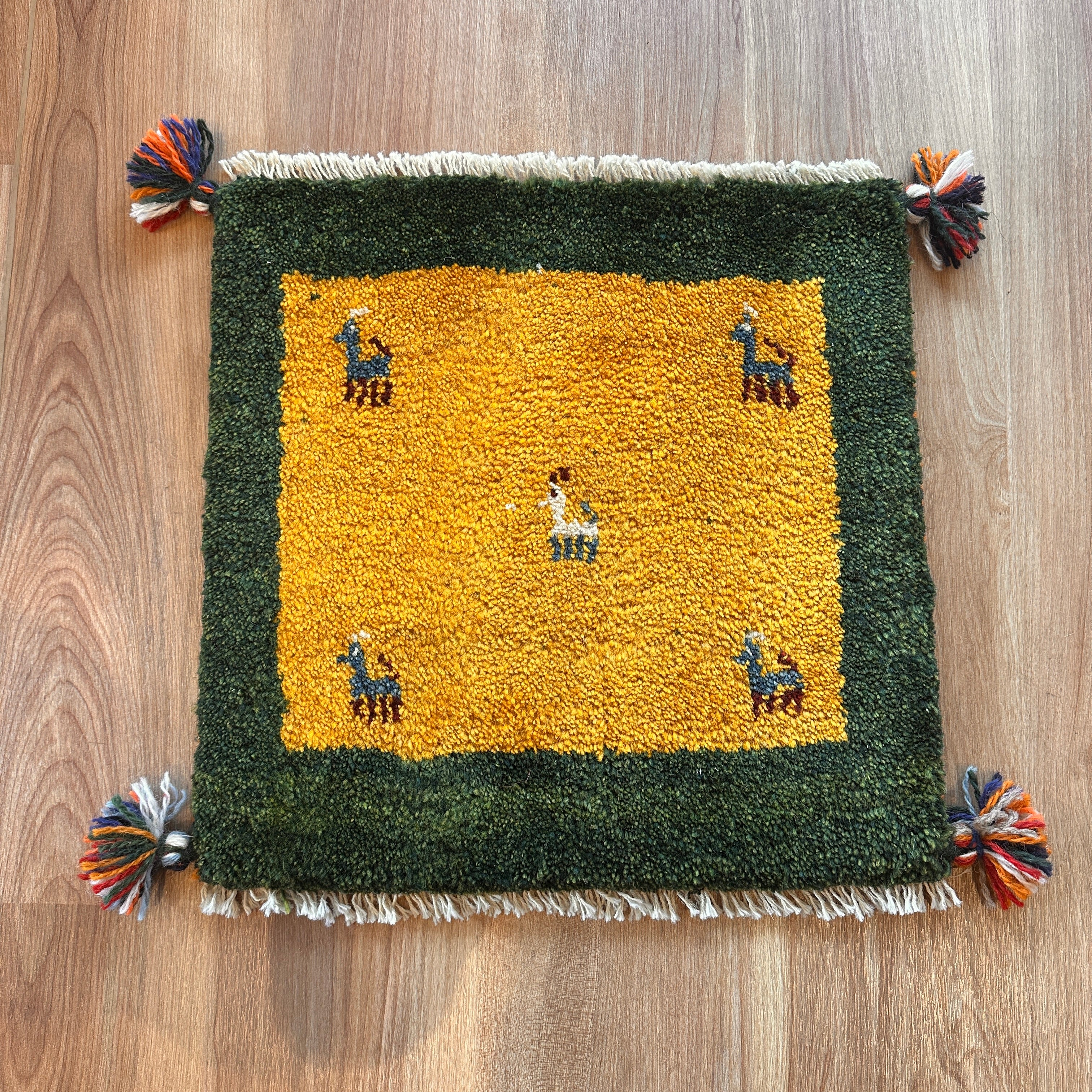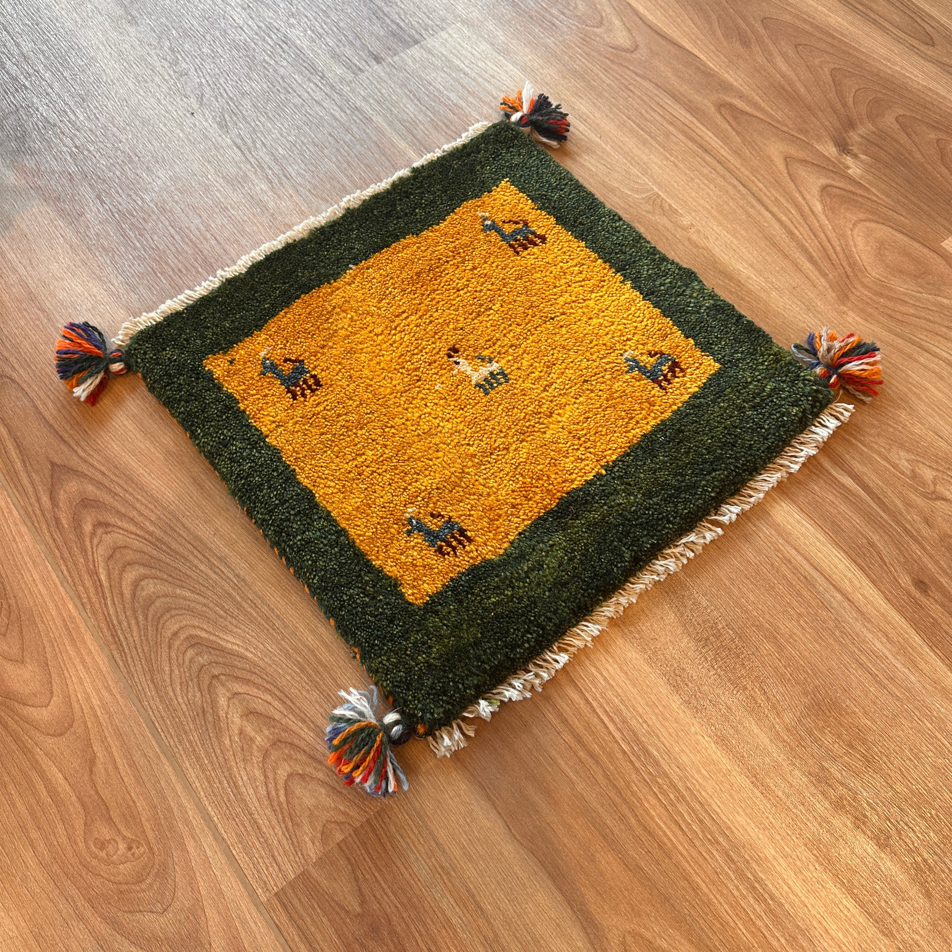 【決算SALE9/13-9/30】ギャッベ 座布団サイズ 41×42cm 手織り生命の樹 鹿 (GC-5641)