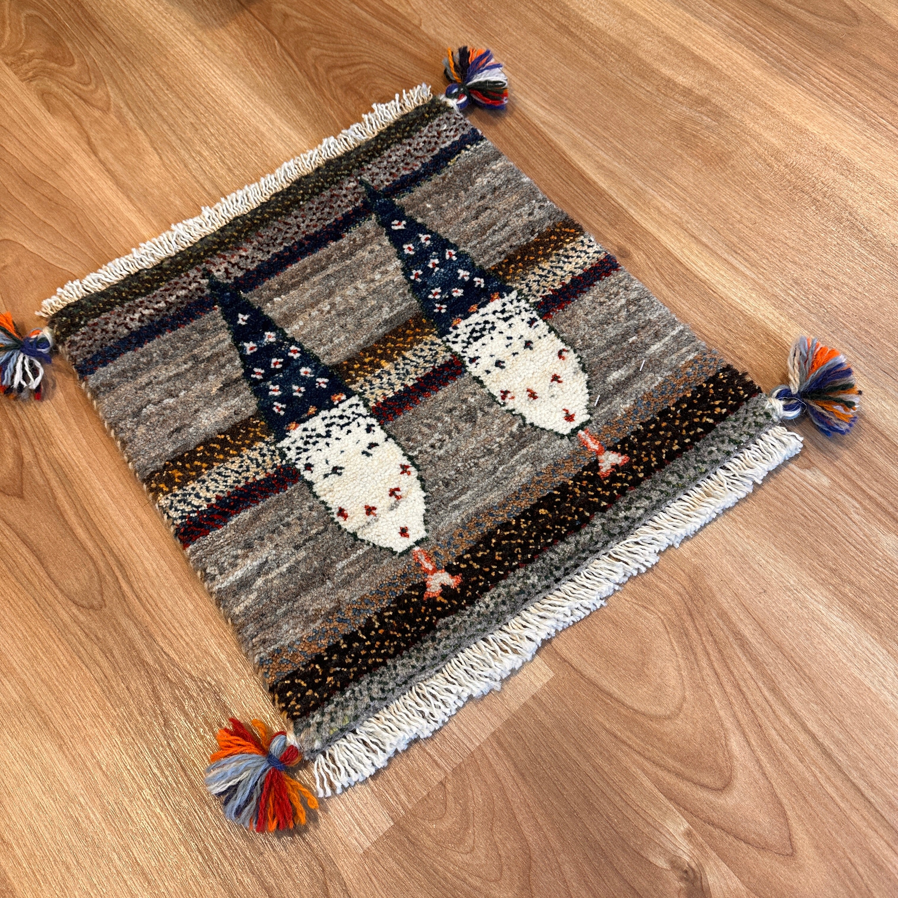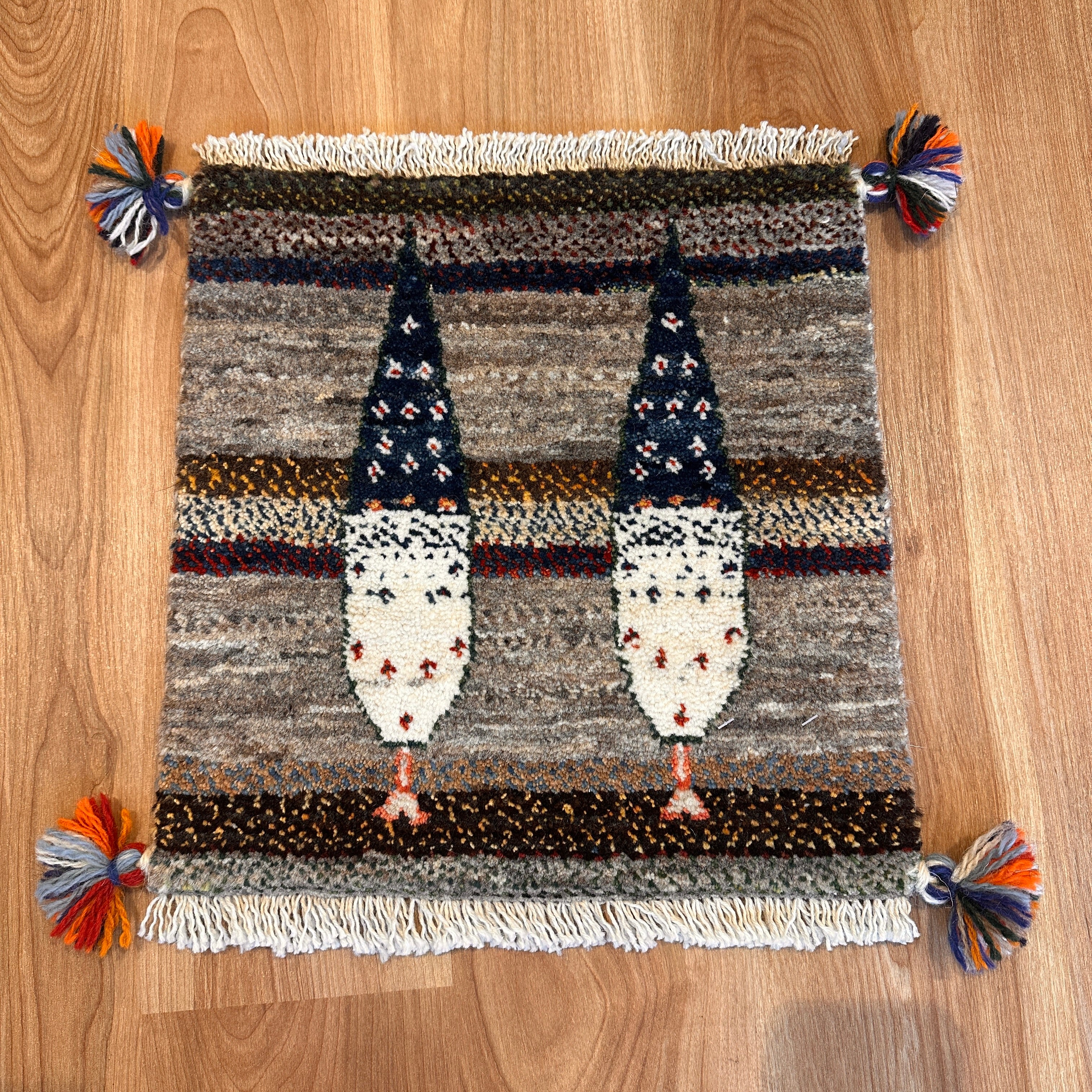 【決算SALE9/13-9/30】ギャッベ 座布団サイズ 39×37cm 手織り生命の樹 (GC-5621)