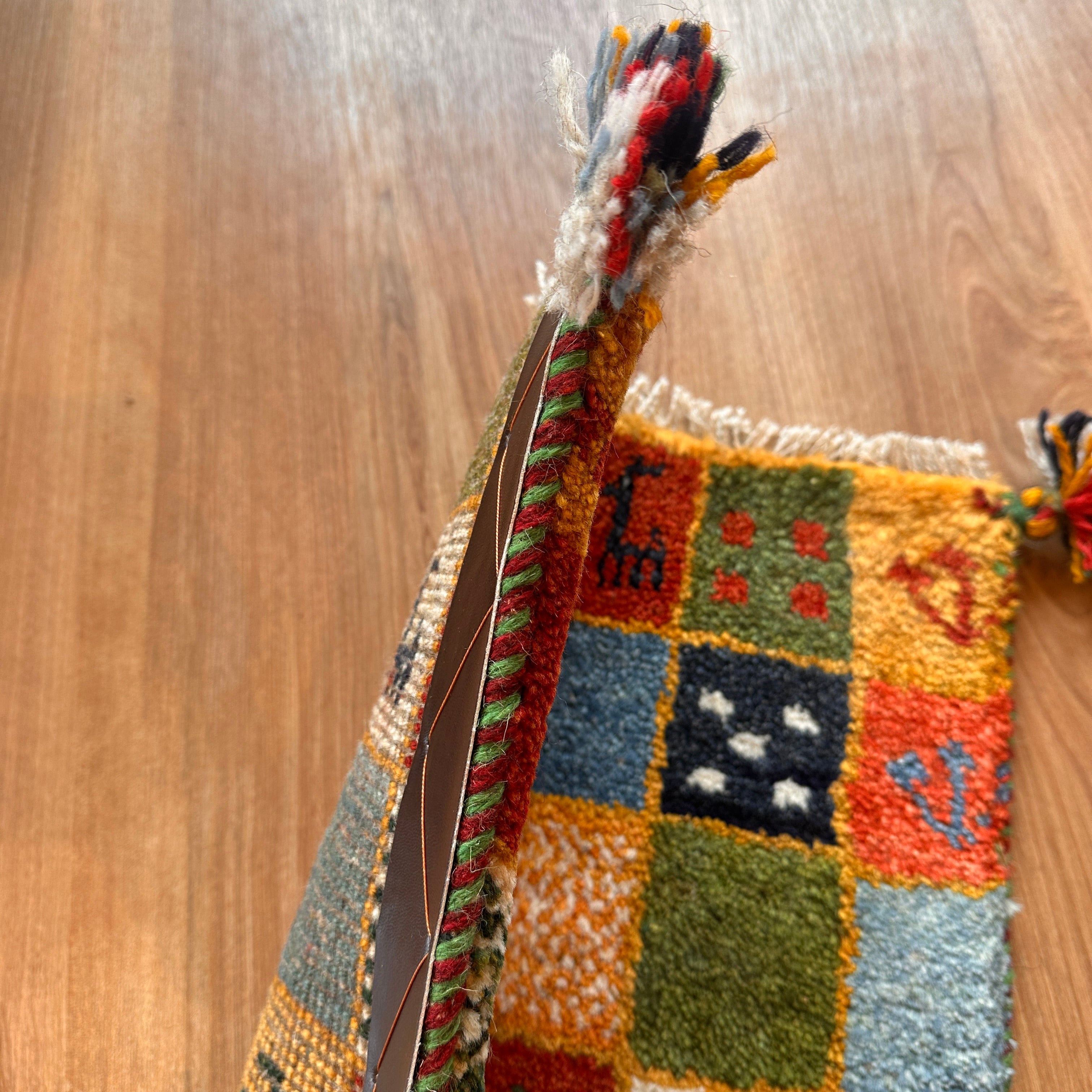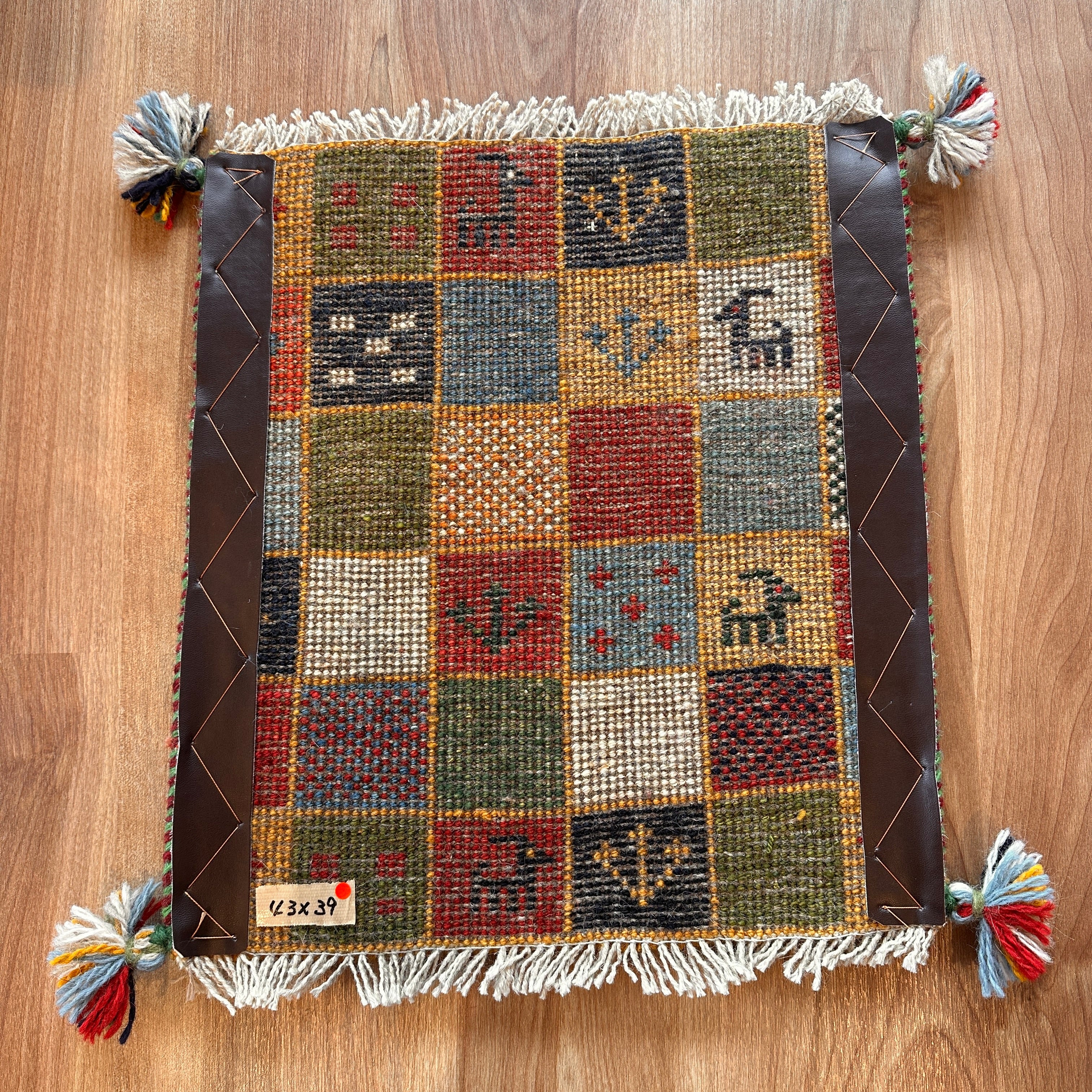 【決算SALE9/13-9/30】ギャッベ 座布団サイズ 43×39cm 手織り生命の樹 鹿 花 (GC-5631)