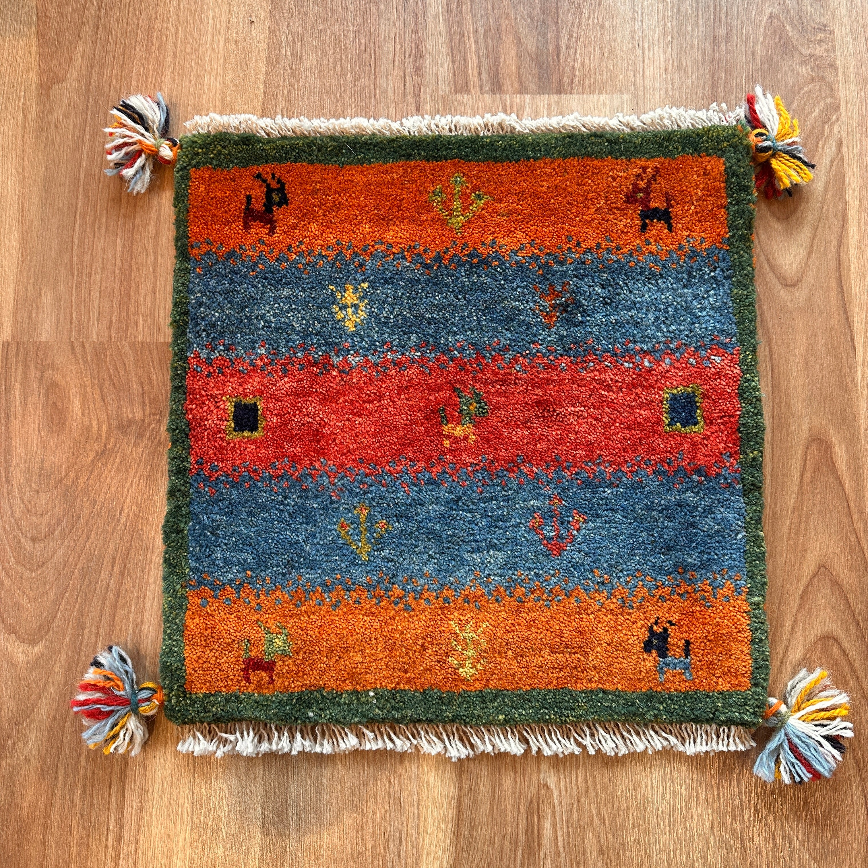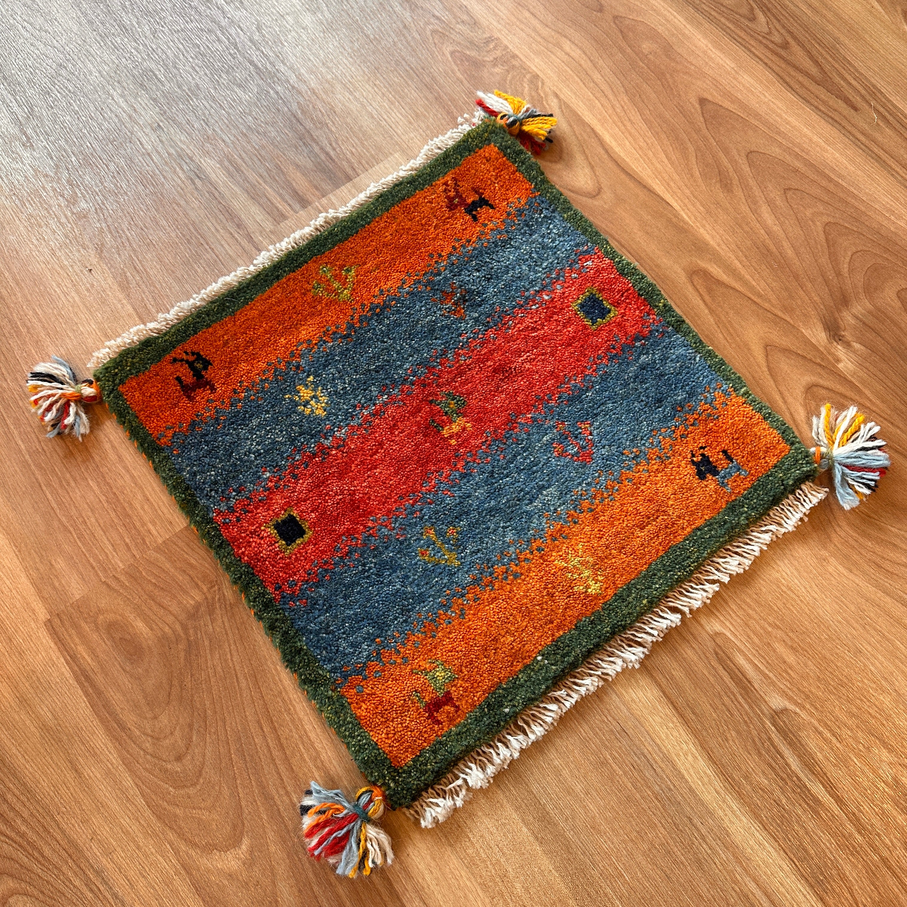 【決算SALE9/13-9/30】ギャッベ 座布団サイズ 40×40cm 手織り生命の樹 鹿 四角(GC-5633)
