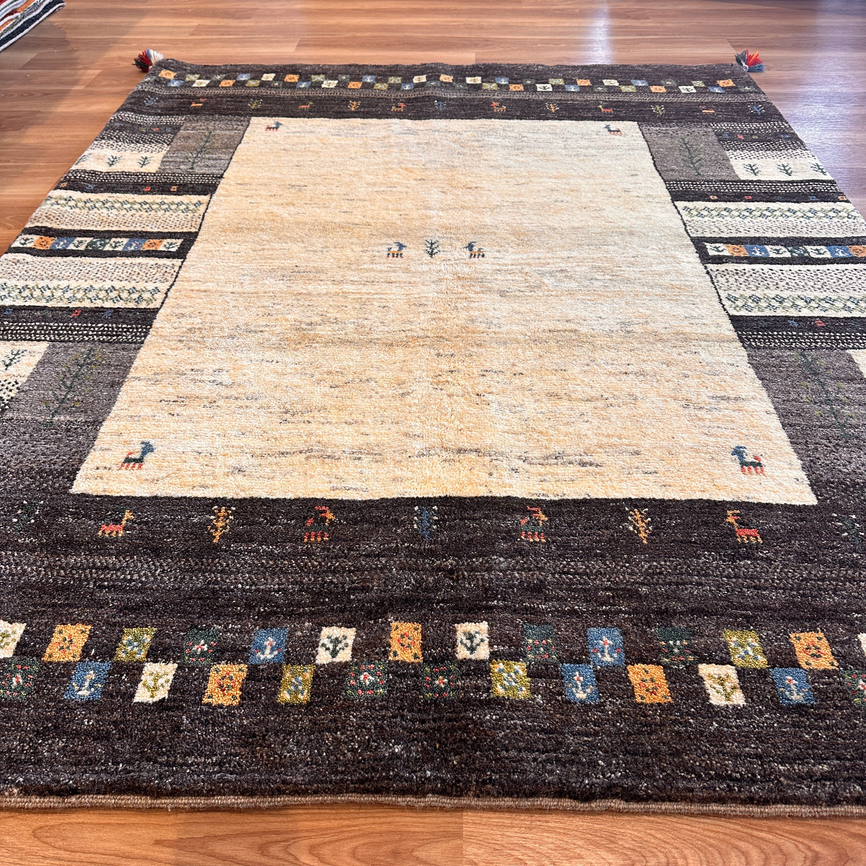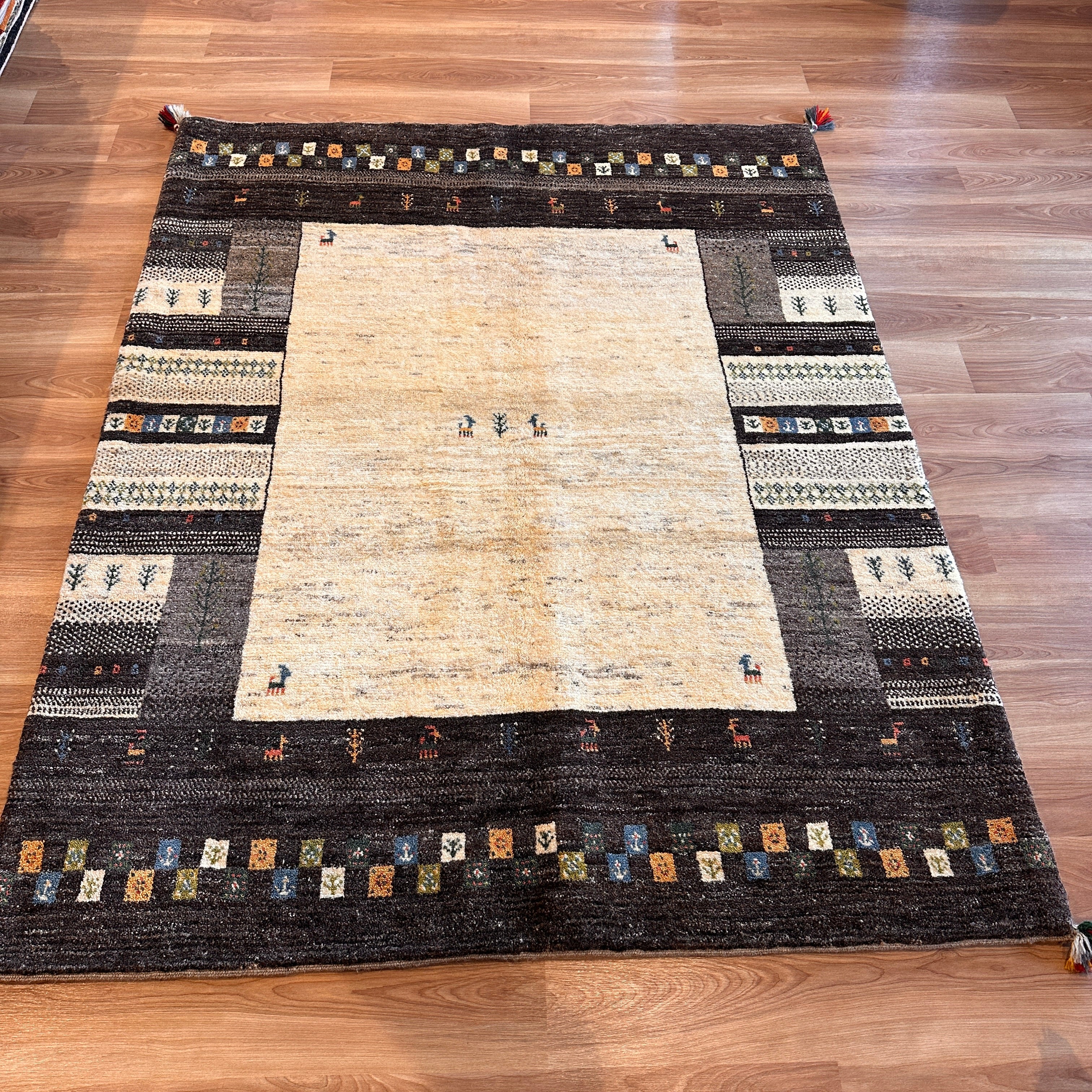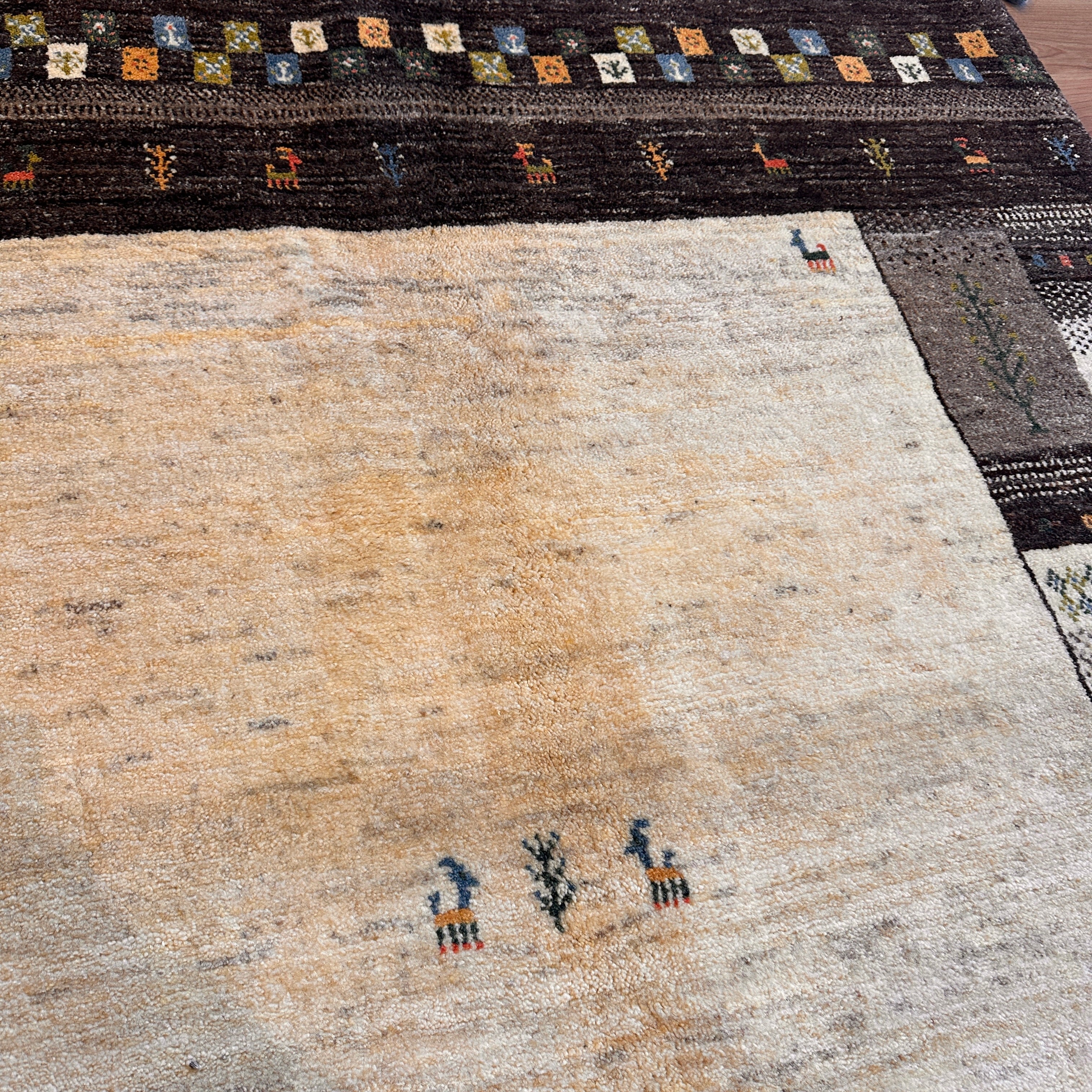 【決算SALE9/20-9/30】ギャッベ リビング サイズ 196×156cm 手織り ブラウン(GL-5144)