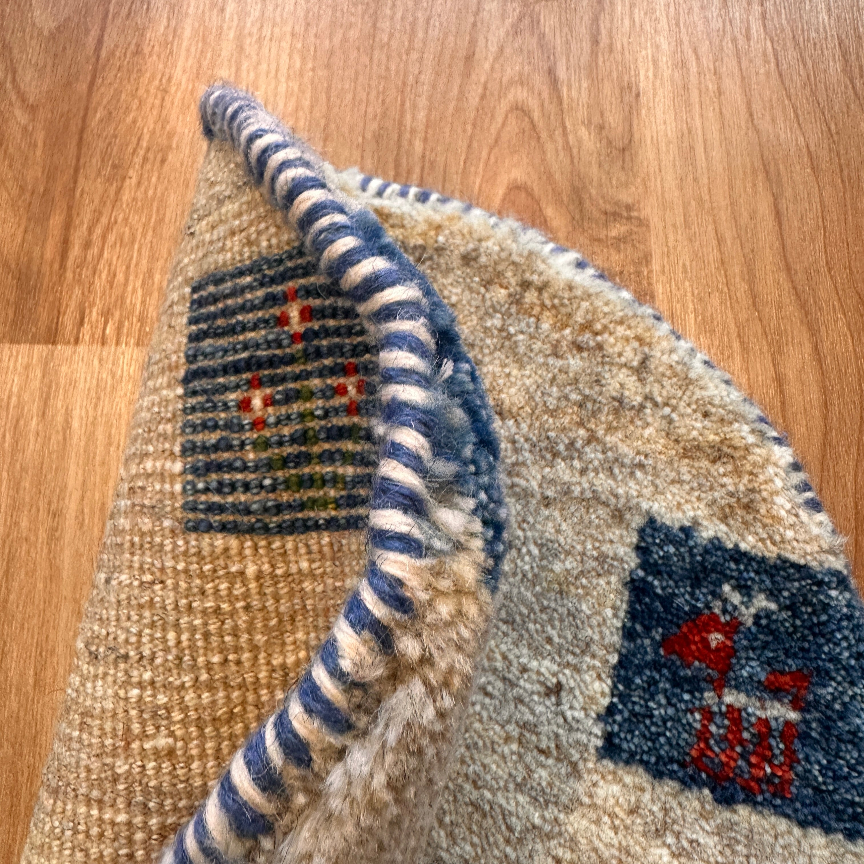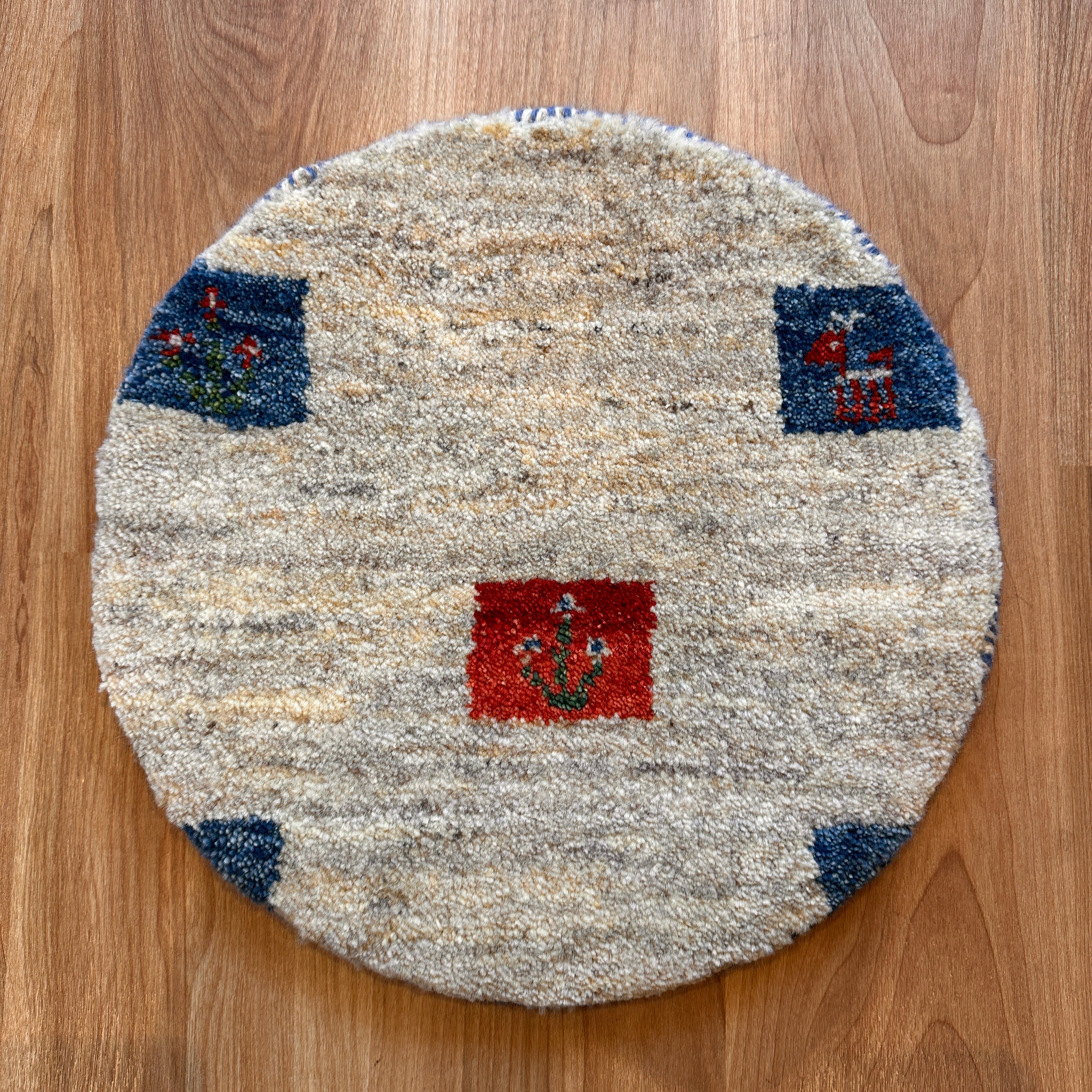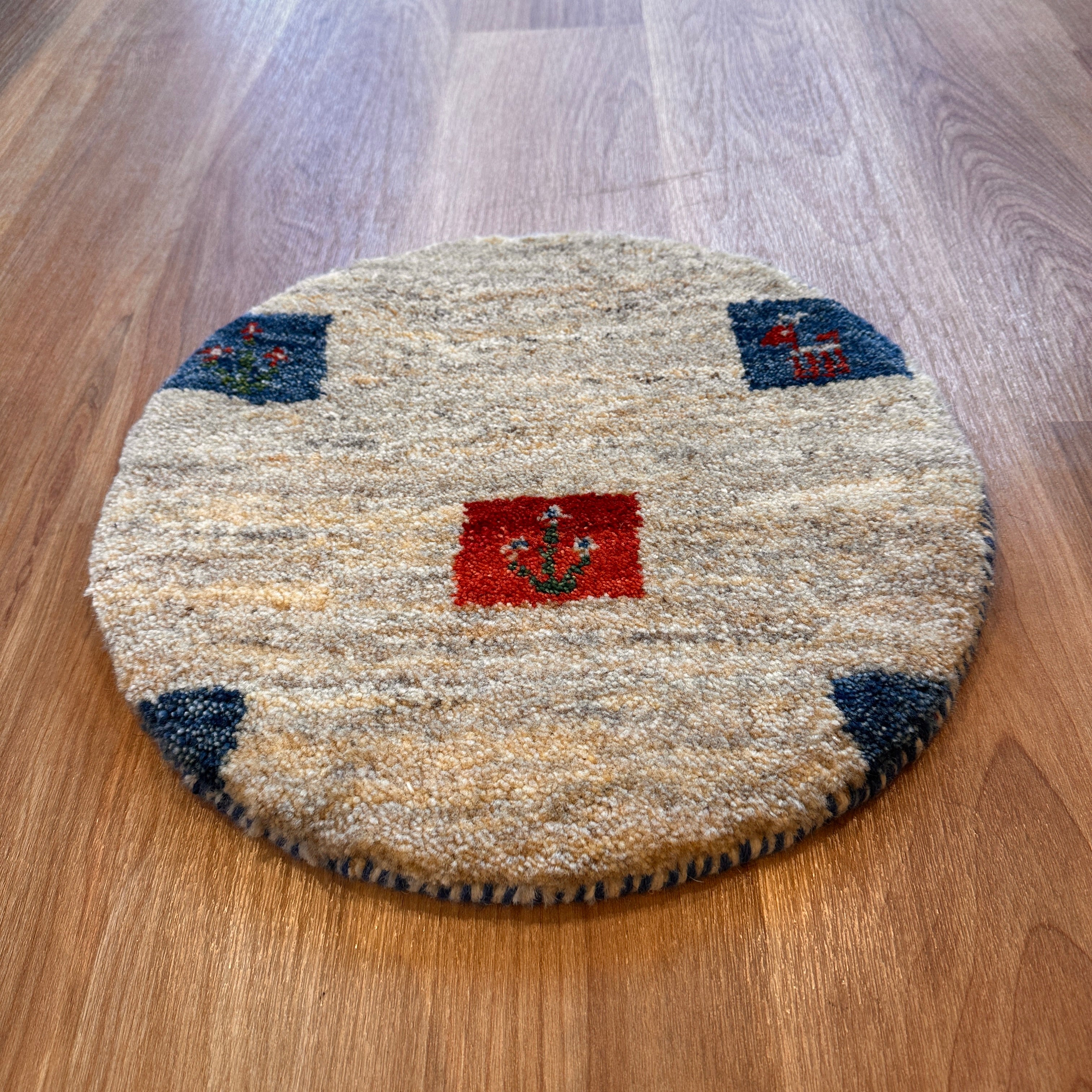 珍しい丸型の座布団サイズギャッベです。