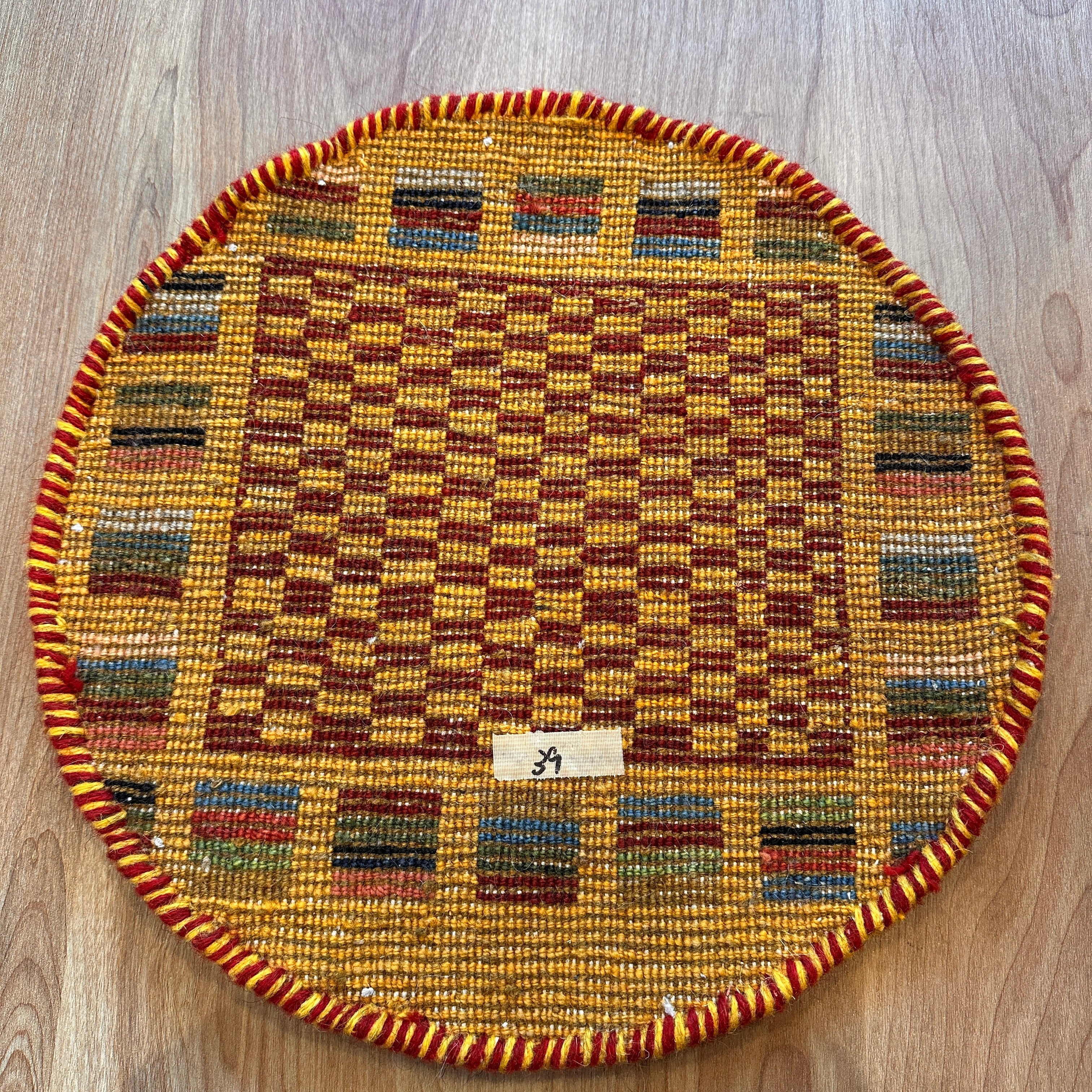 newギャッベ 円形 座布団サイズ39cm 生命の樹 鹿 黄 手織り(GCR-5411)