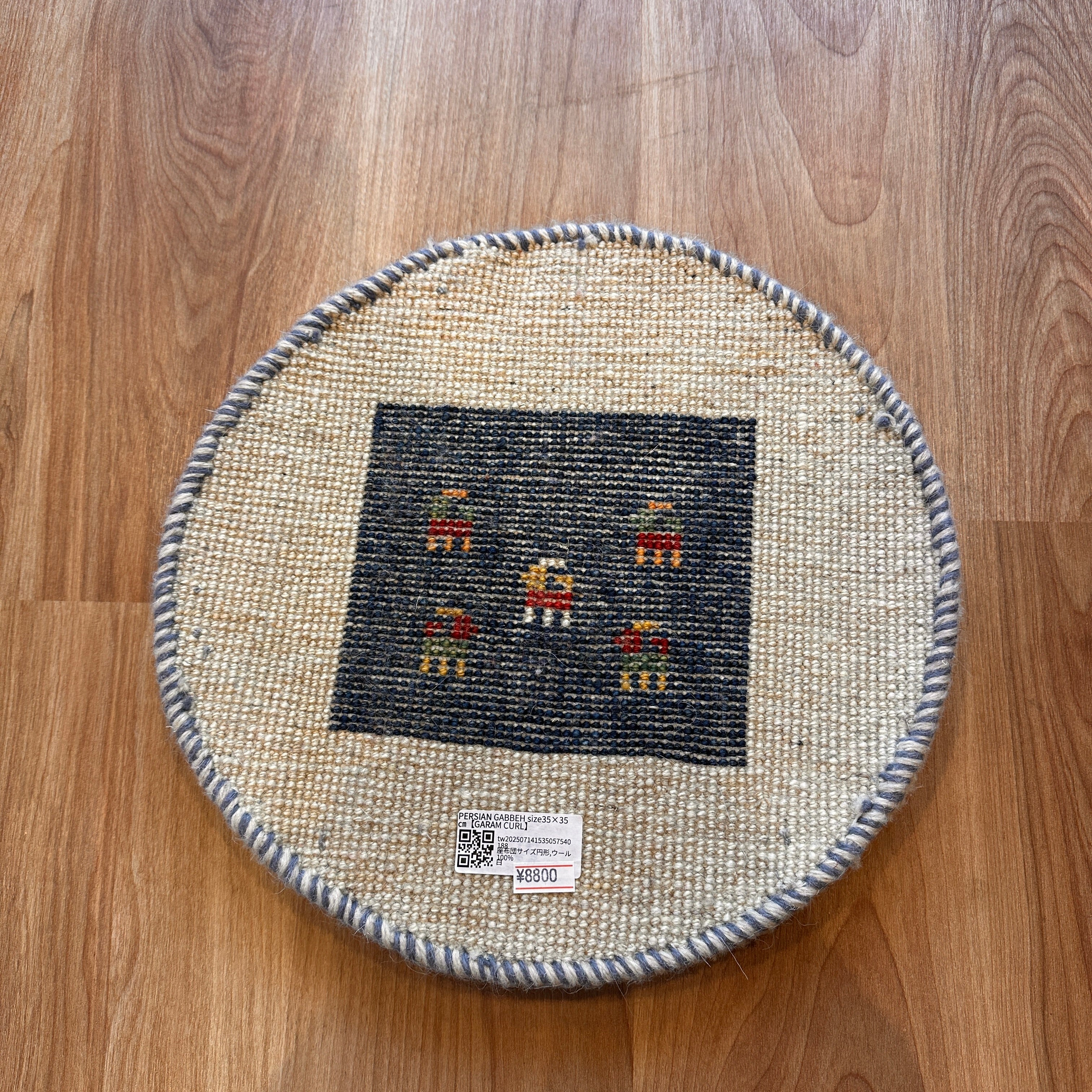 new ギャッベ 円形 座布団サイズ35cm 四角 鹿 手織り(GCR-5397)