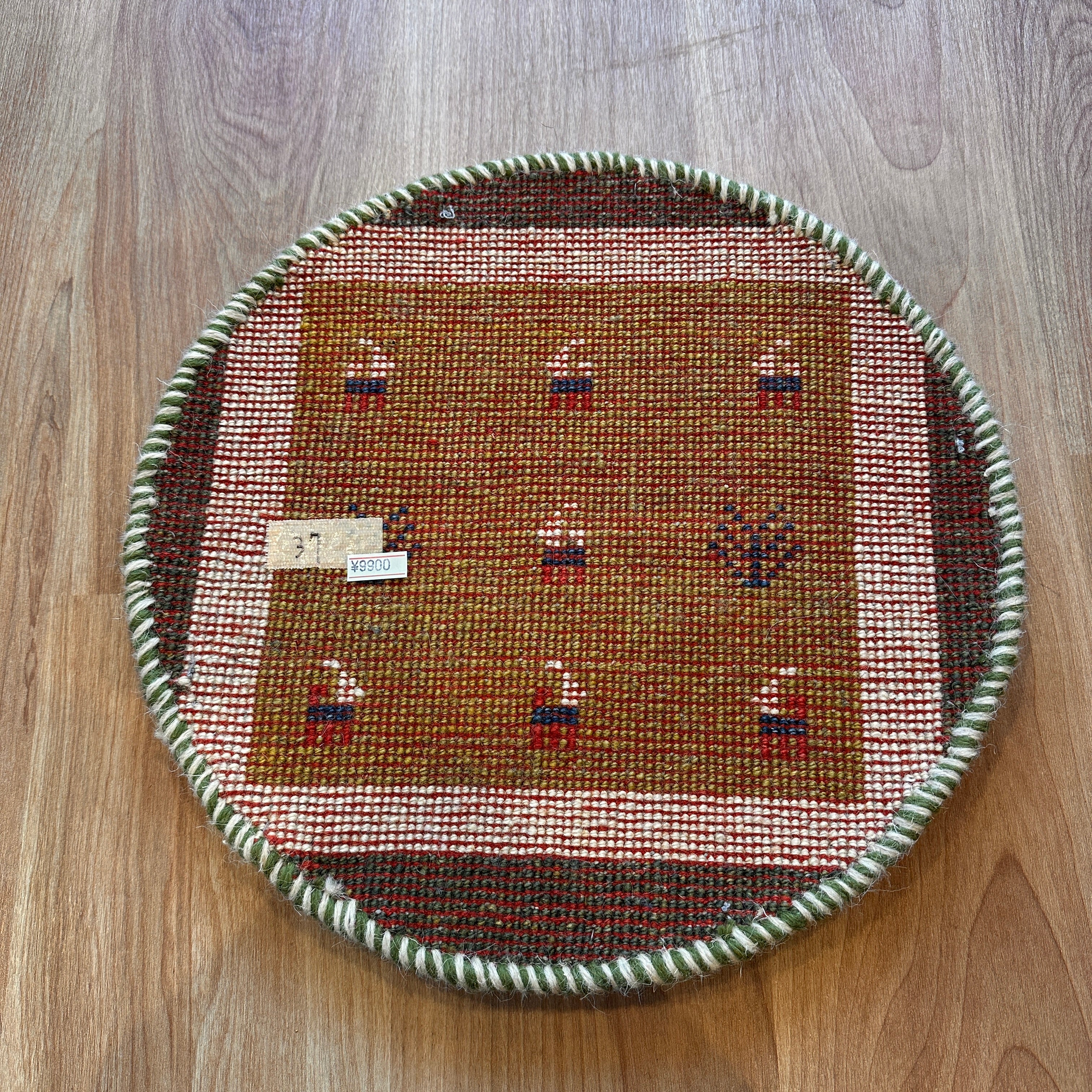 イラン シーラーズ州で織られたギャッベです。遊牧民のアイデンティティーから願いや祈りが生かされ、モチーフをバランスよく配置した円形の座布団サイズです。サイズや厚みなどにバラツキがあるのは手織りの一点もの!ギュッと目が詰まって細かなで手織りのギャッベ