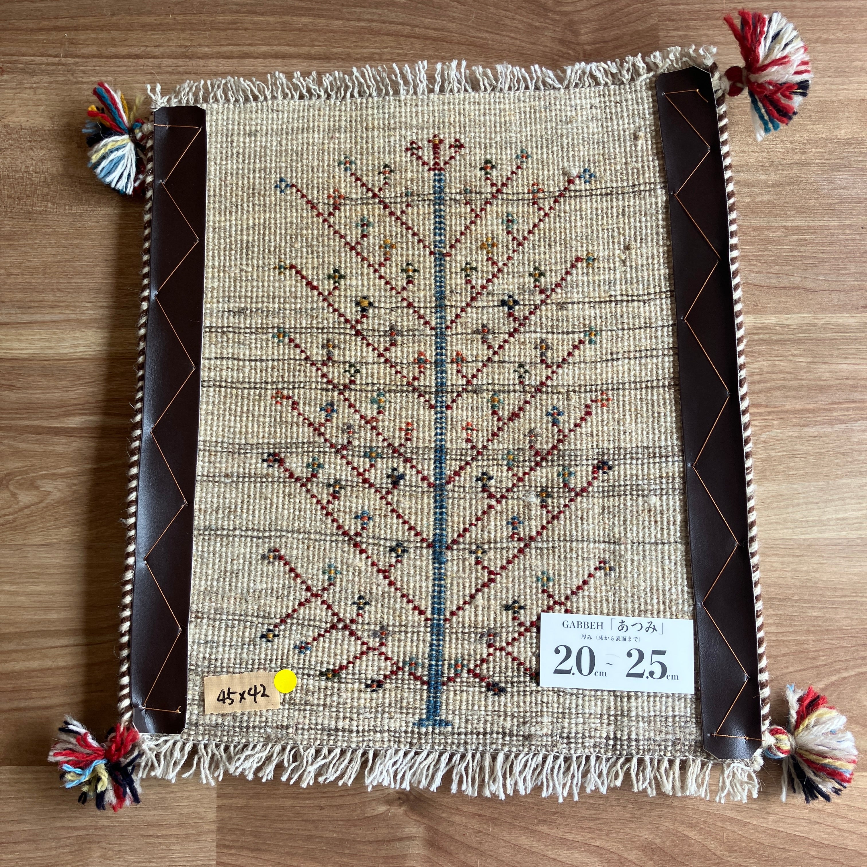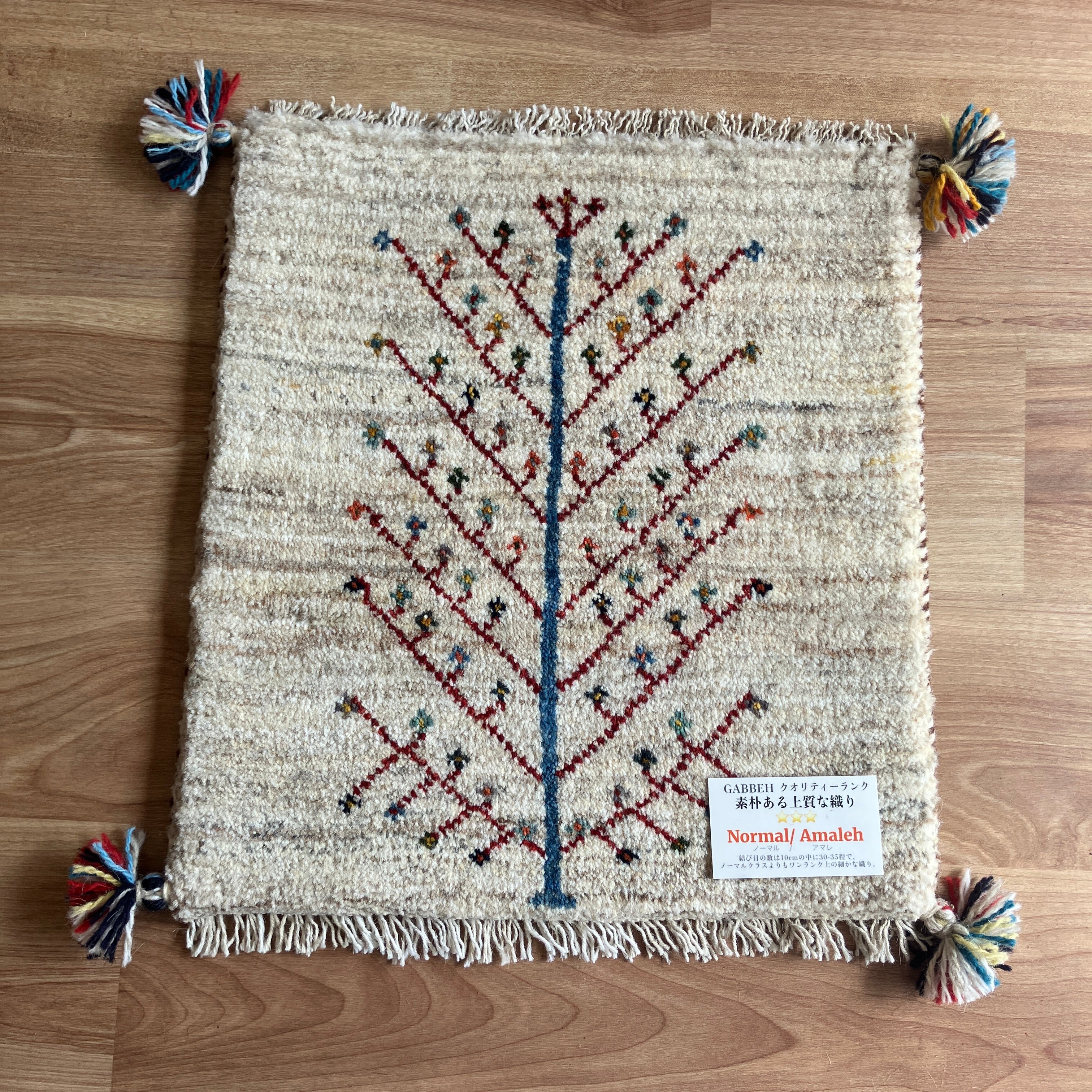 新着ギャッベ 座布団サイズ 45×42cm 手織り生命の樹 鹿 白(GC-5690)